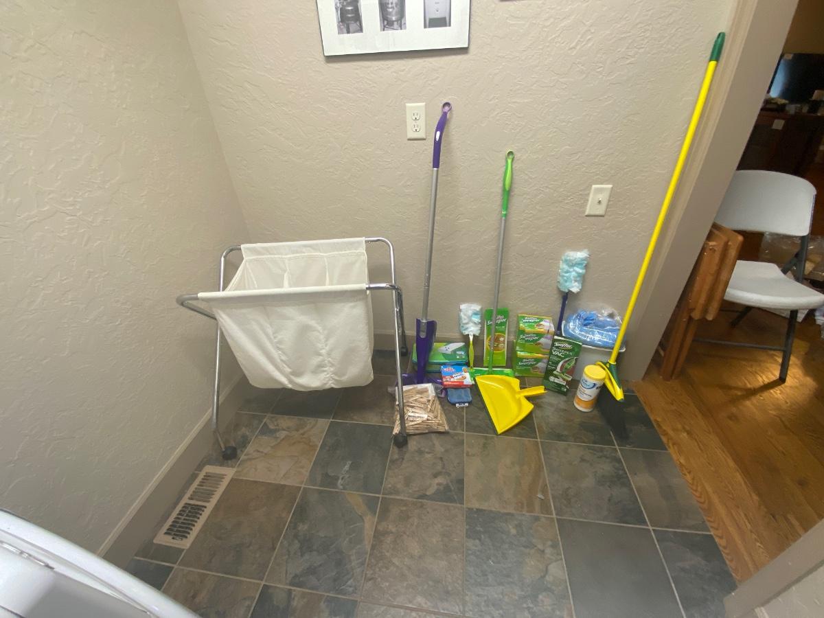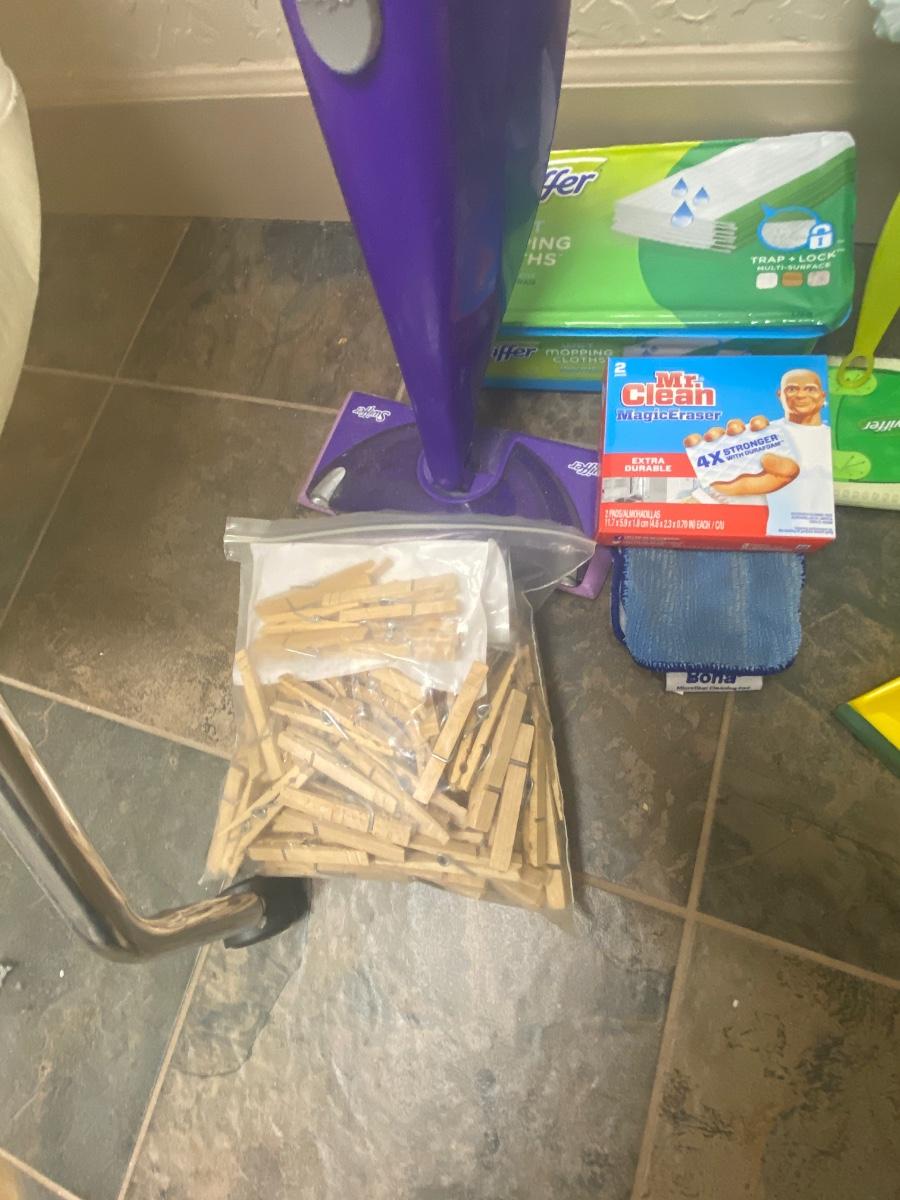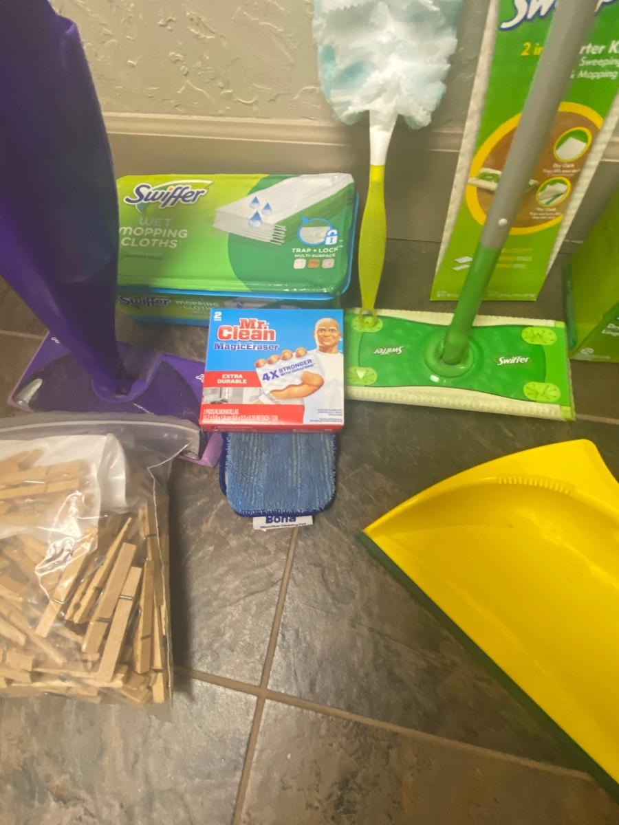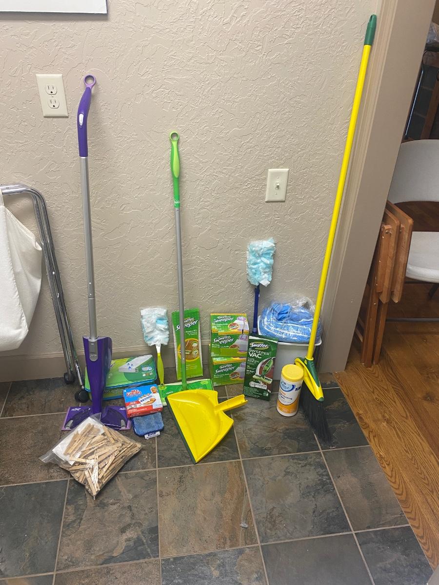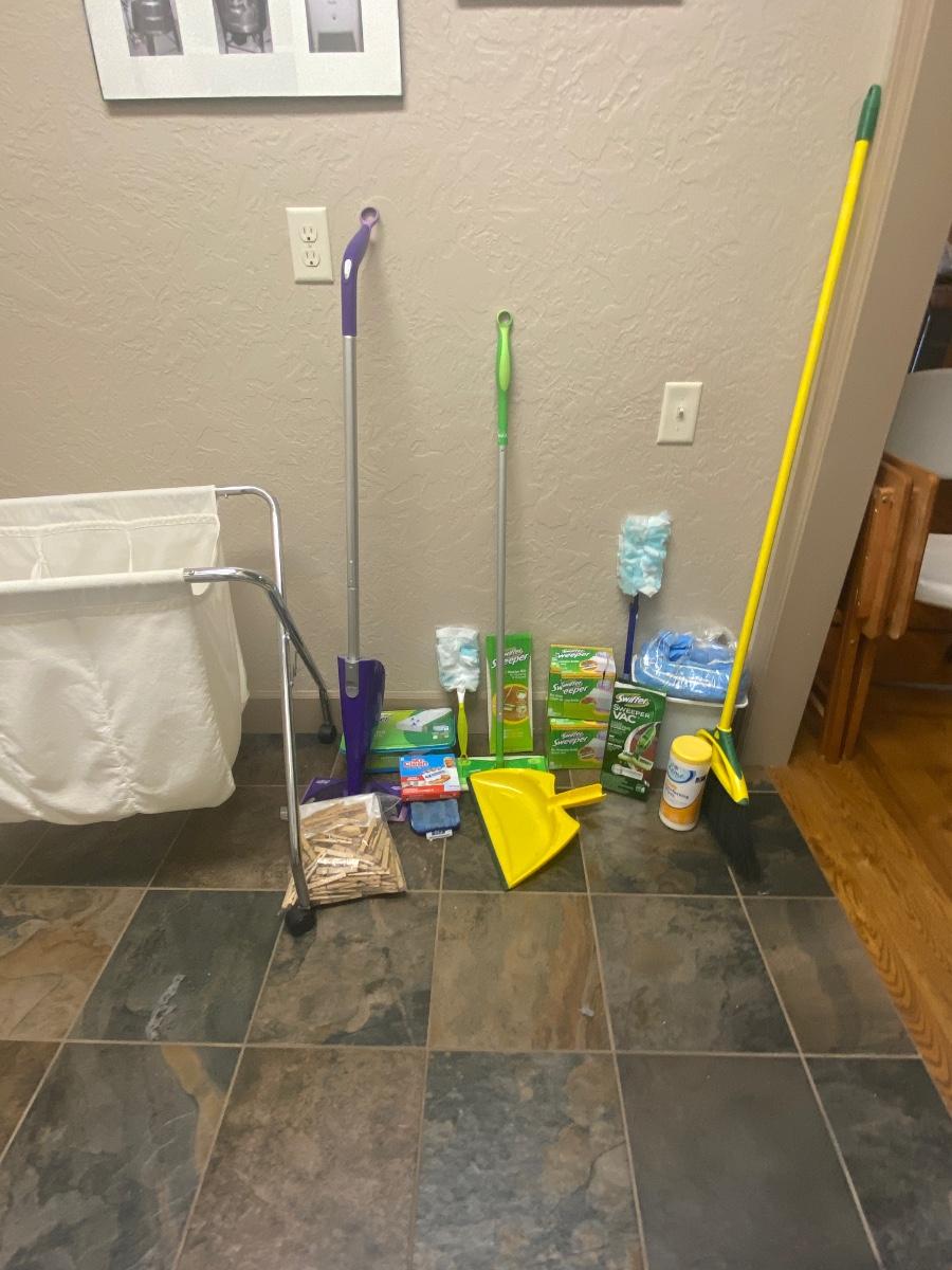 THREE BIN LAUNDRY HAMPER ON WHEELS ALL THE SWIFFERS YOU COULD NEED AND MORE
