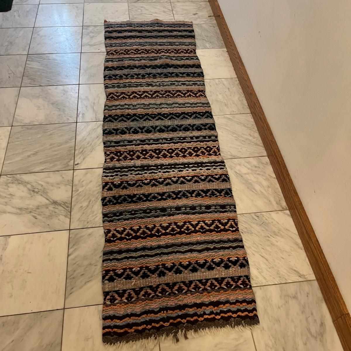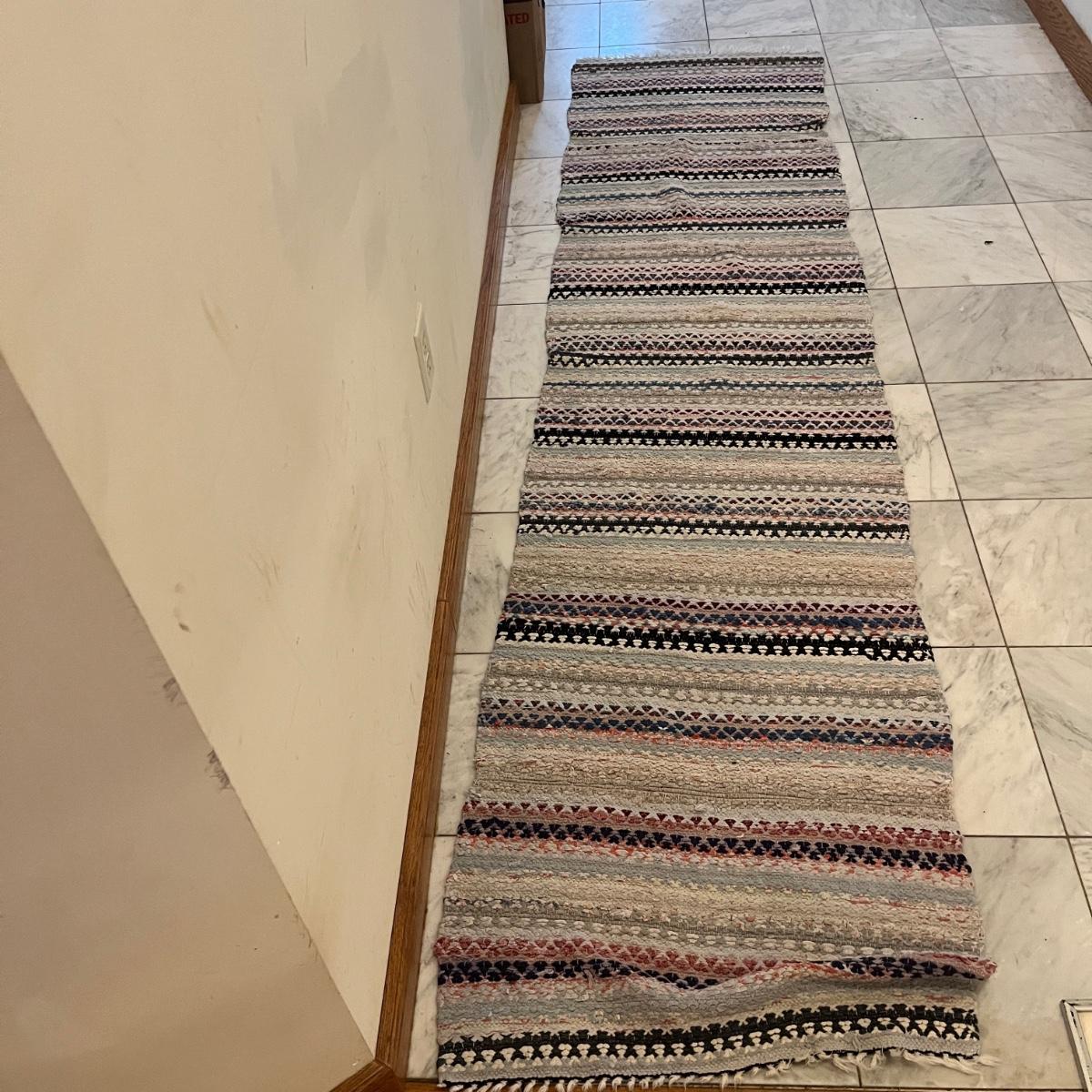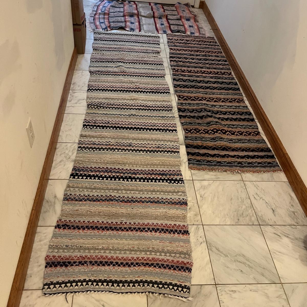 Lot includes one rectangular braided rug and two braided runner rugs. Longest runner rug measures 26” x 108”long.