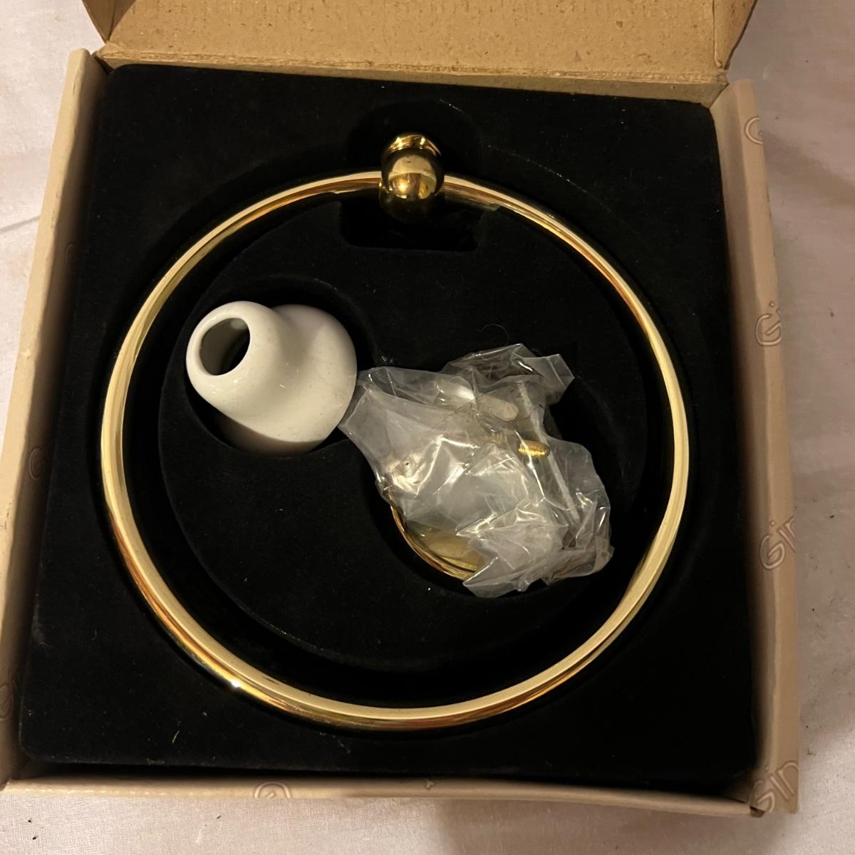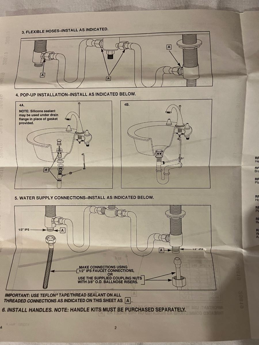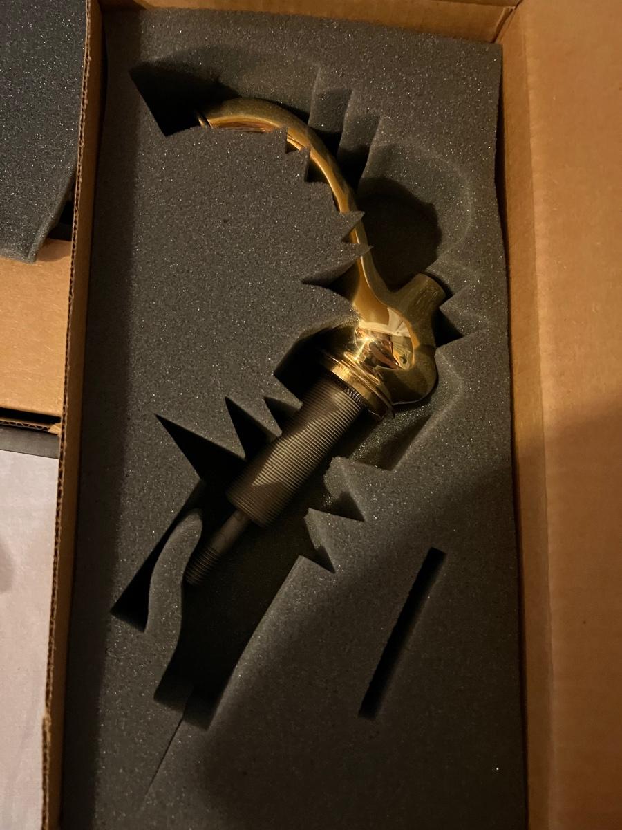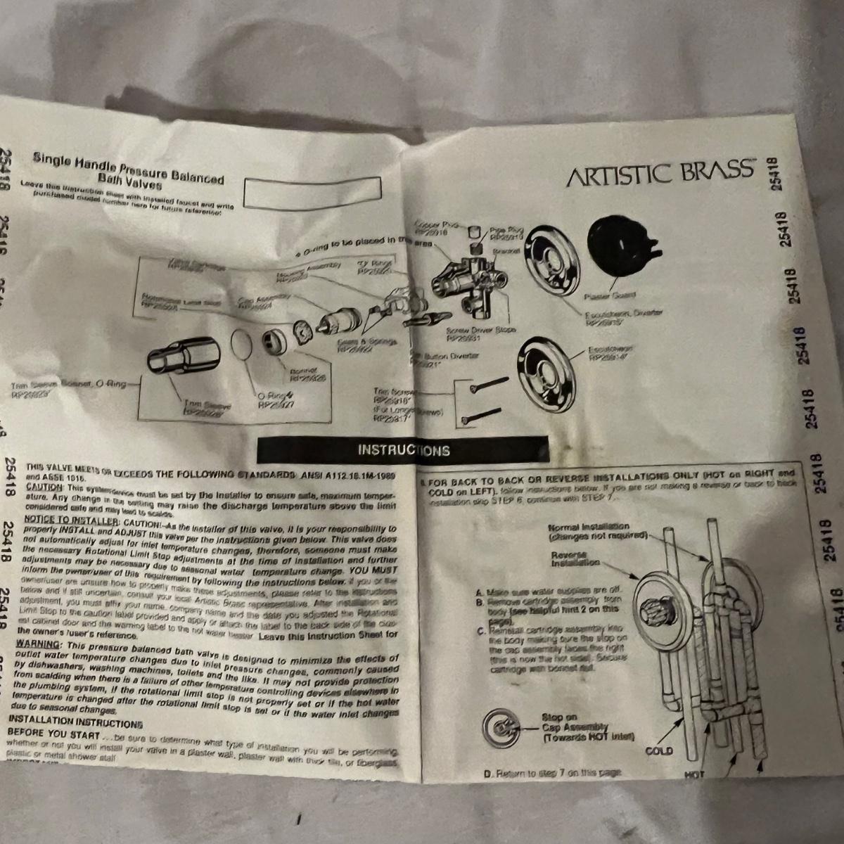 Three new in box Artistic Brass 27-L-PN two handle widespread lavatory with pop-up less handles. Additionally, an assortment of artistic brass pieces in parts for a tall faucet, shower, and towel ring. A Kohler