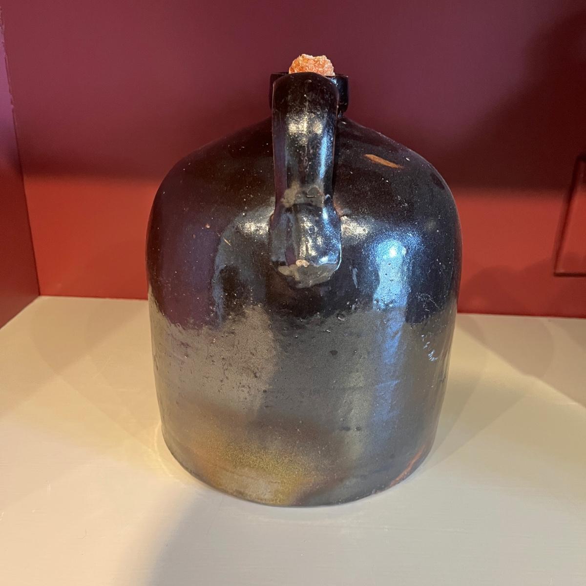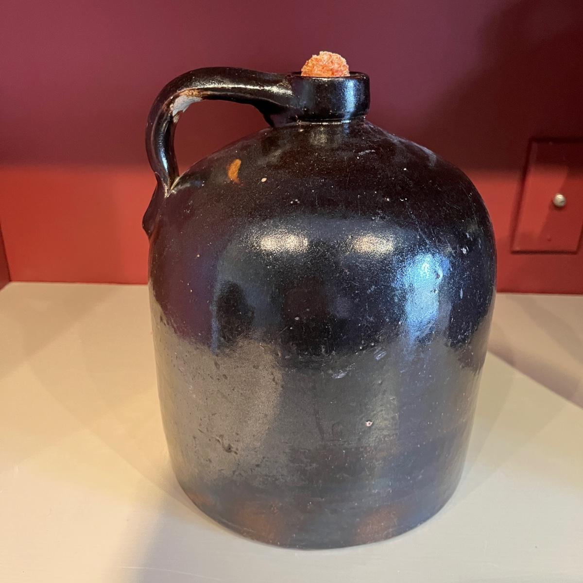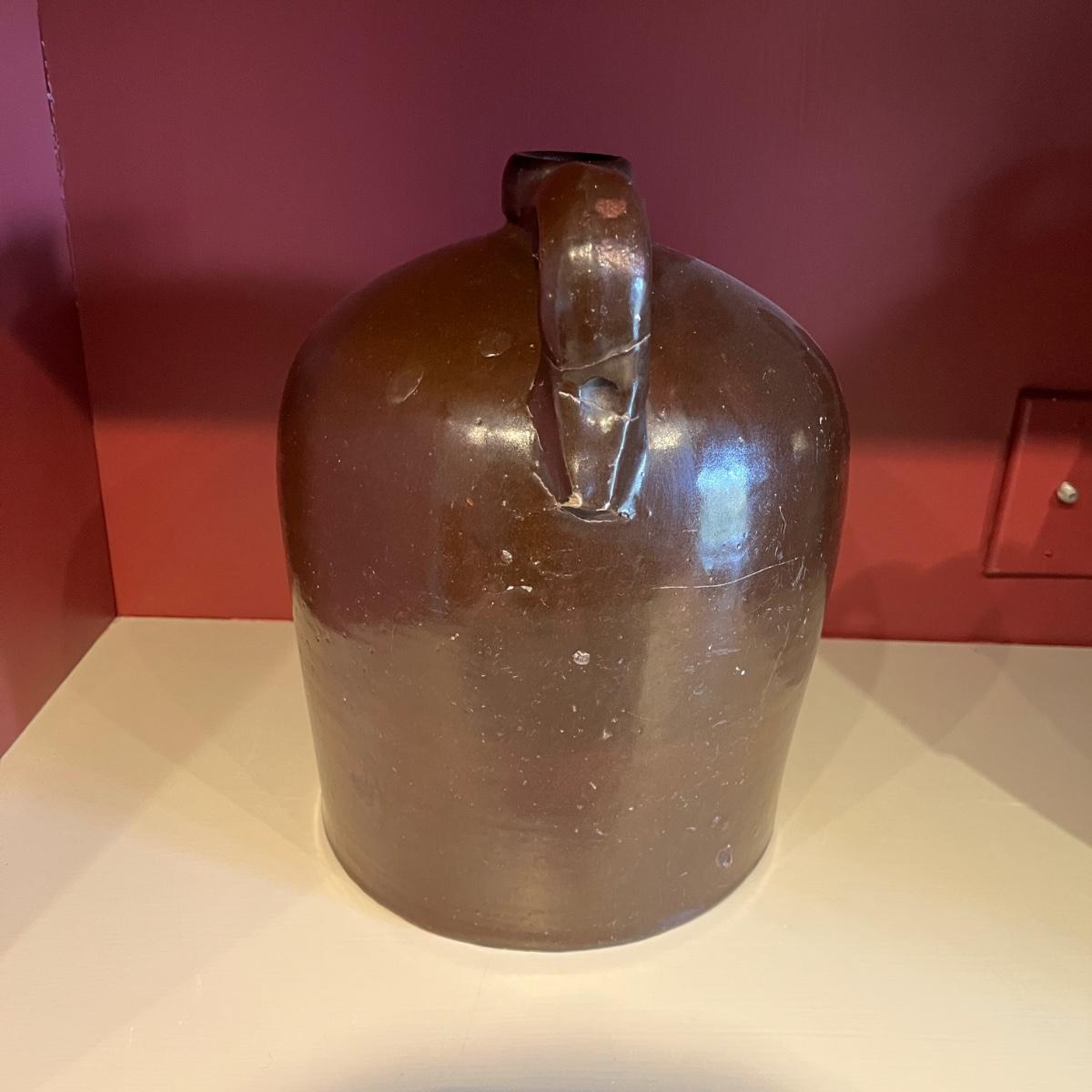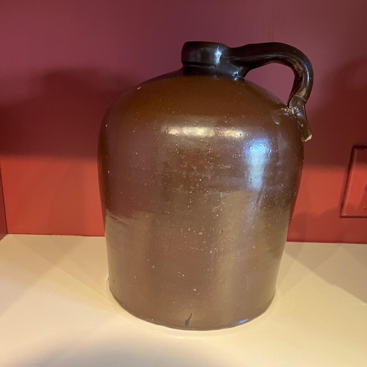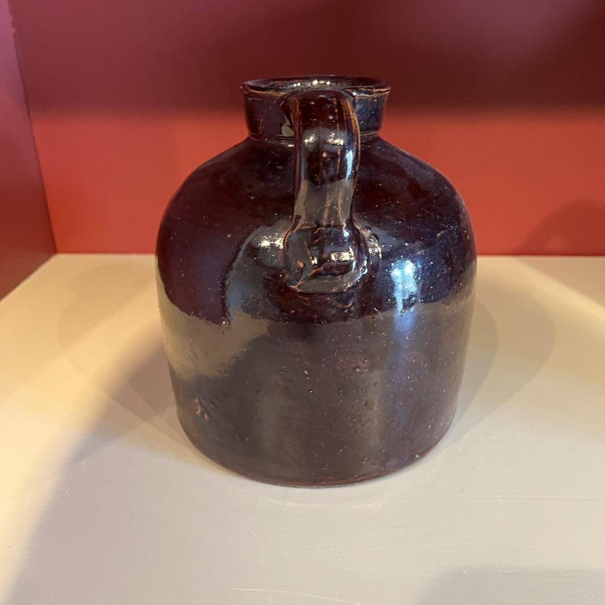 Lot contains three brown pottery jugs in three different sizes. Yes, that is a corncob for a cirk! Largest jug measures 9”D x 11”H and appears to have a crack on the handle, but may also be the glaze, it'shard to decifer, see picture. Jugs are unmarked.