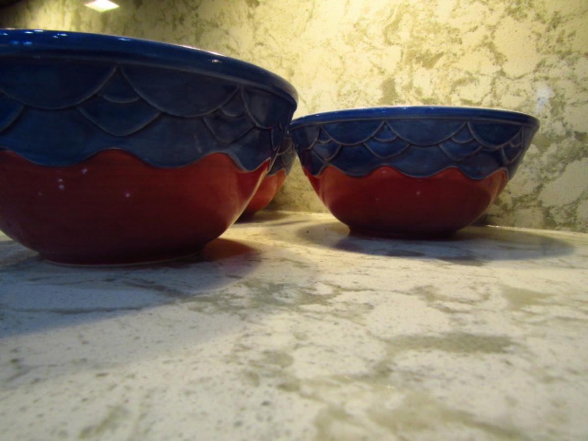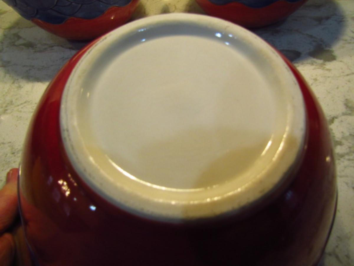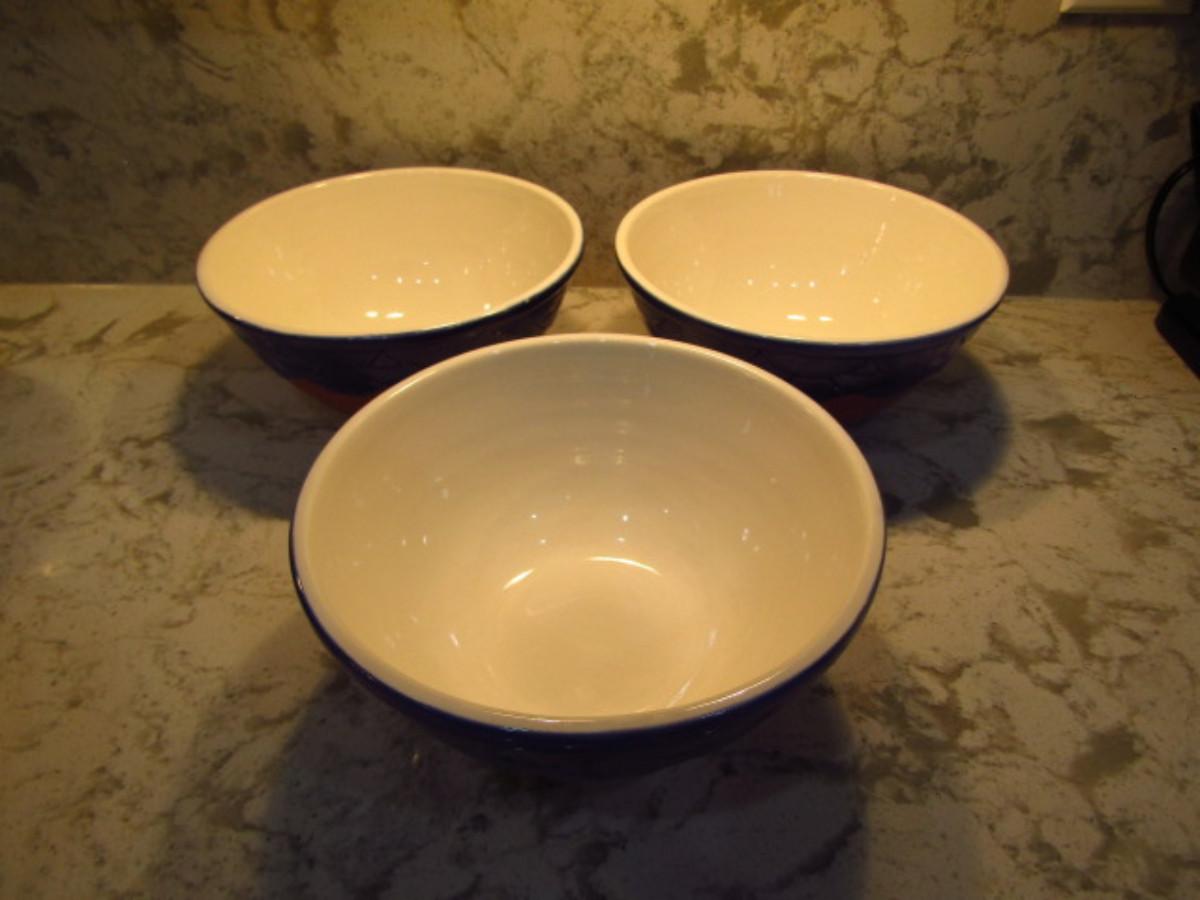Three Ceramic Mixing Bowls (Kitchen). No maker's mark found. Measure approx 8 3/4" across.