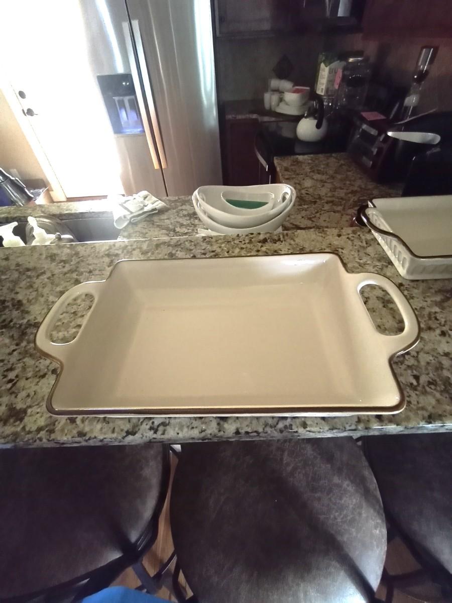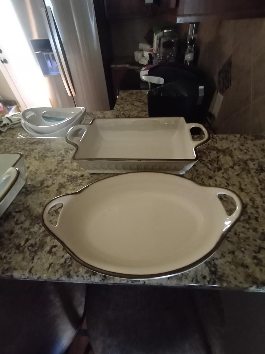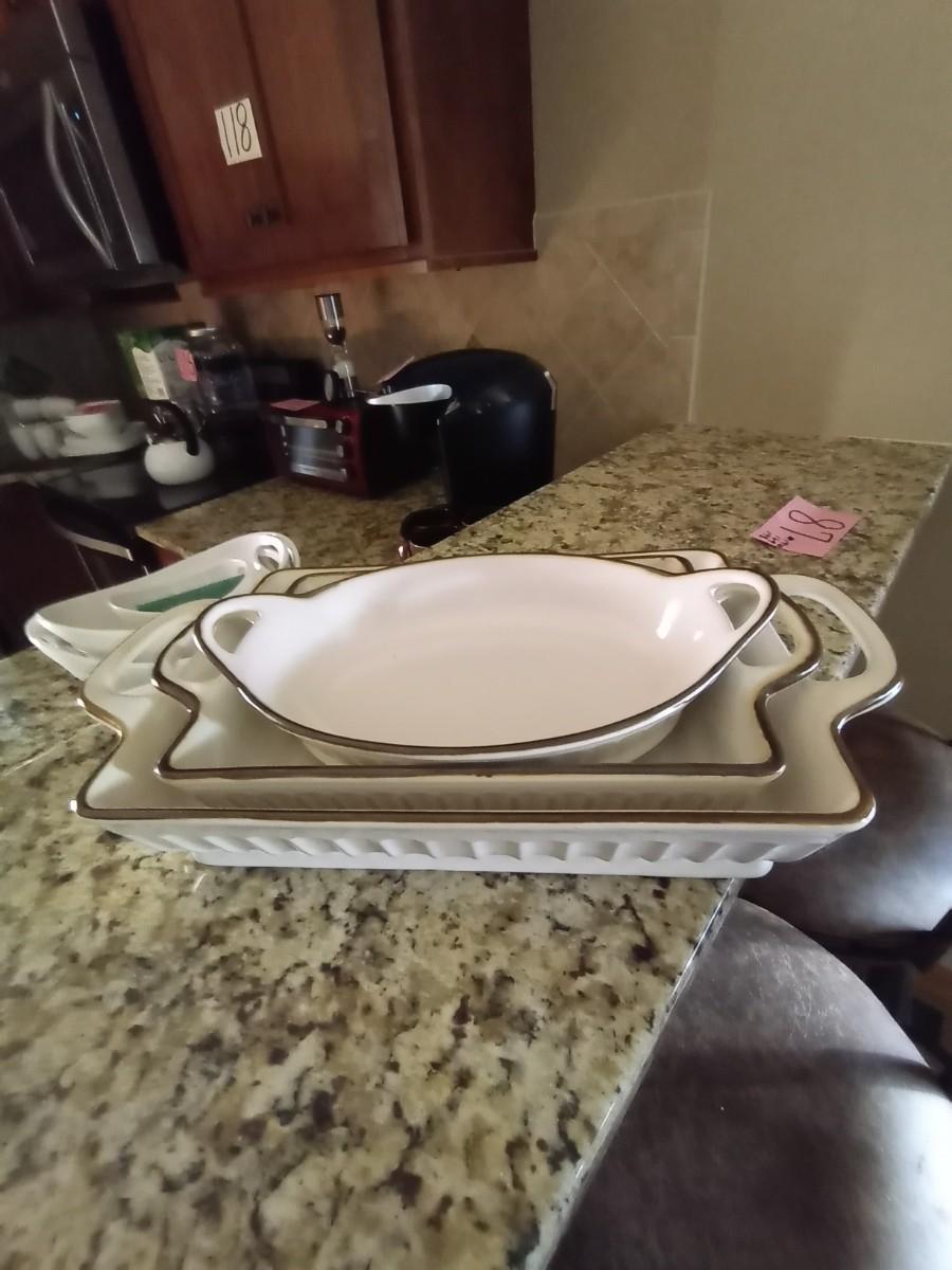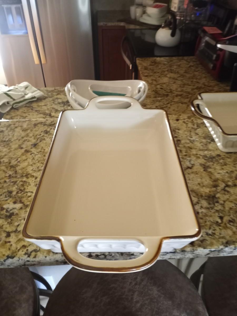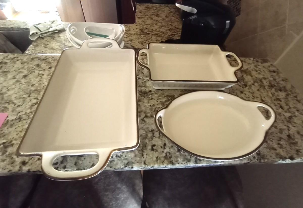 THREE CERAMIC BAKING DISHES 19X10, 16X9, 14X8