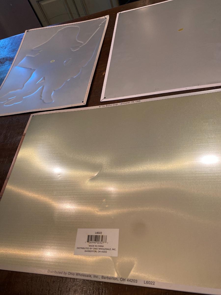 12”x16 and 14”x12”. (In sitting room on butler table.)