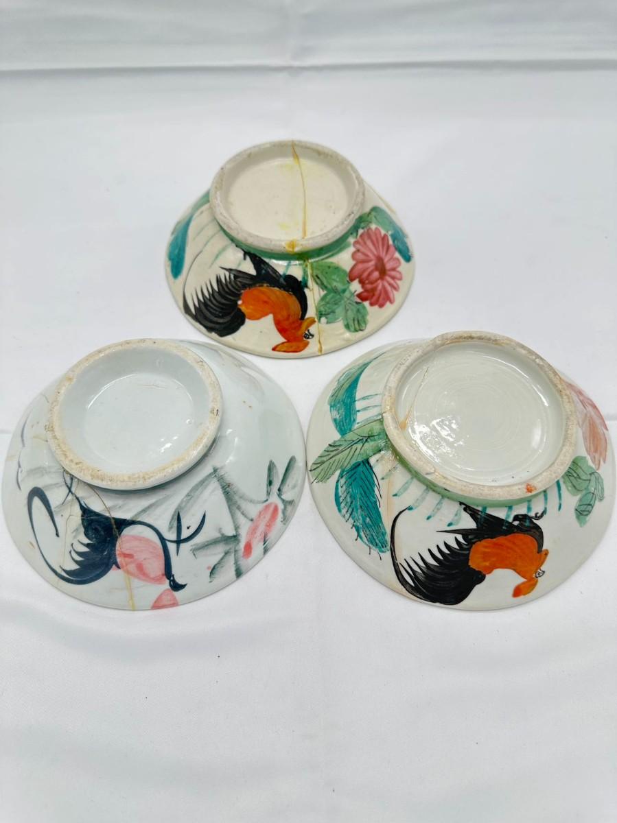 Three Chinese Chicken Bowls, Repaired-local pickup and shipping available