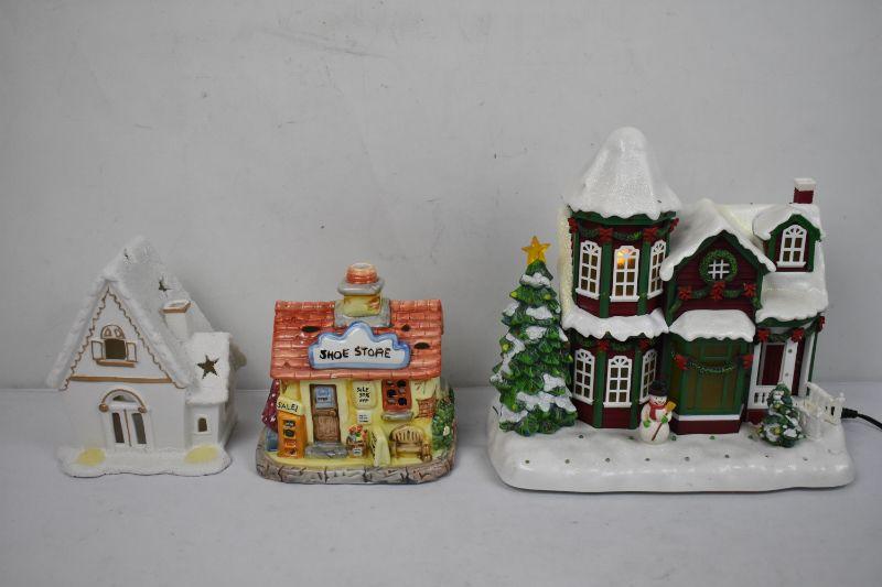 Three Christmas Villages - One Missing Pieces, One Lights Up