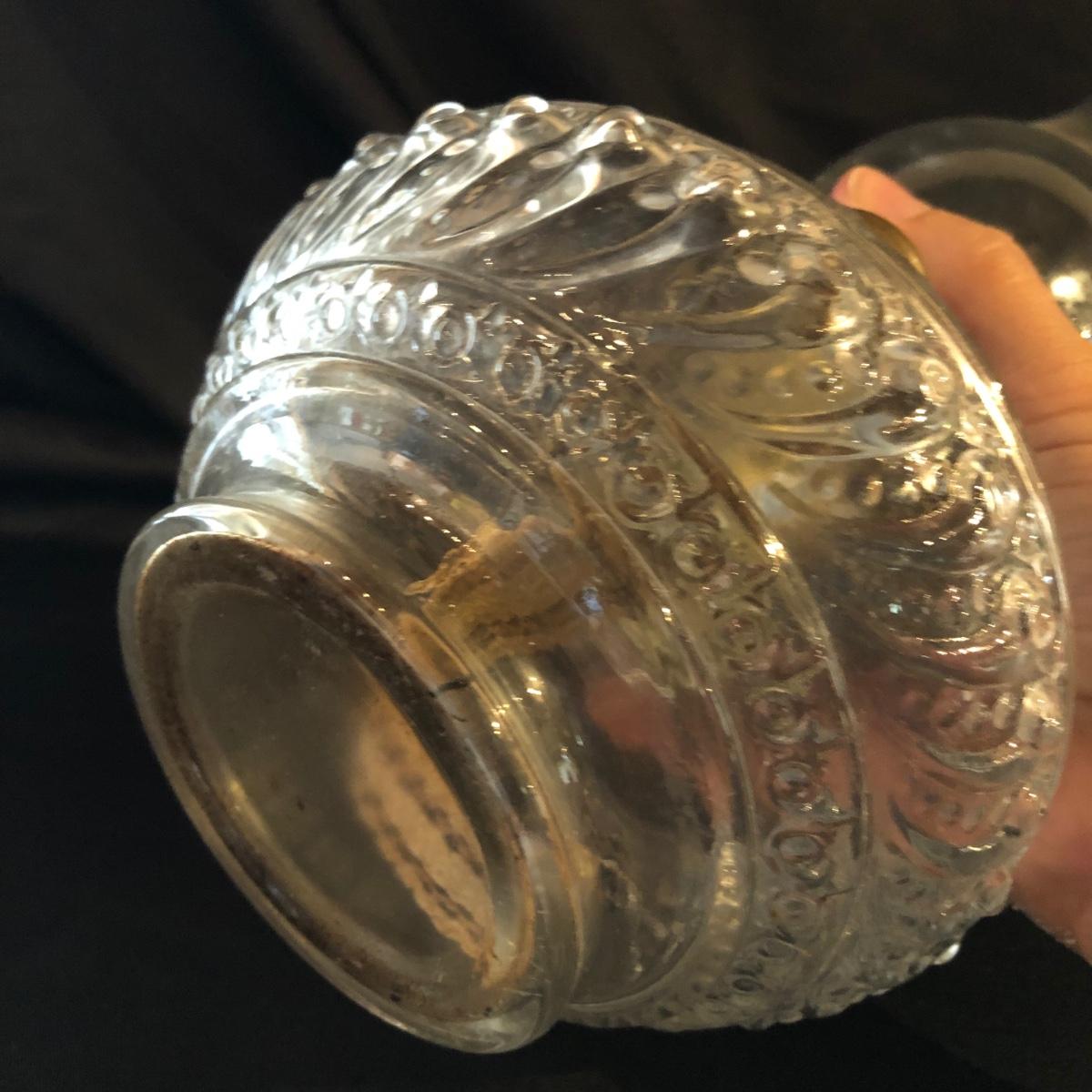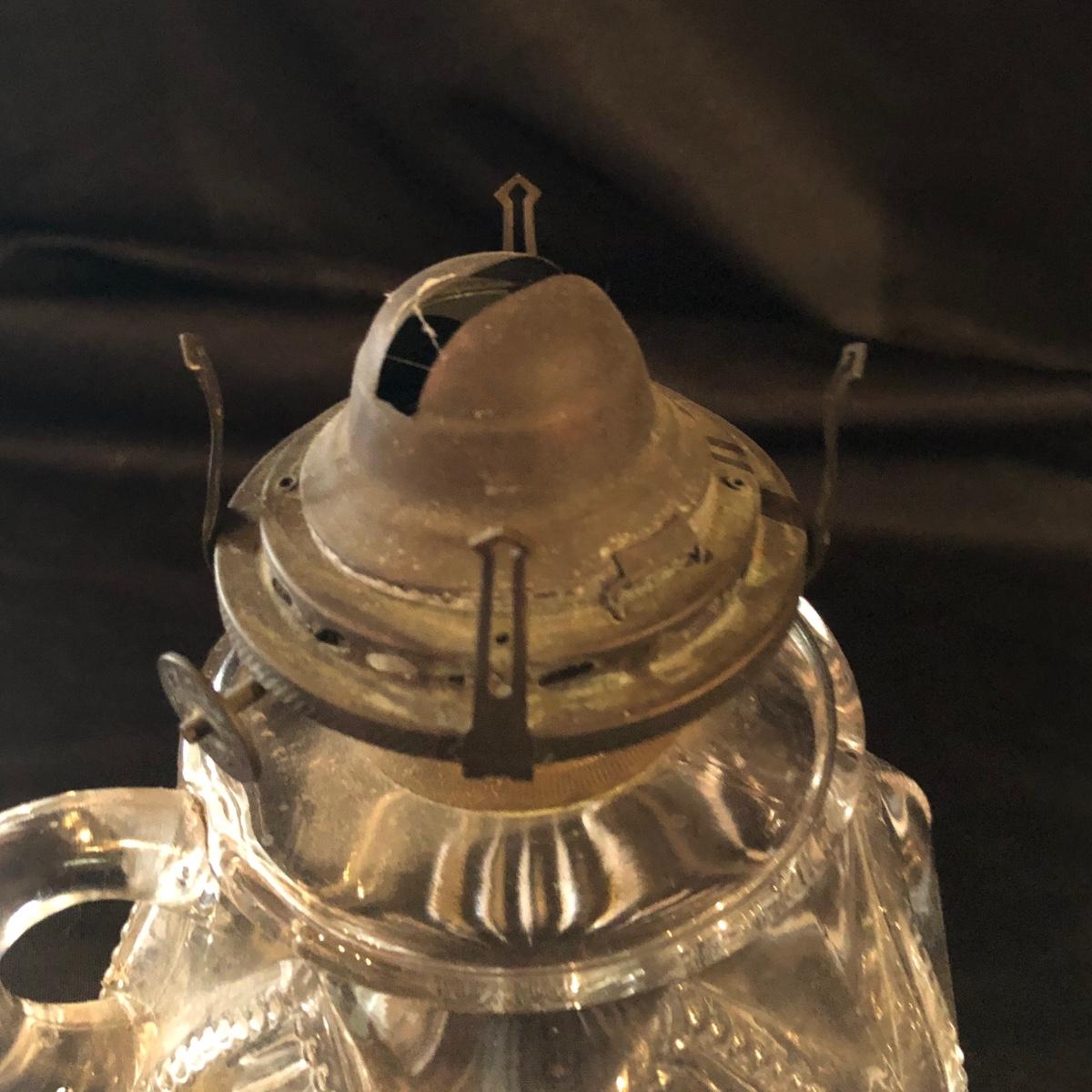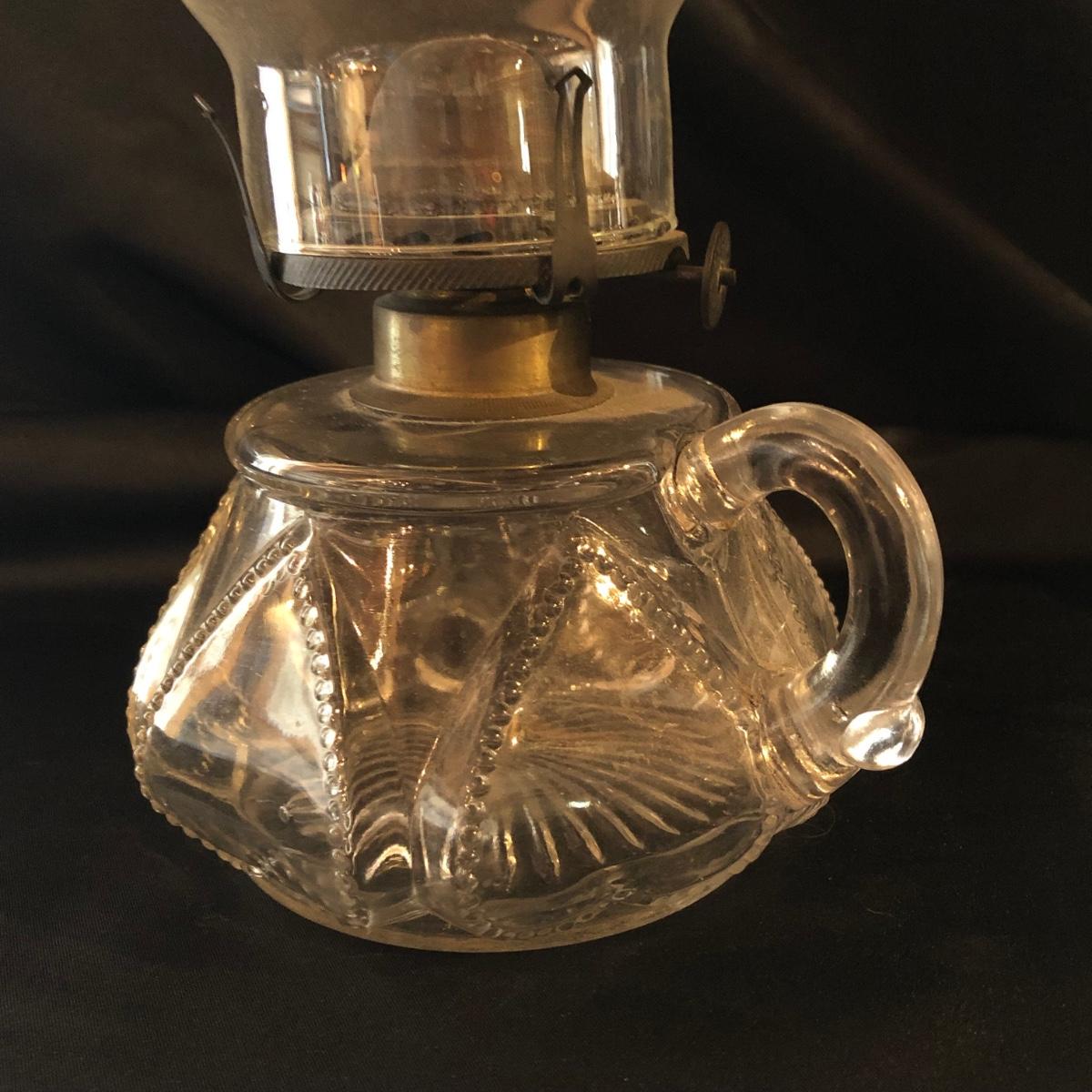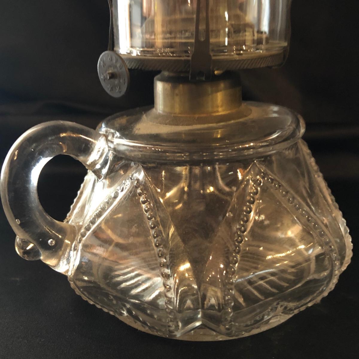 All 3 lamps have knobs to turn the wick and two of the three lamps have wicks. Each oil lamp has a chimney and intact bowls with no cracks or chips. The tallest measures 14.5” with a bowl of about 6”. The shortest chimney has a beaded top and stands 13” tall. Shipping Available.