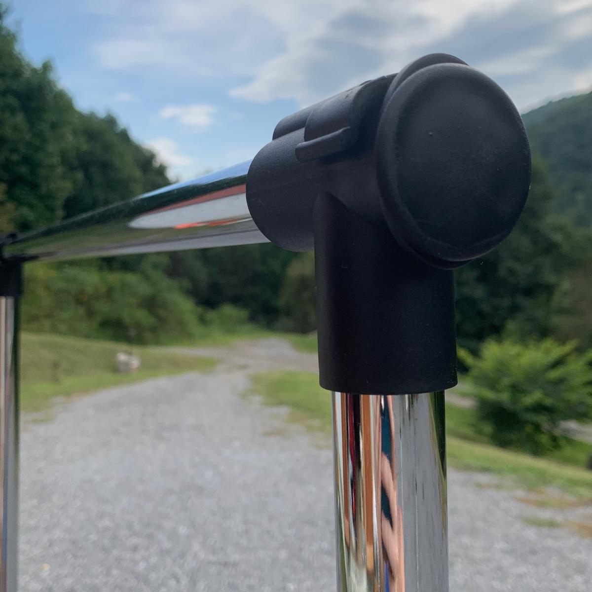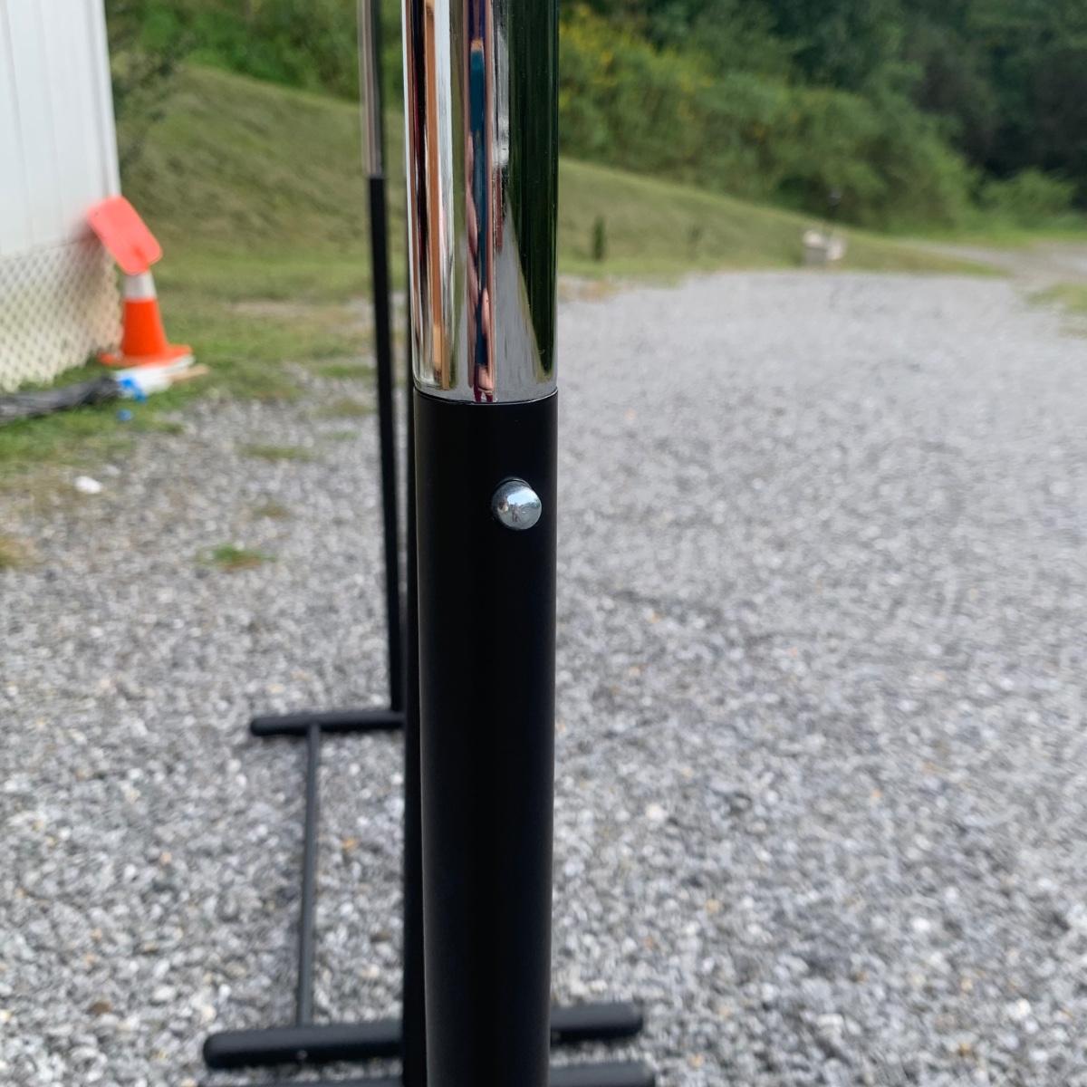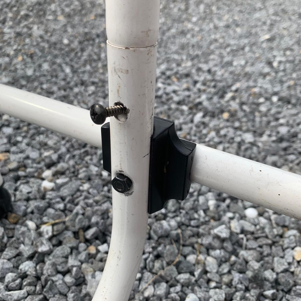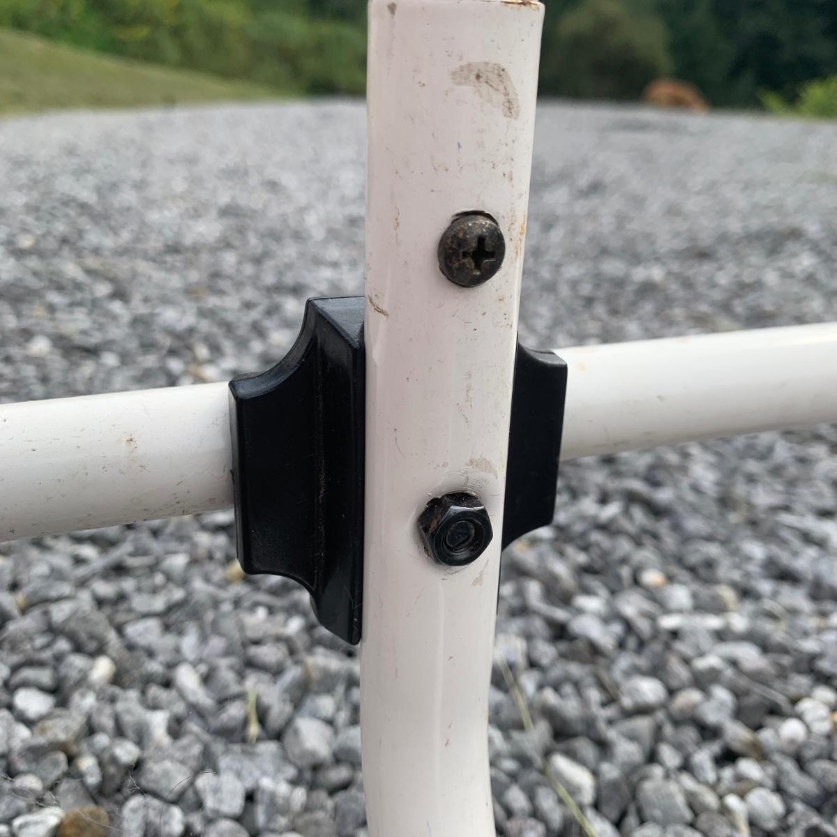 Three clothing racks. All are metal with plastic bindings. Two of the racks are identical except one does not have casters attached. These two are 33” x 18” x 65” without the casters, or 66.5”H with the casters. The white rack has casters and appears to be adjustable in height, but is stuck in its current position and will likely need some effort to adjust. The two black racks disassemble with ease.
