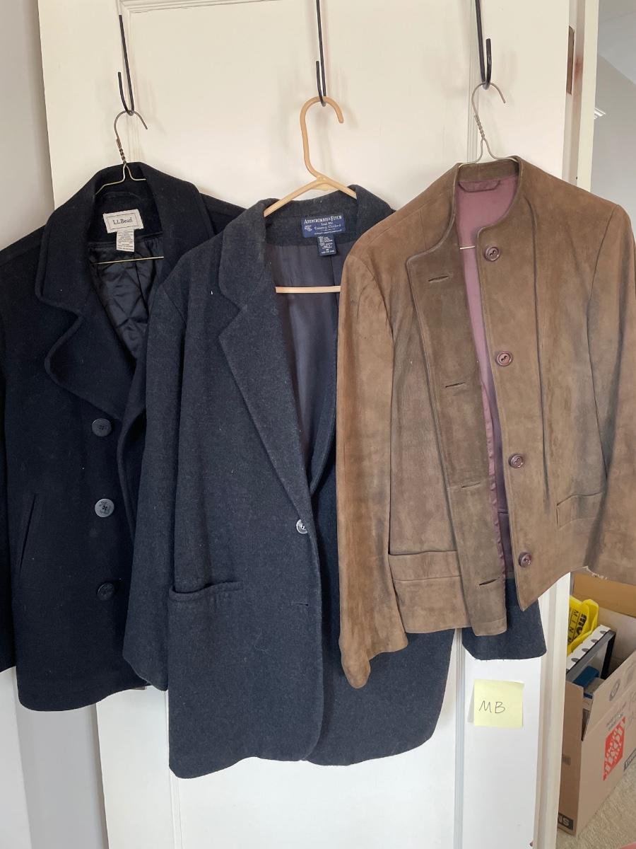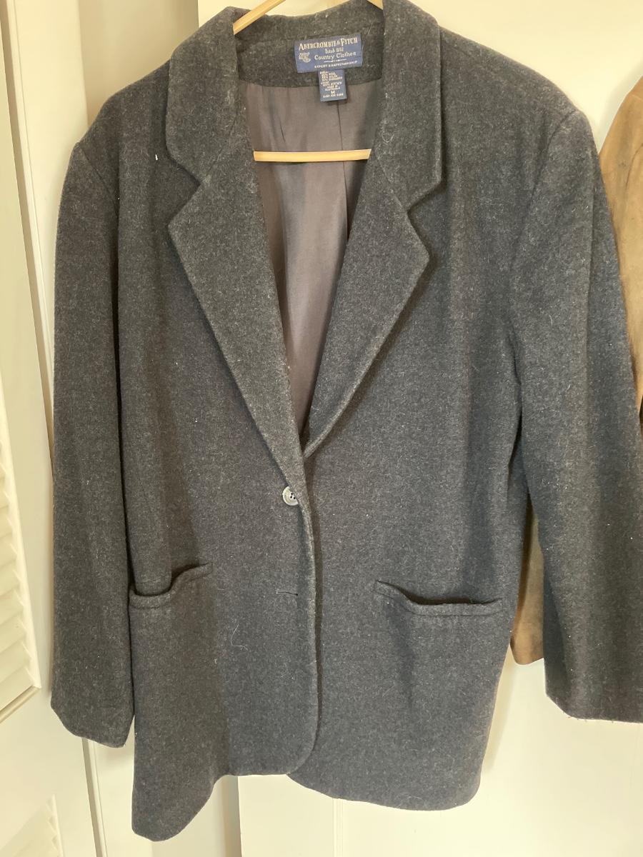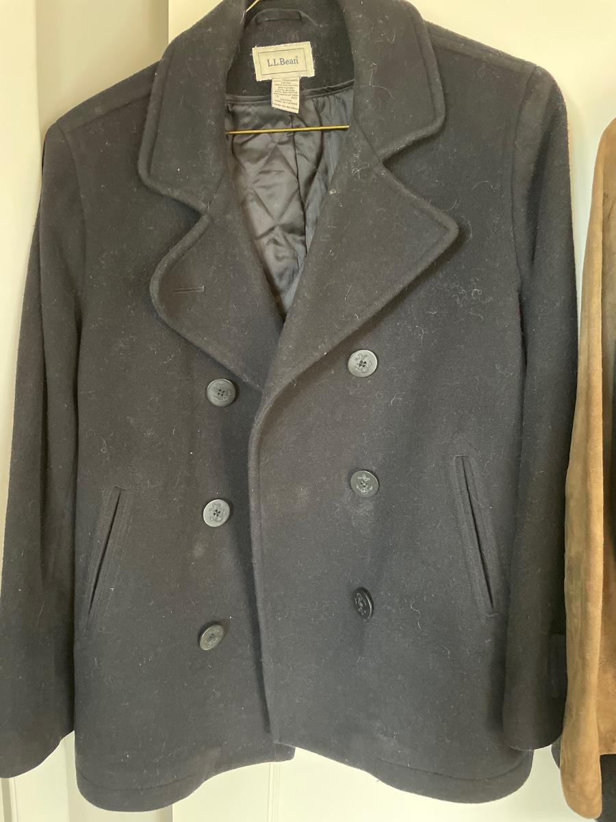 LL Bean pea style jacket size 12. Abercrombie Fitch size M part woil. Brown suede button up jacket.