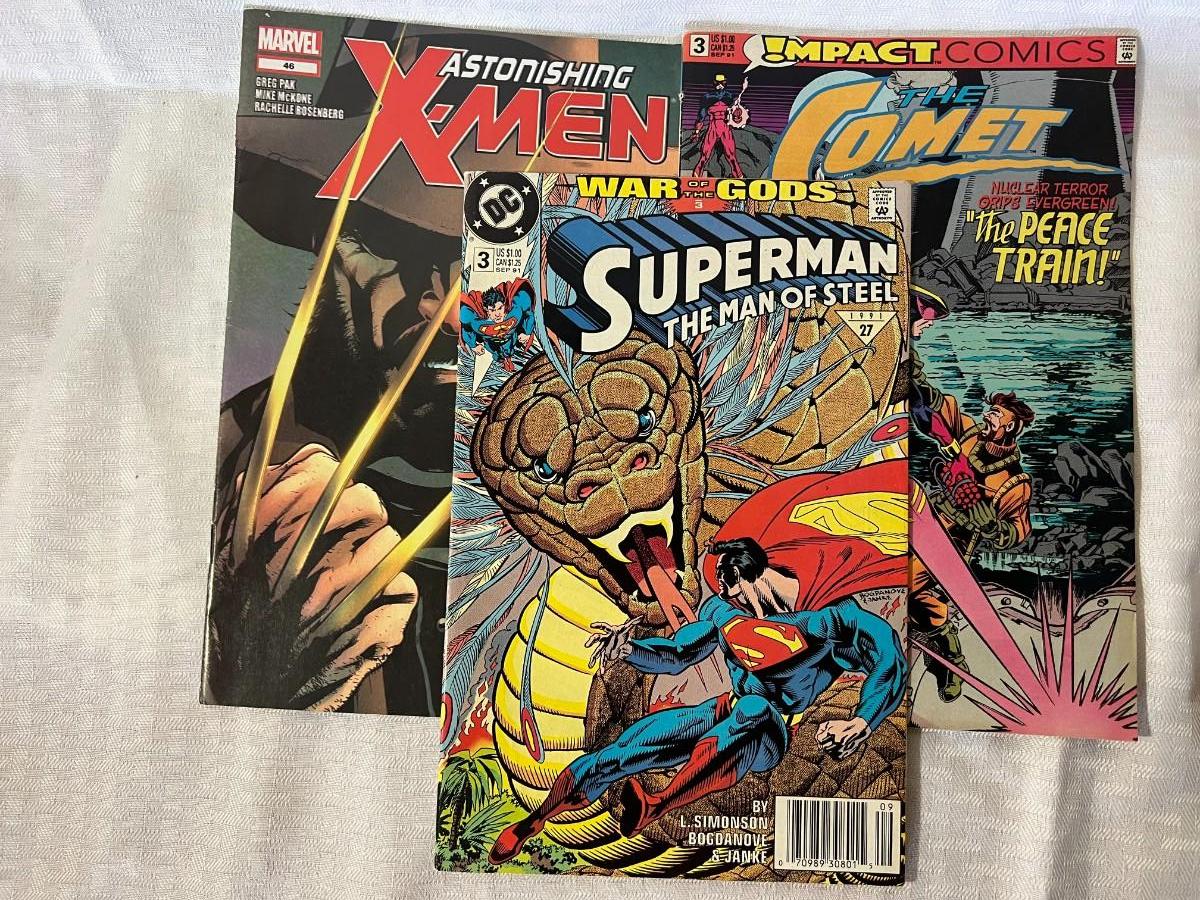 THE COMET "THE PEACE TRAIN", SUPERMAN THE MAN OF STEEL, ASTONISHING X-MEN.