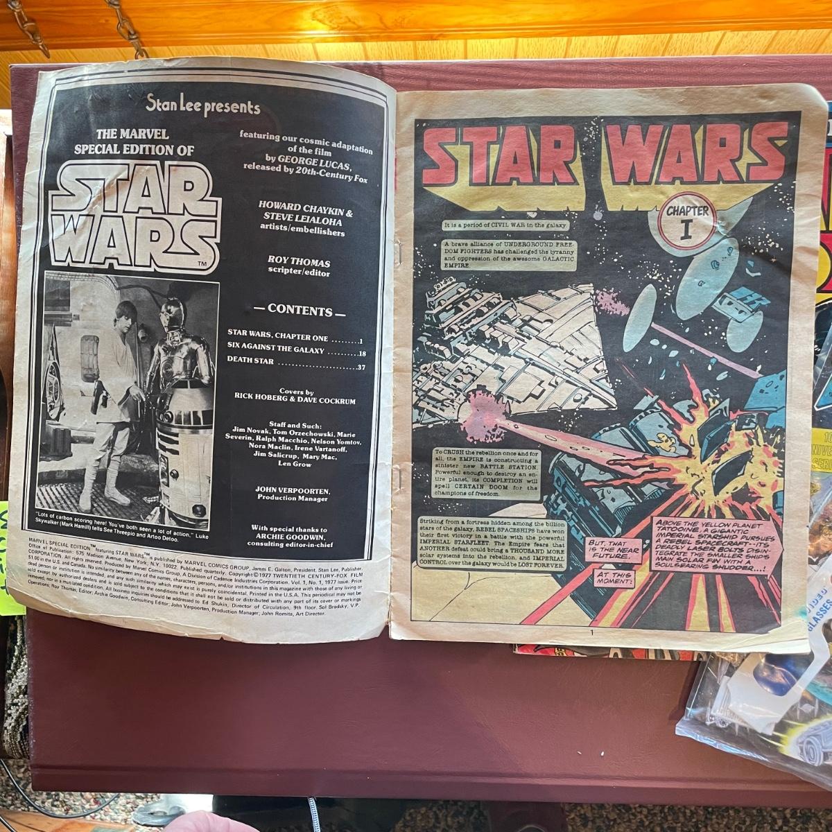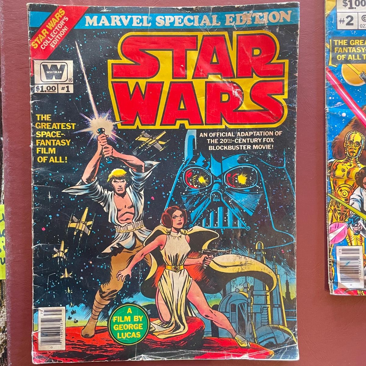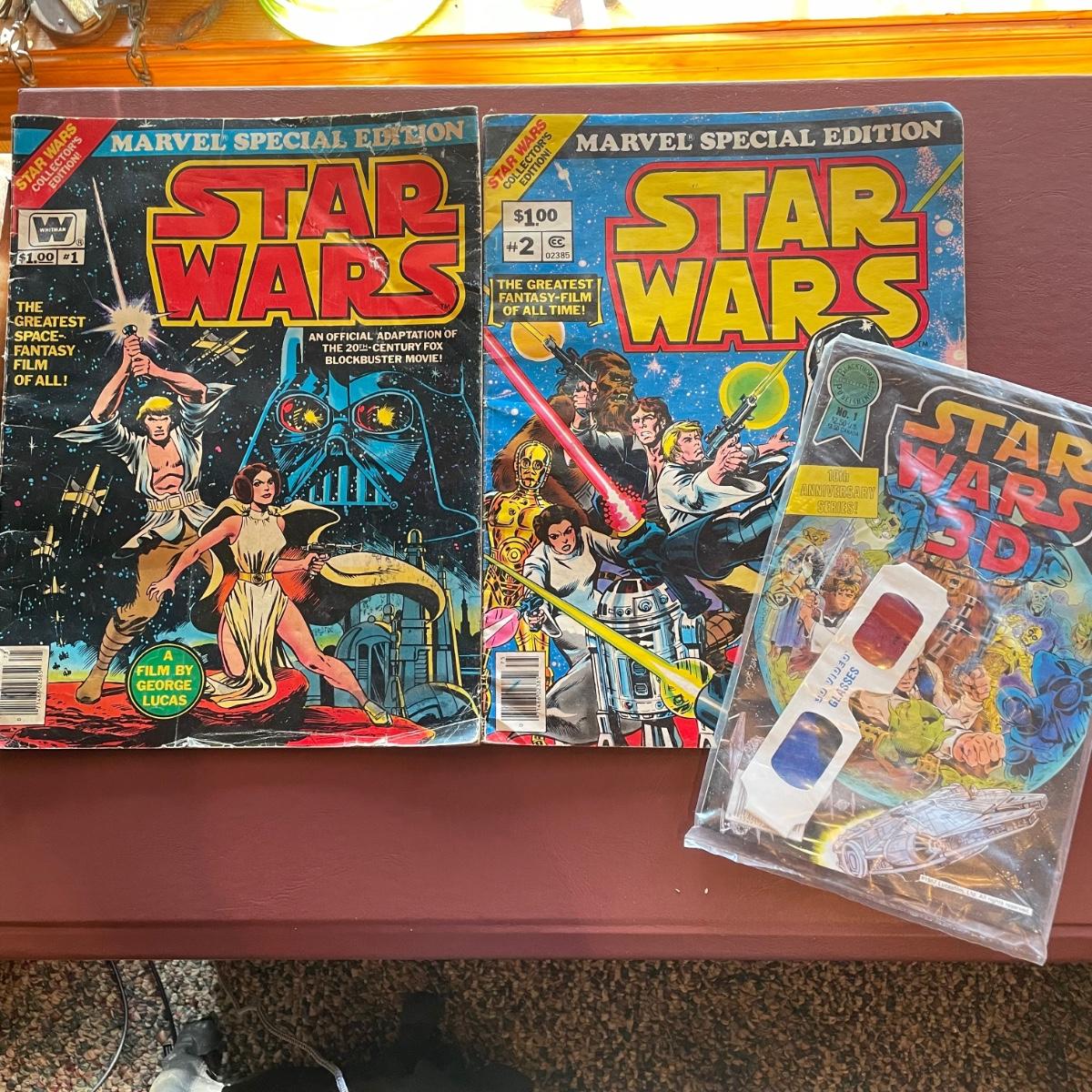 Two king sized Marvel Special Edition Star Wars comics. Volume #1 and #2 both No 1. Lot also features Star Wars 3D #1, 10th Anniversary Series from Blackthorne Publishing 1987. This comic is still packaged in sealed plastic wrap. See images. Shipping available.