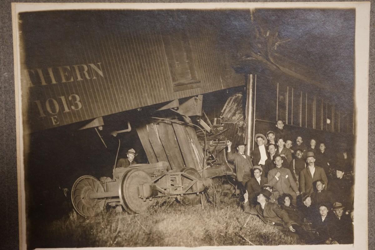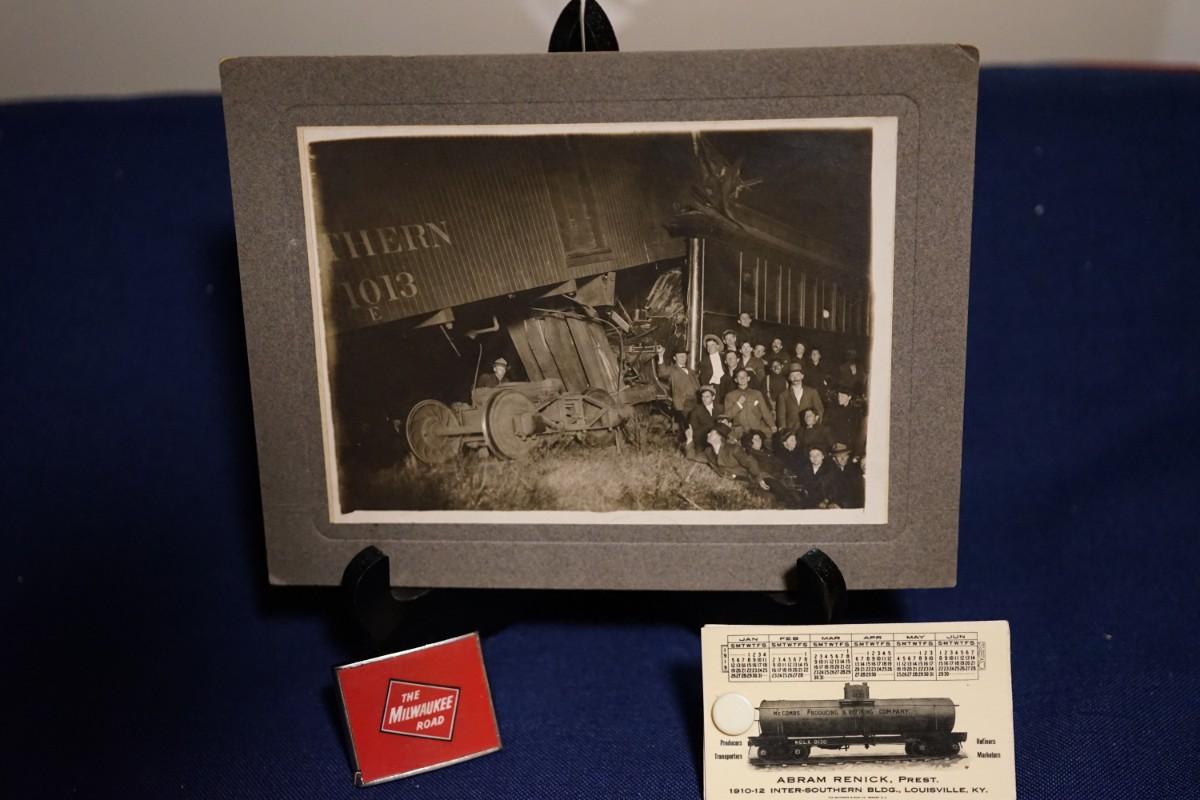 THREE COLLETIBLE RAILROAD ITEMS TO INCLUDE TRAINWRECK CABINET CARD NORTHERN RAILROAD