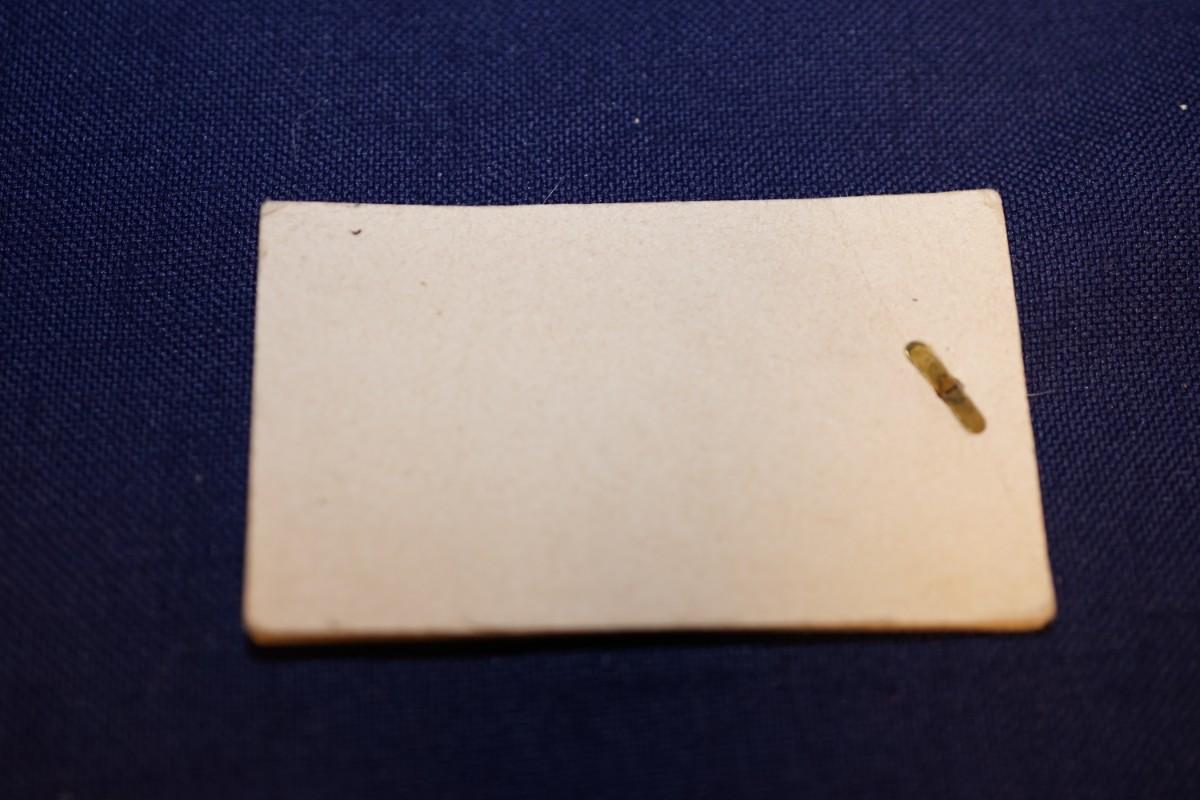 measures 2 12/" by 3 3/4" the front is celluloid the back is a heavy cardboard with paper sheets inside to take notes