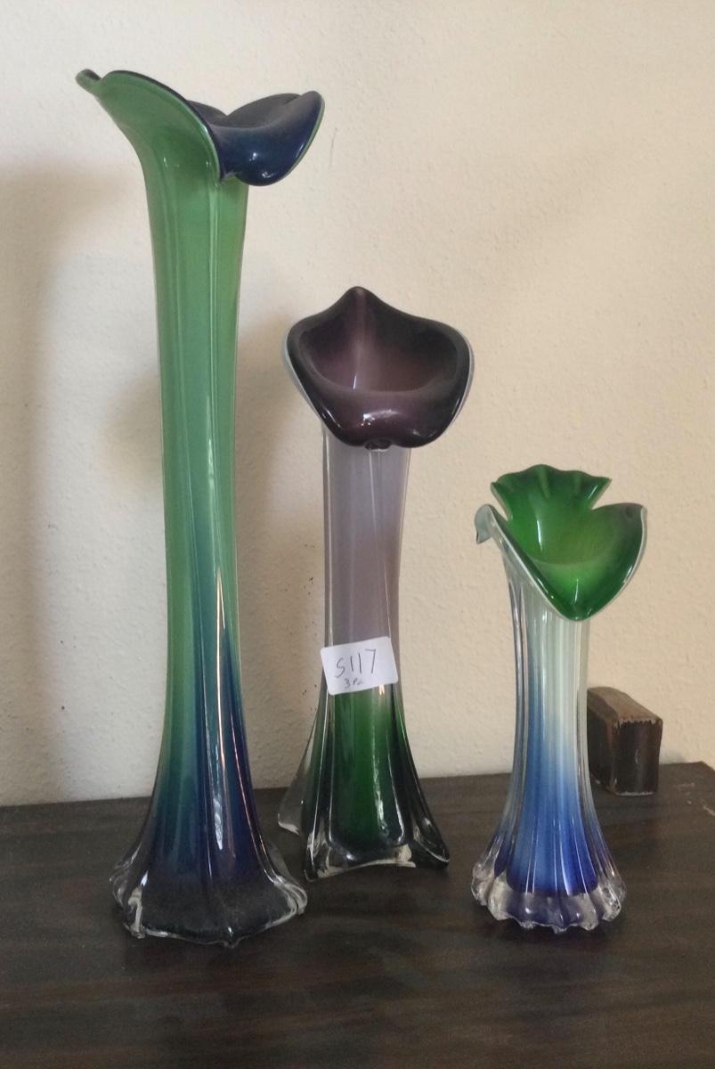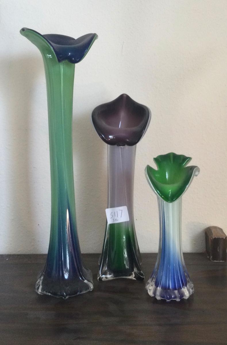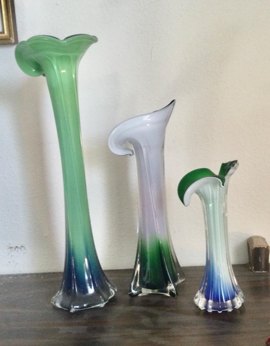 Three colorful Jack in the pulpit vases