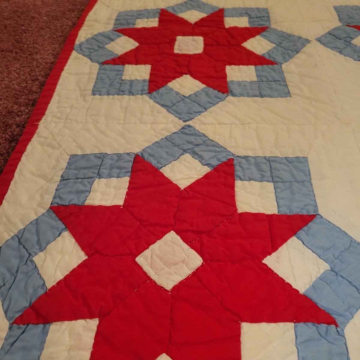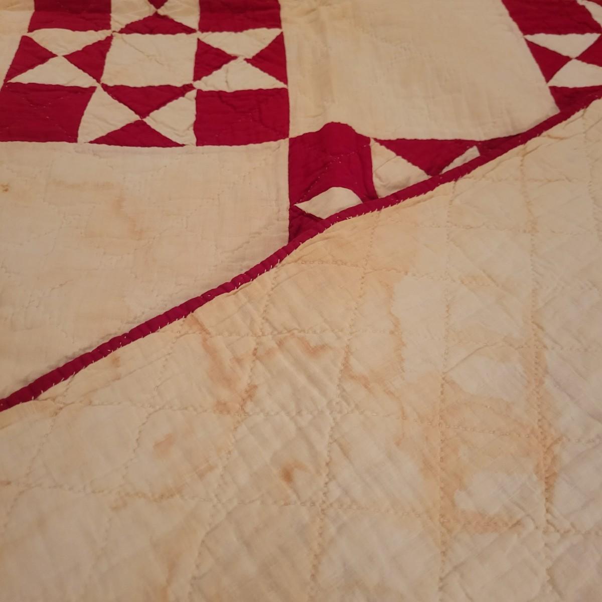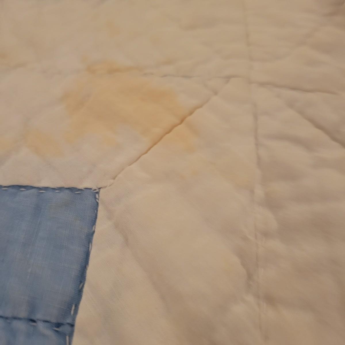 Three colorful quilts in good condition, but two do have varying amounts of stains. See attached pictures for more detail. The quilts range in size from. 72" x 78" to 90" x 65". Shipping available
