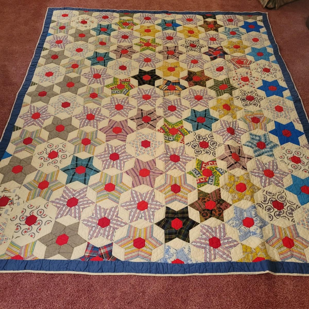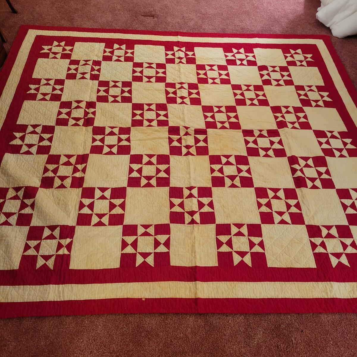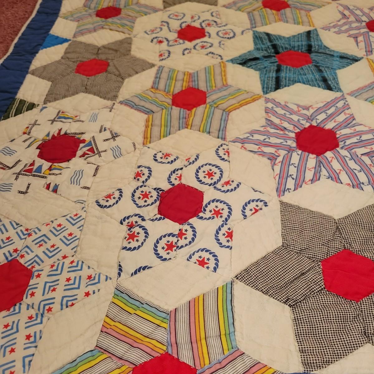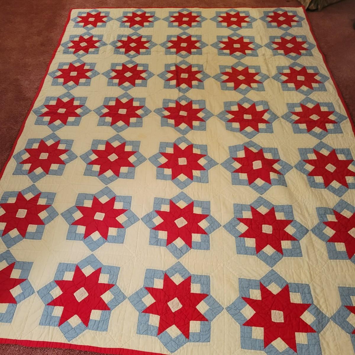 Three colorful quilts in good condition, but two do have varying amounts of stains. See attached pictures for more detail. The quilts range in size from. 72" x 78" to 90" x 65". Shipping available