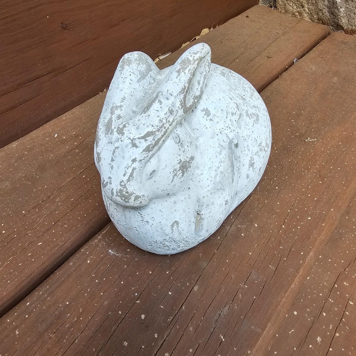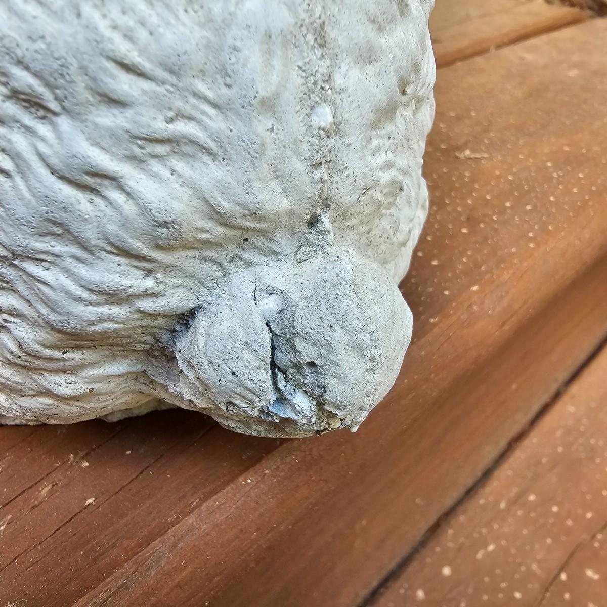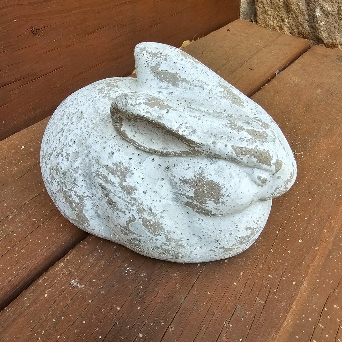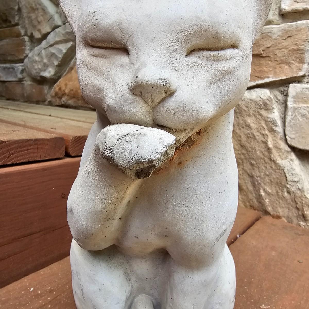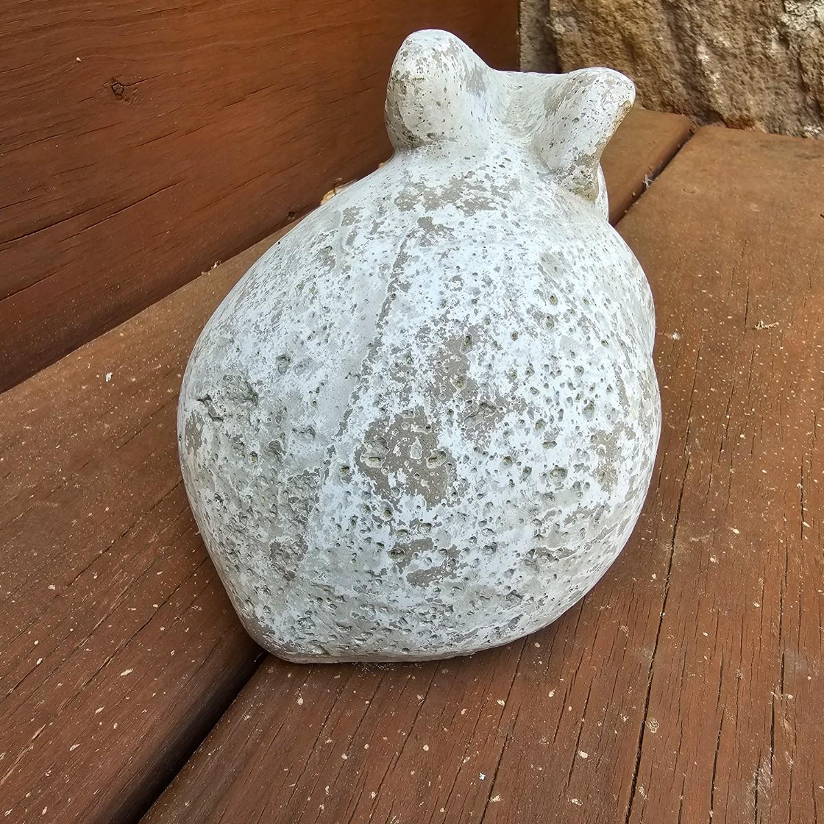 Two cute bunnies and a kitty make up this concrete trio. All three natural concrete grey, small bunny has a white speckled effect. Cat measures 5" x 8" x 1"H, has chips on both ears and one paw. Bunny with long ears is 5" x 10.5" x 6"H, has authentic looking fur body. Small bunny is 5" x 6.5" x 5"H. See photos for details. Local pickup only.