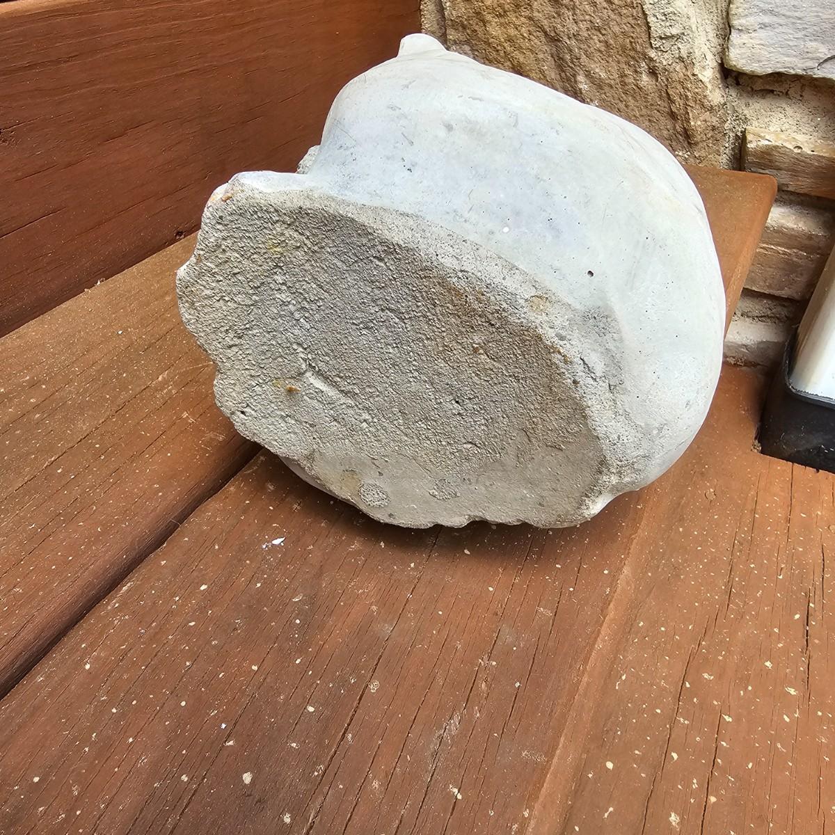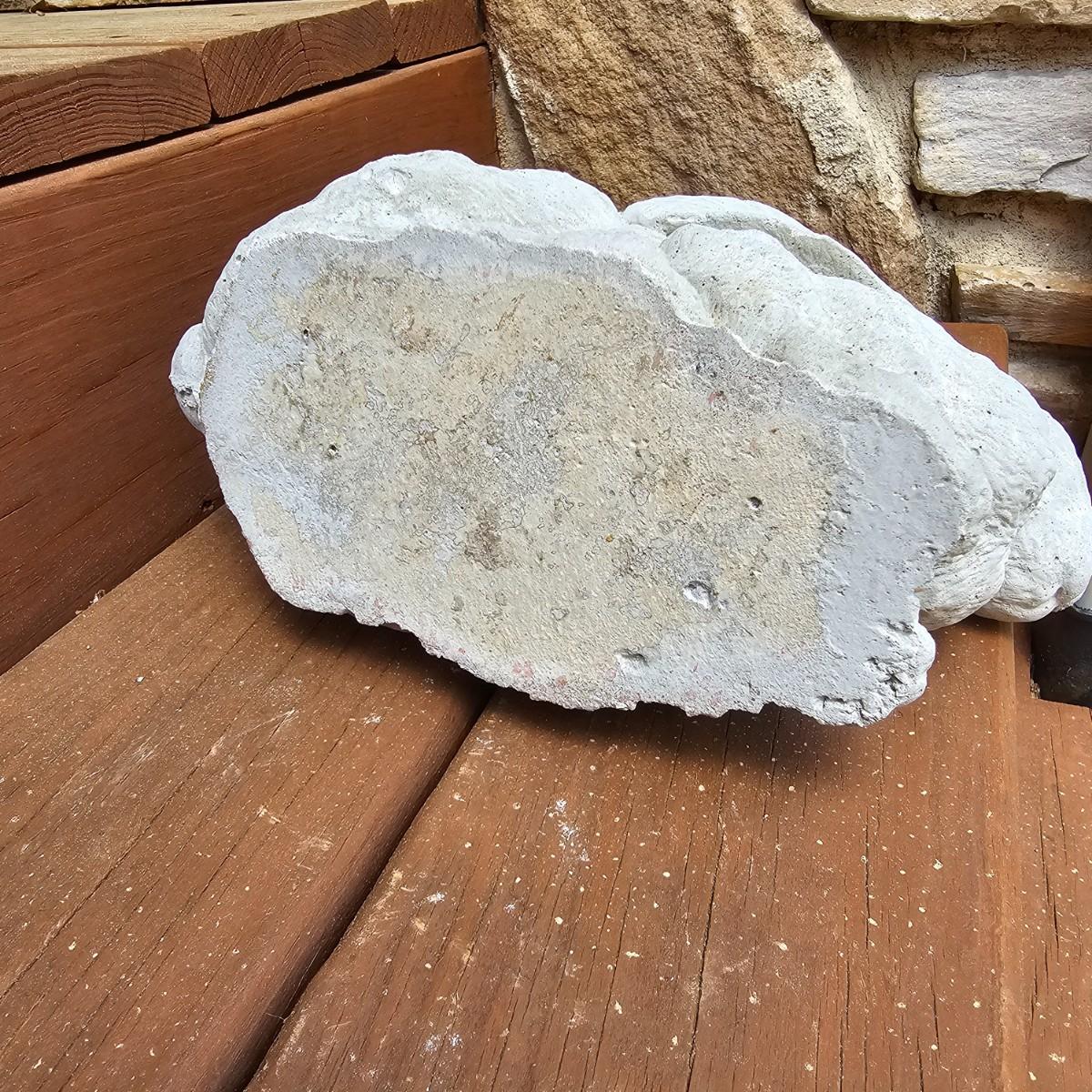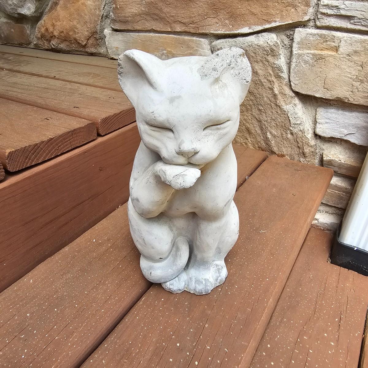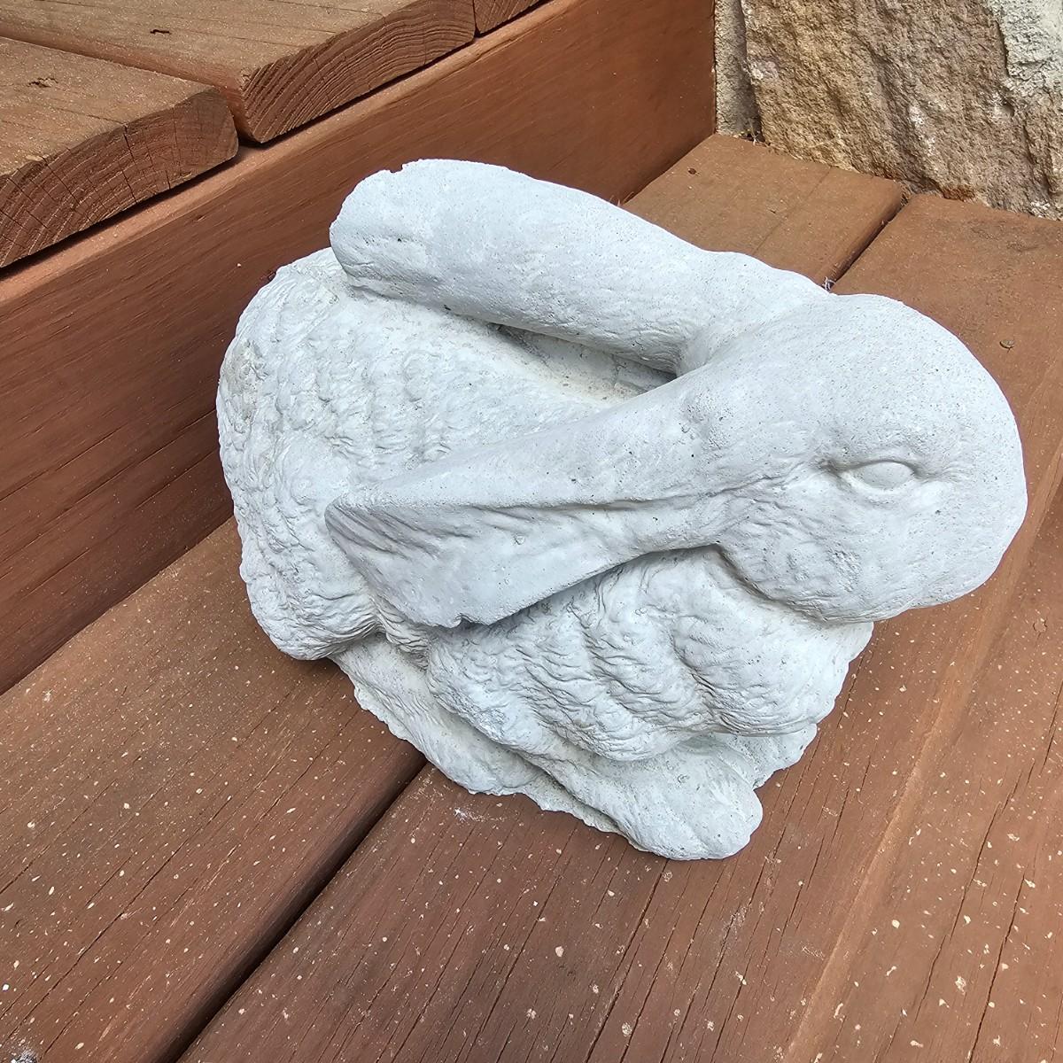 Two cute bunnies and a kitty make up this concrete trio. All three natural concrete grey, small bunny has a white speckled effect. Cat measures 5" x 8" x 1"H, has chips on both ears and one paw. Bunny with long ears is 5" x 10.5" x 6"H, has authentic looking fur body. Small bunny is 5" x 6.5" x 5"H. See photos for details. Local pickup only.
