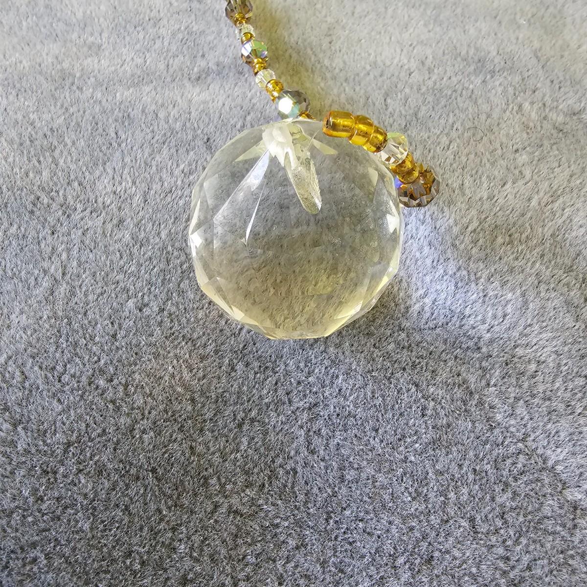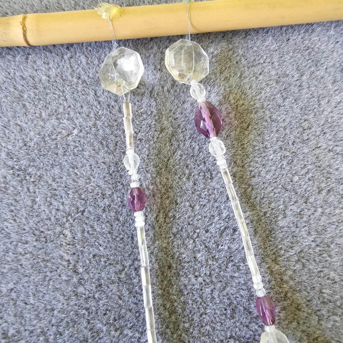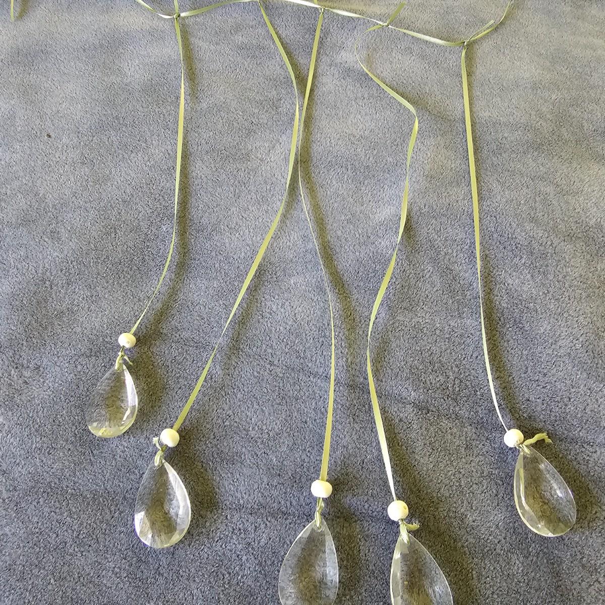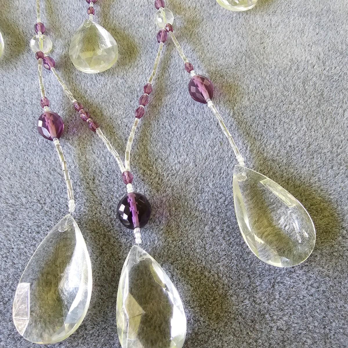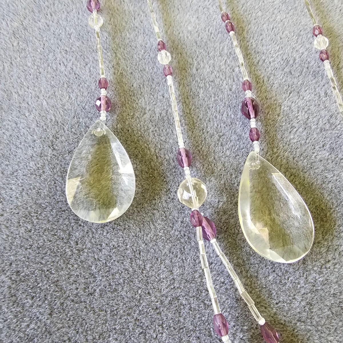 Three pieces of beads and crystal art to grace your windows. Purple piece is on bamboo rod, is 12" x 15". Single round prism is 15" long with faceted crystals and beads. Green ribbon and prisms is 12" x 18". See photos for details. Shipping available.