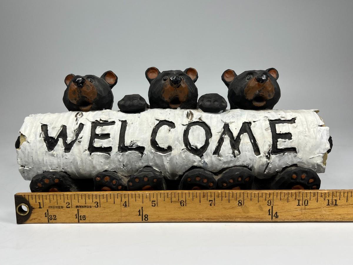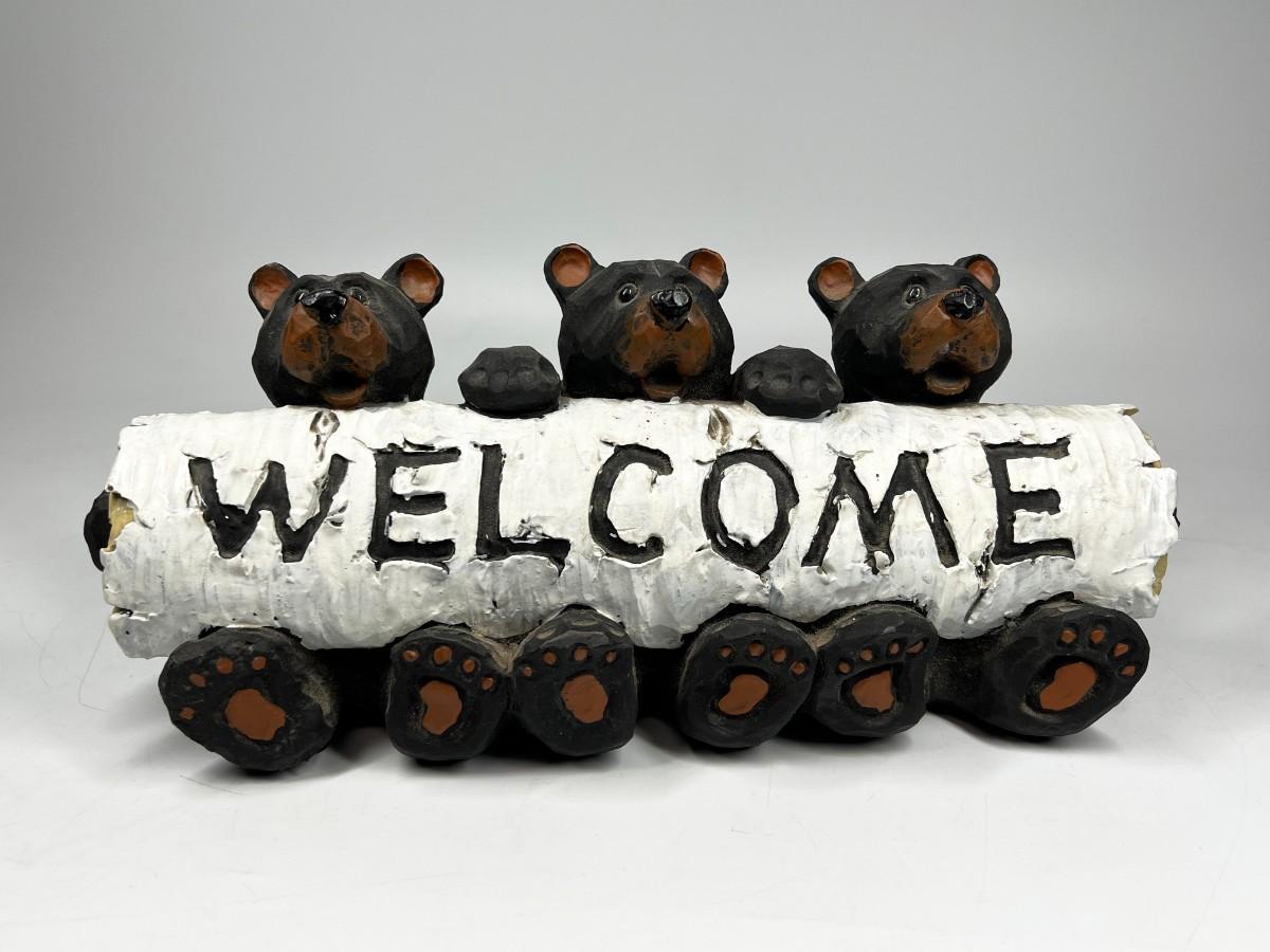 Three Cute Bear Cubs Welcome Yard Garden Art Resin Sign Statue
