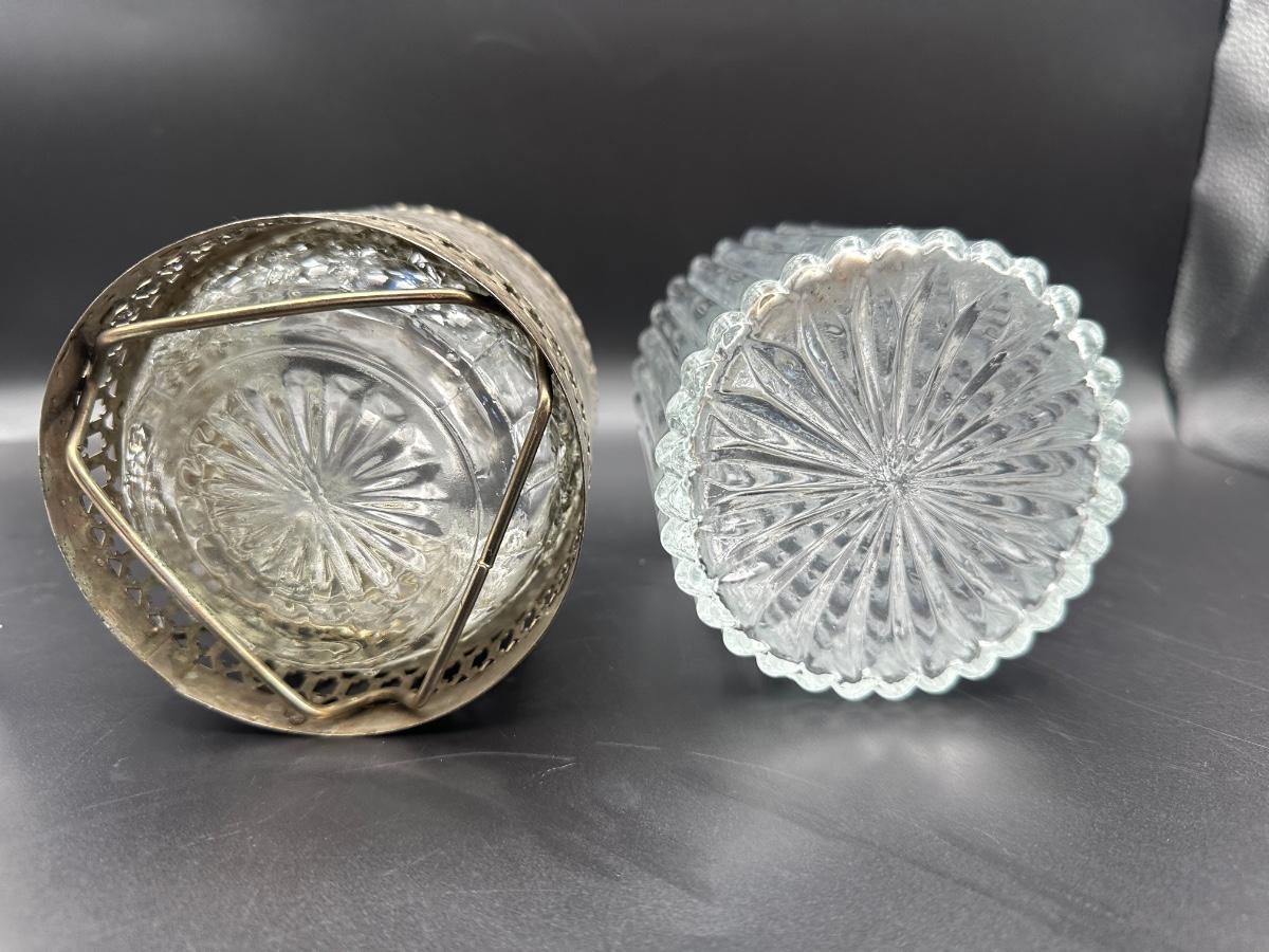 Ribbed glass right: 7 3/4” h x 4” w (base)