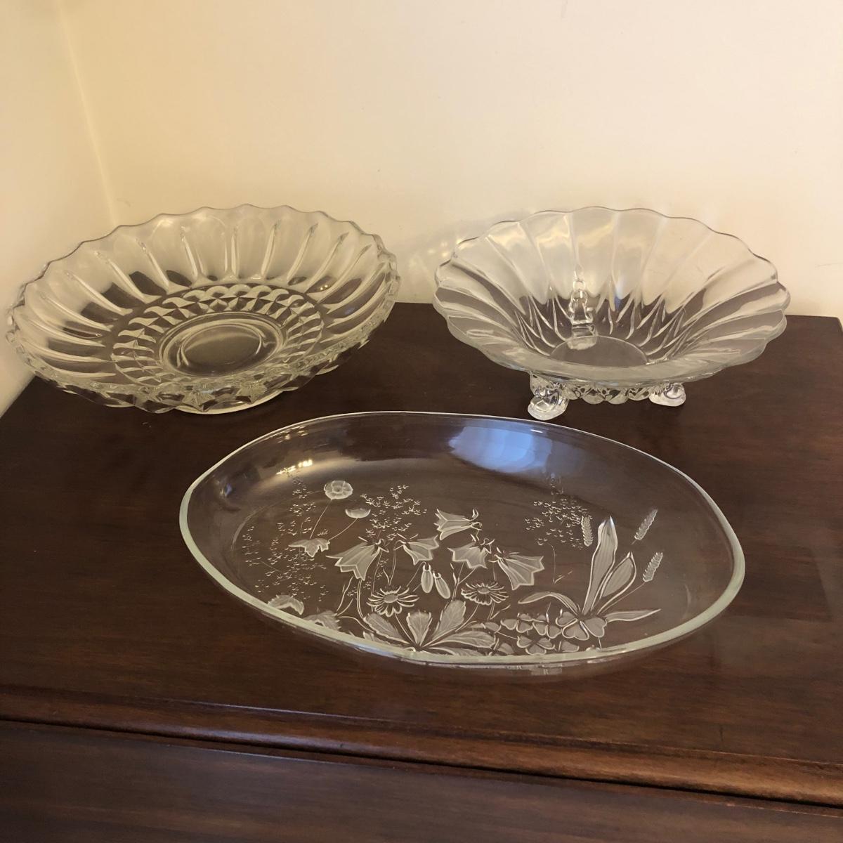 Three Decorative Glass Serving Dishes (DR-KM)