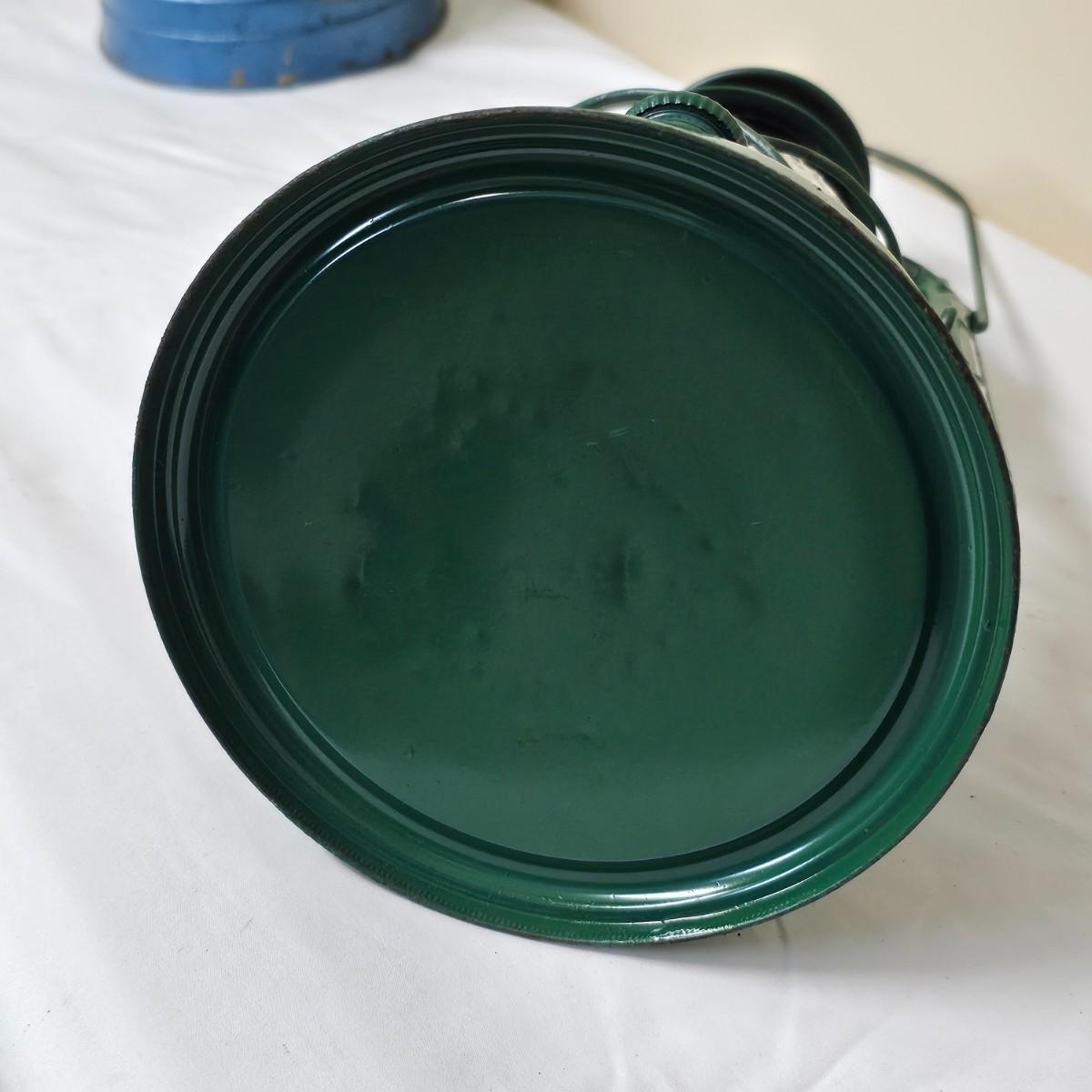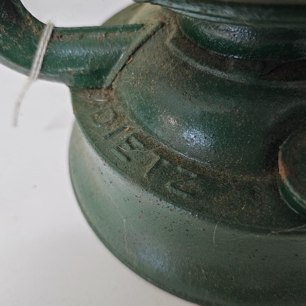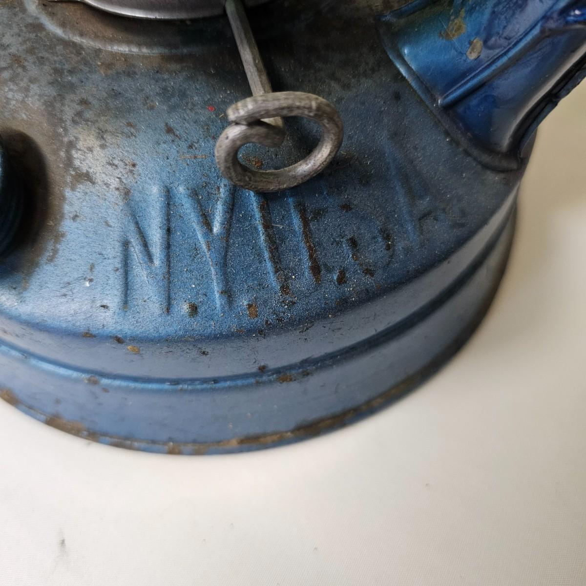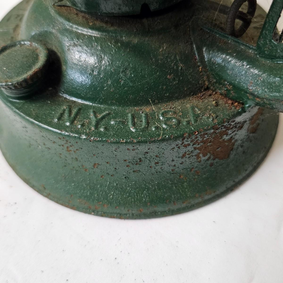 Two 'Little Wizard' and one No 2 De-Lite kerosene lanterns by Dietz of New York. Lanterns are likely 1940's to 1960's vintage. Little Wizards are one green with clear chimney and one blue with green chimney. Each measures6.5" x 6.25" x 15.5"H. Dark green No 2 Lanterns has smoke occluded clear globe, is 8.5" x 7" x 18.5"H. Some rust and wear on all items. See photos for details. Shipping available.