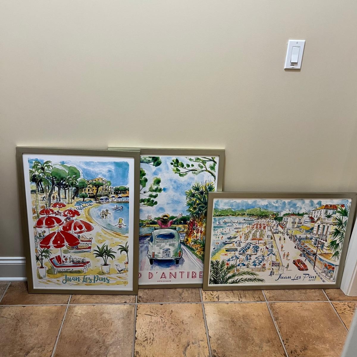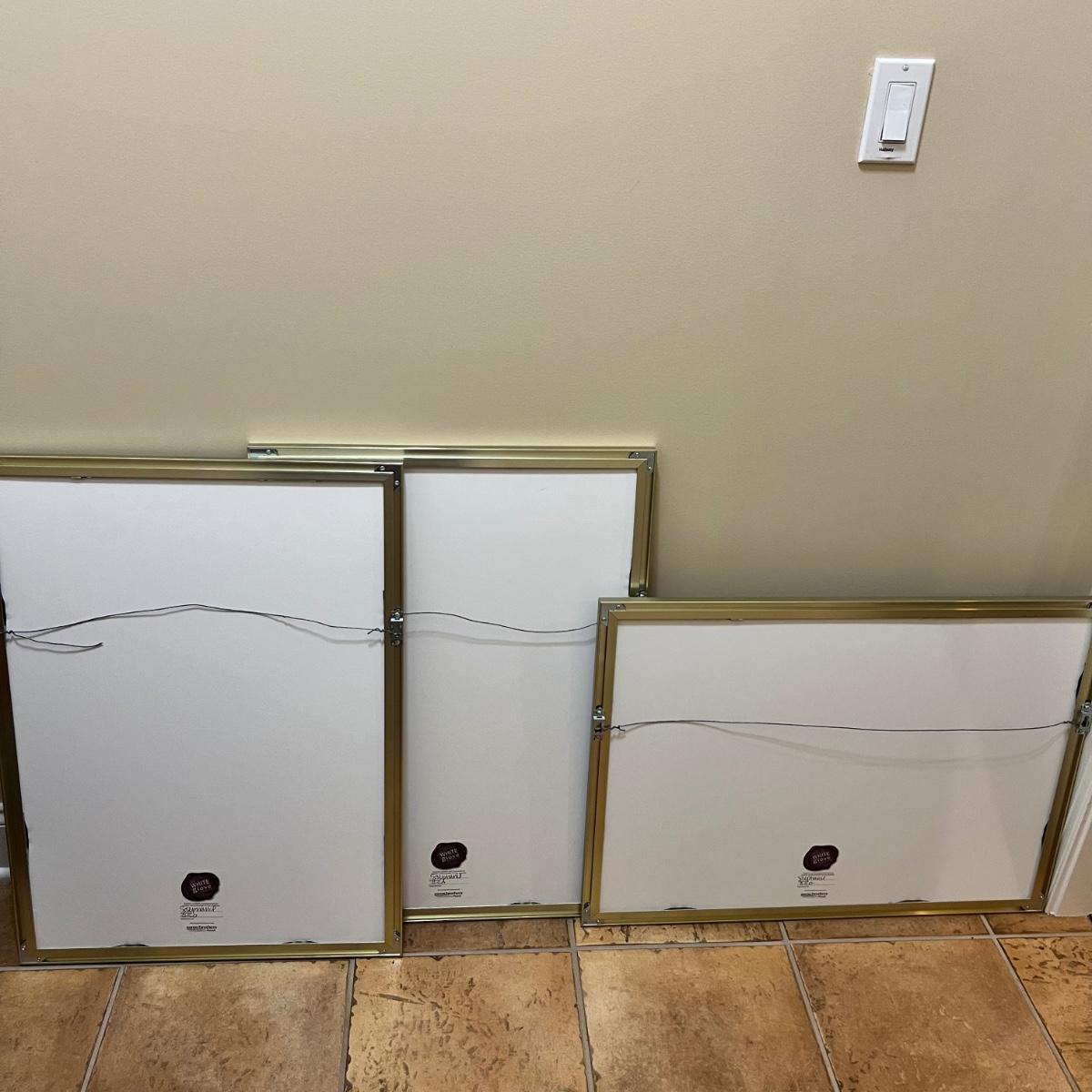 Frames measure 21” x 29” (note that two are portrait and the other in landscape orientation).