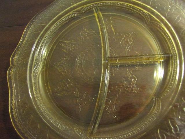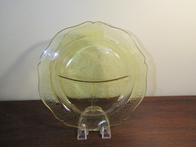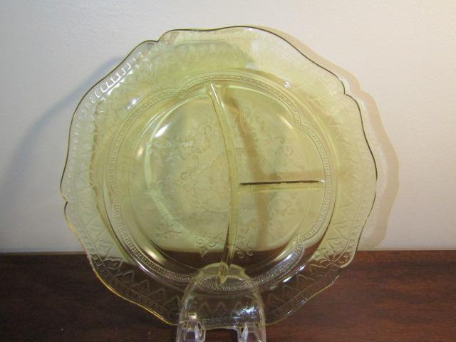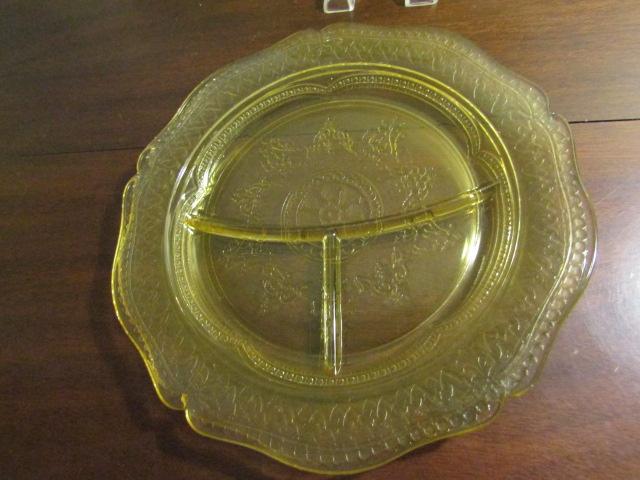 Three Divided Pale Yellow Glass Plates (Approx 11" in Diameter)