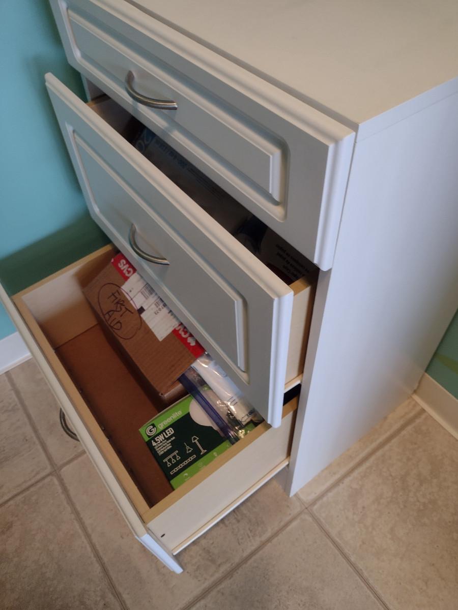 Three Drawer Chest- Approx 24" x 16 1/2" x 35" Tall. No contents included.