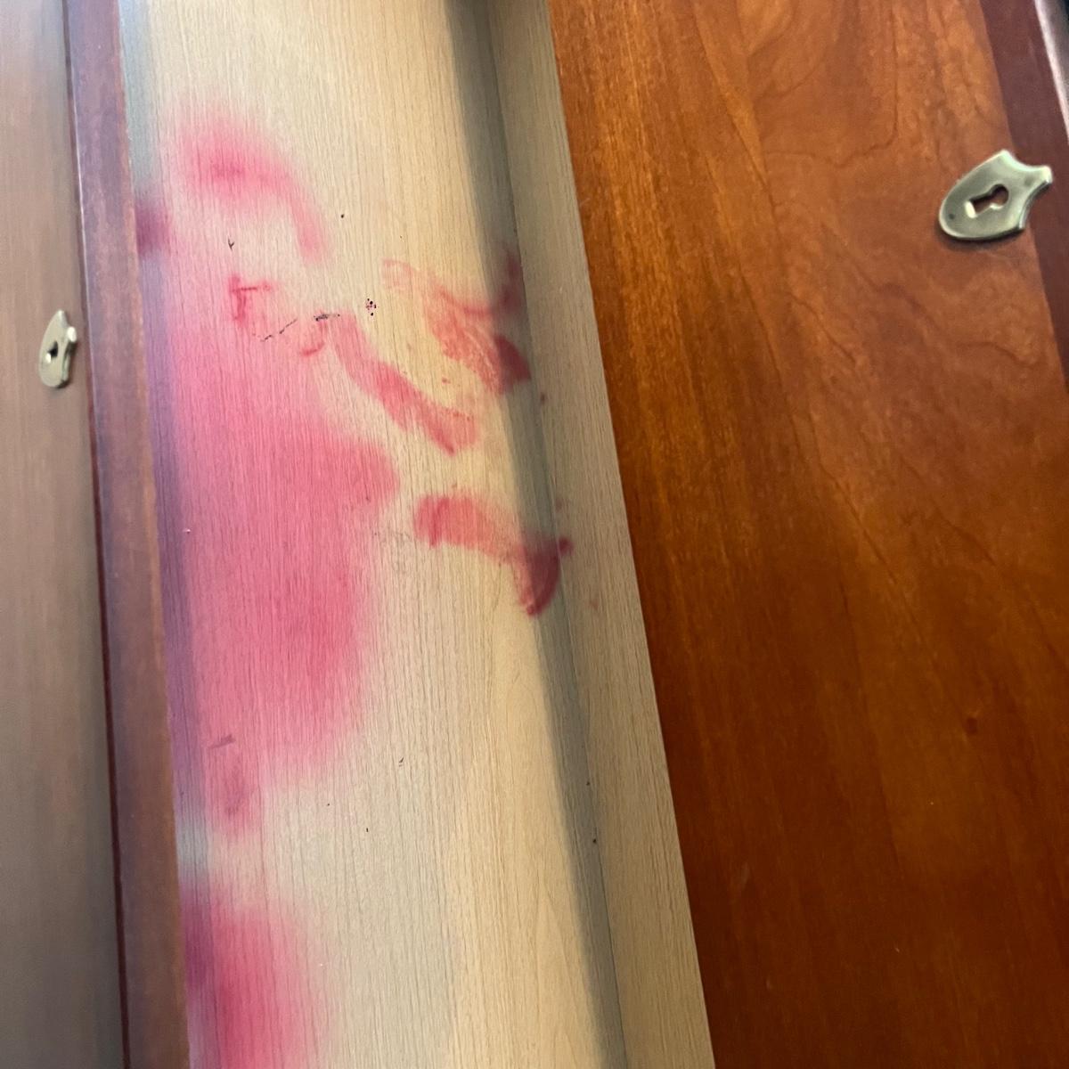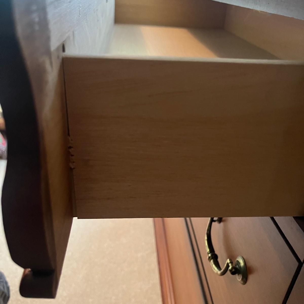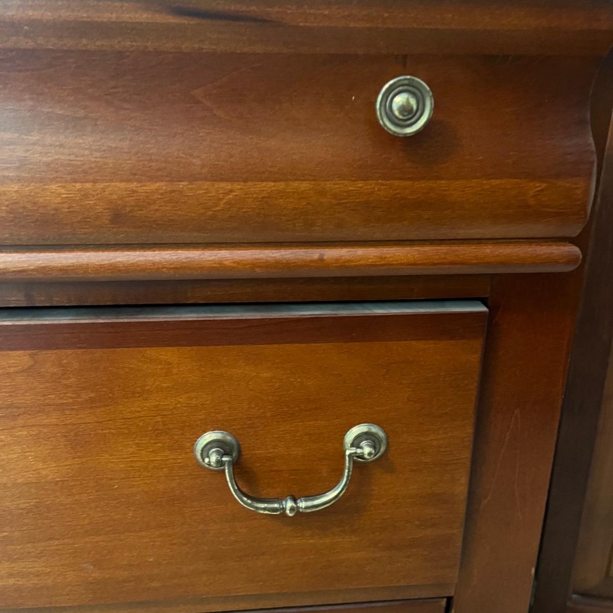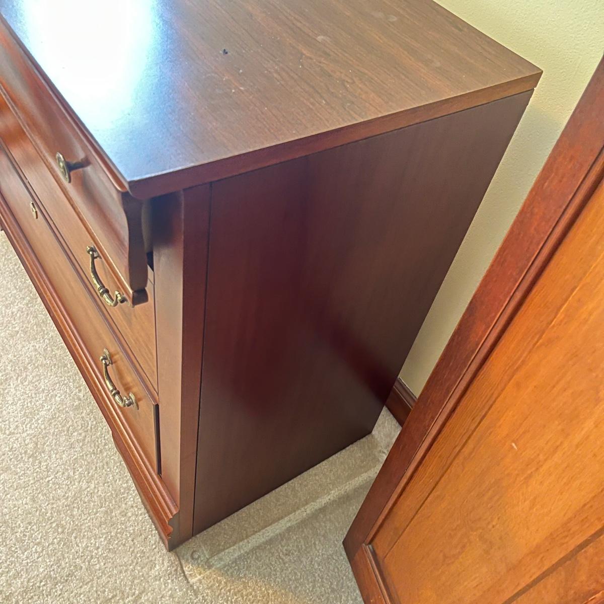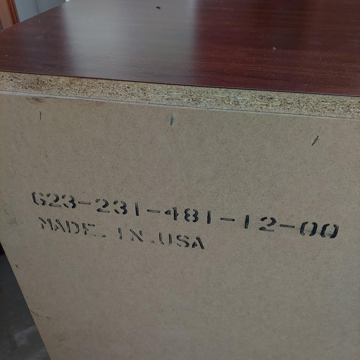 Lot includes a wooden three drawer chest of drawers that measures 18” x 40” x 30”H. Two bottom drawers have stains inside, see pictures. Keyholes are for decoration and do not function.