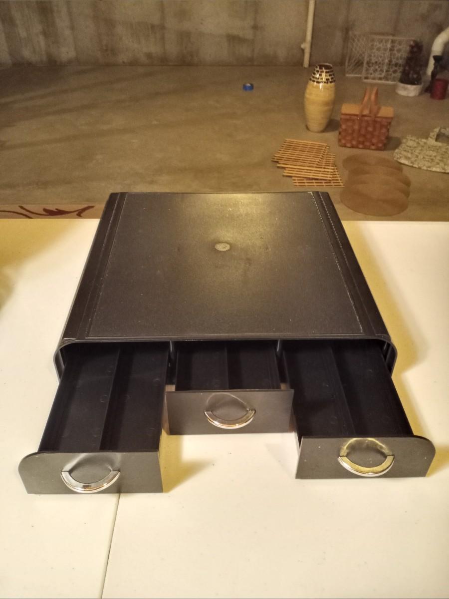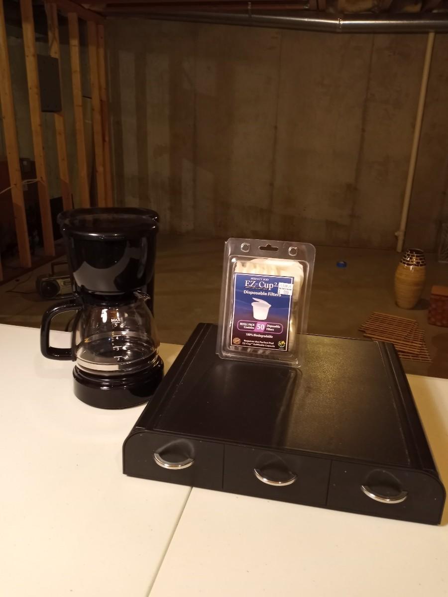 THREE DRAWER EZ CUP HOLDER-EZ CUP DISPOSABLE FILTERS-5 CUP COFFEE MAKER