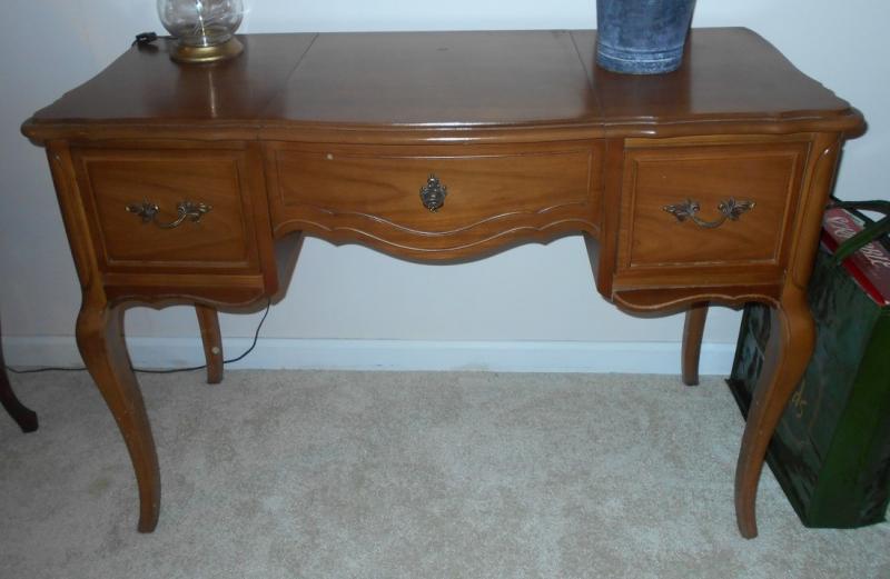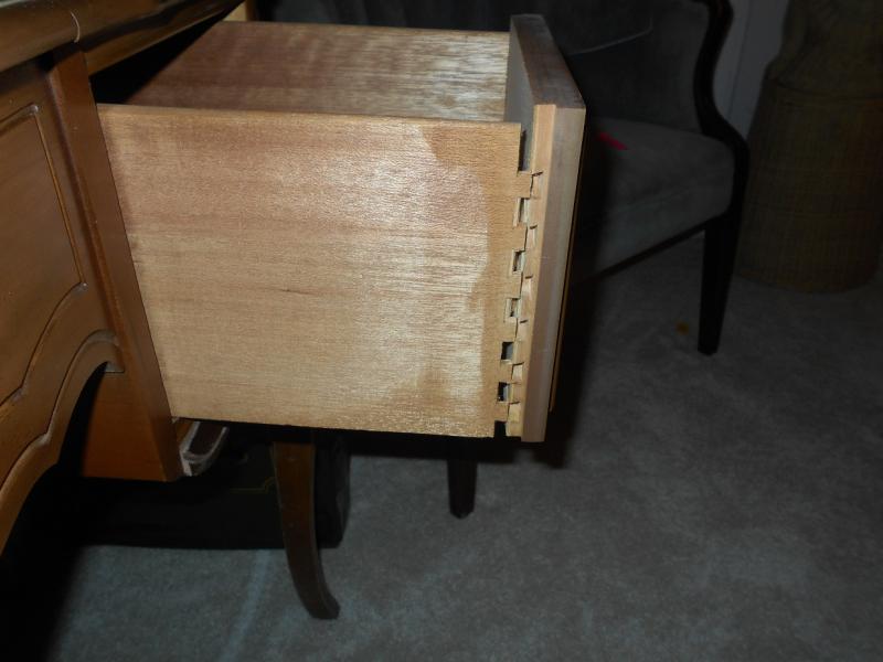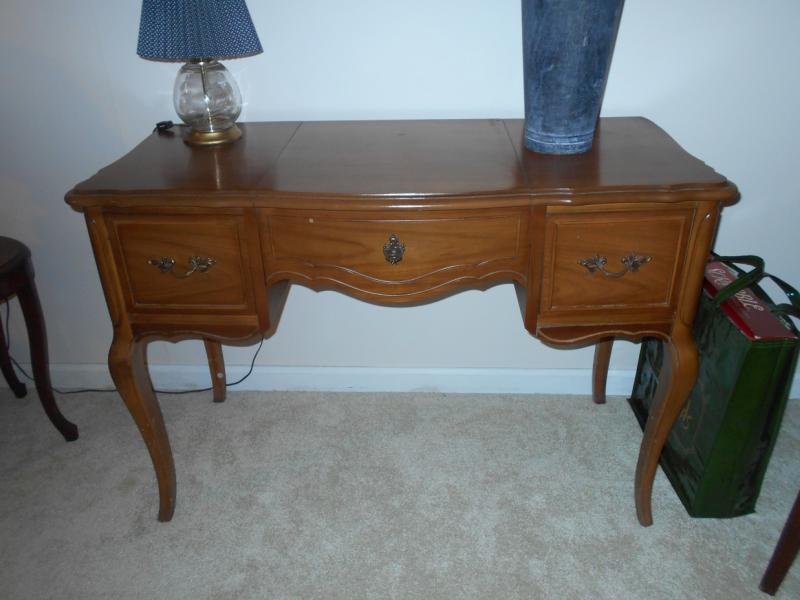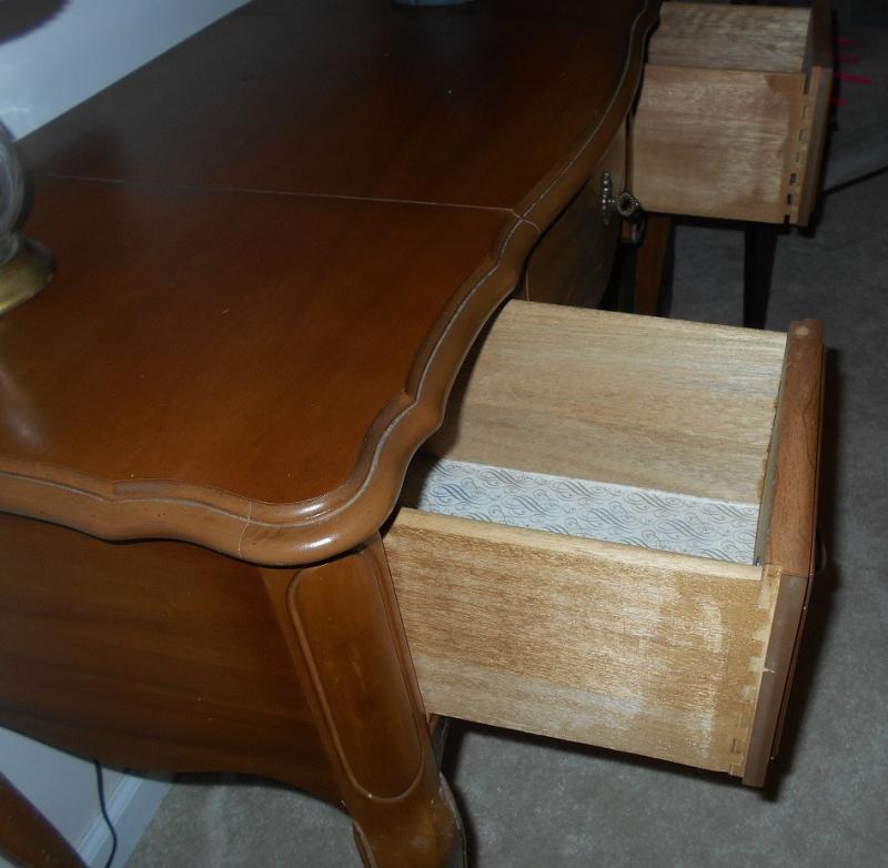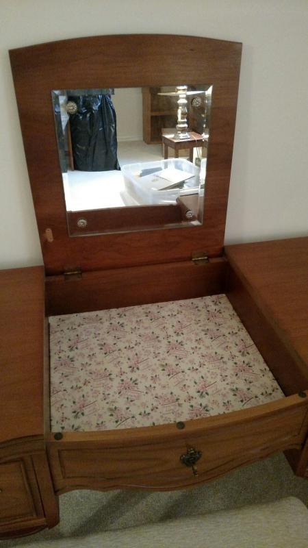 Two Drawer Vanity Table has some damage to one drawer as shown.