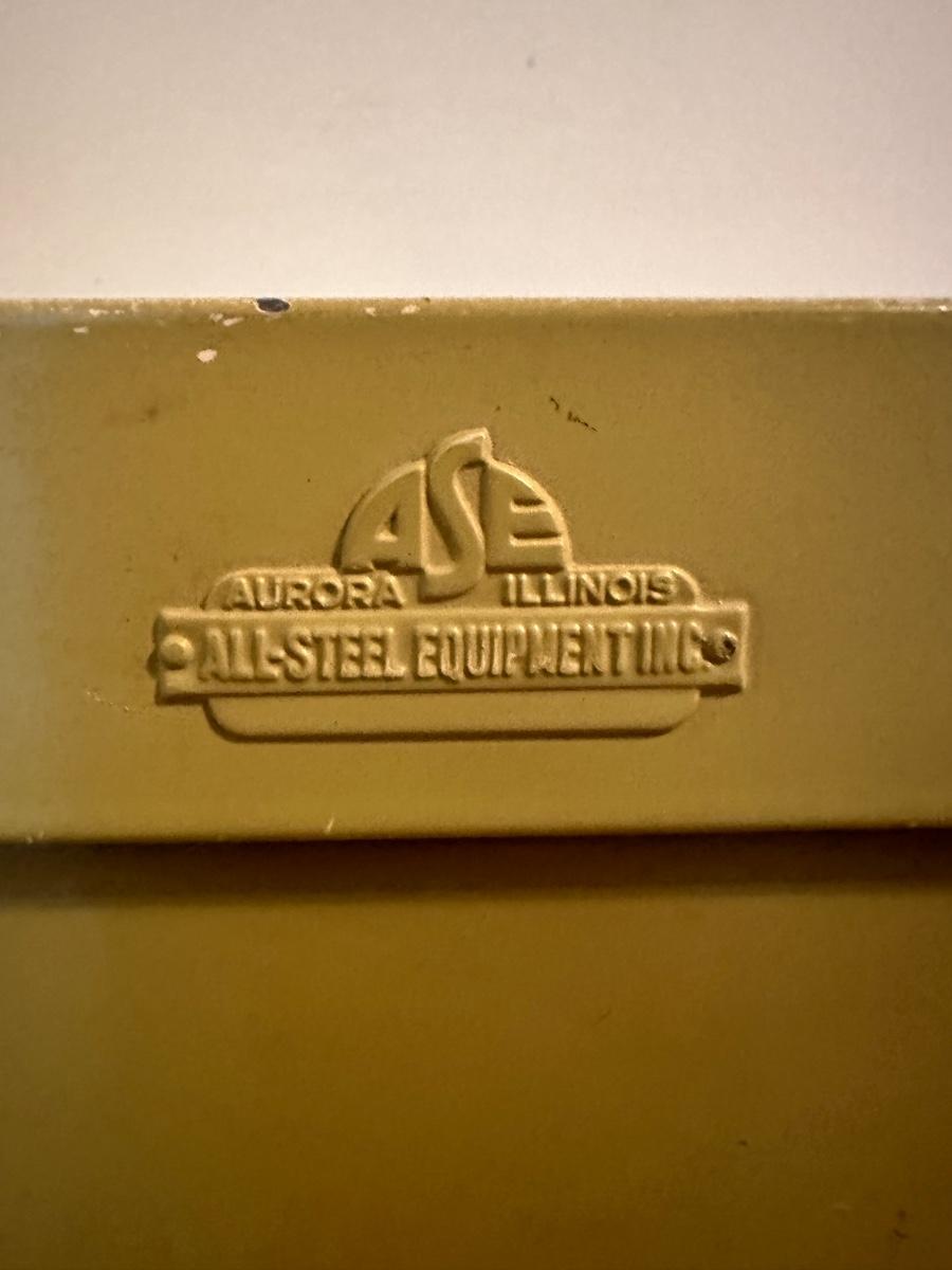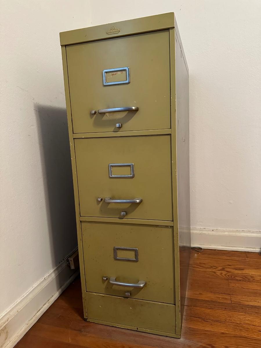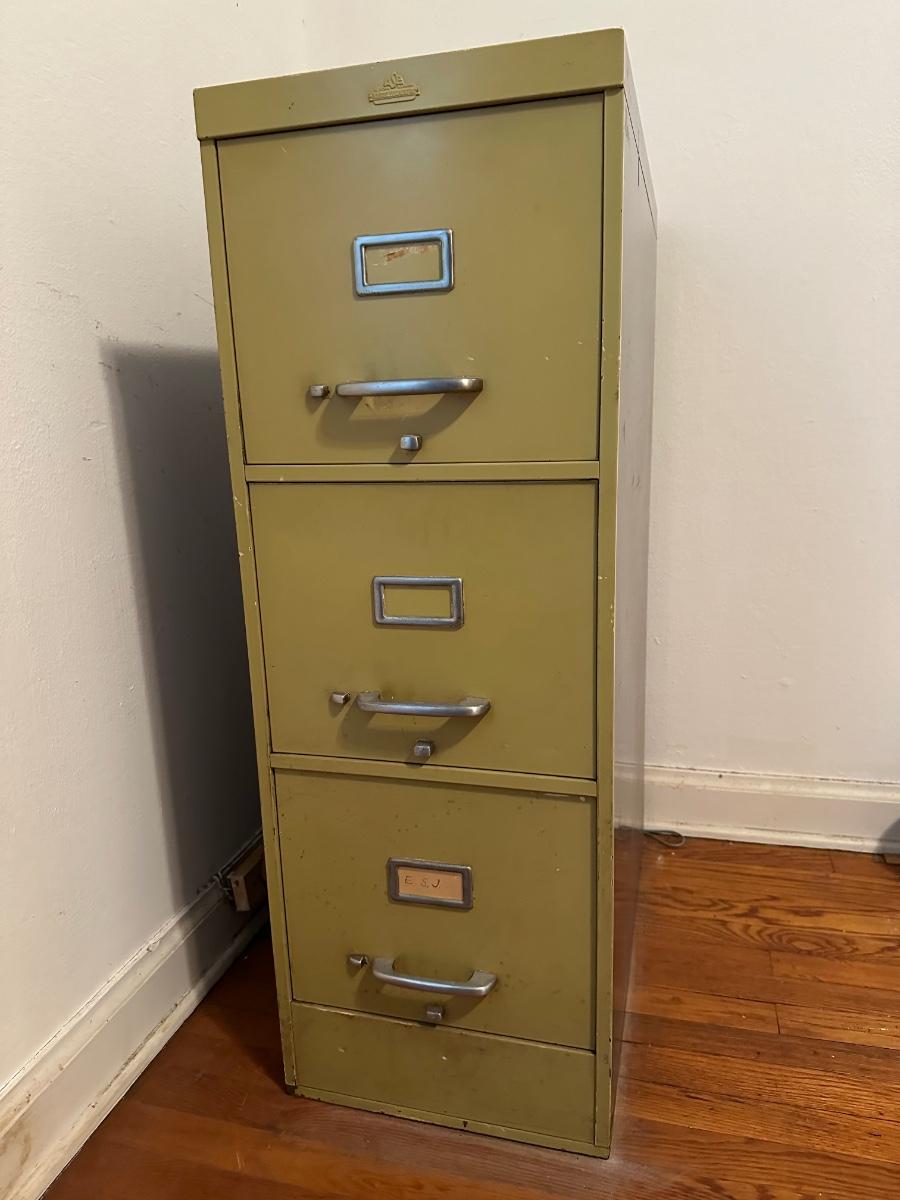 All steel equipment three drawer file cabinet