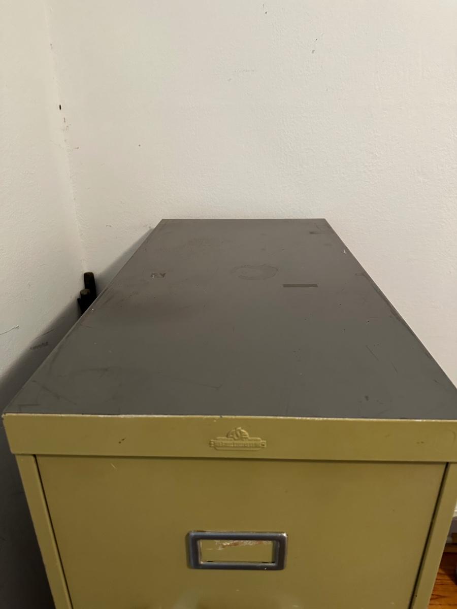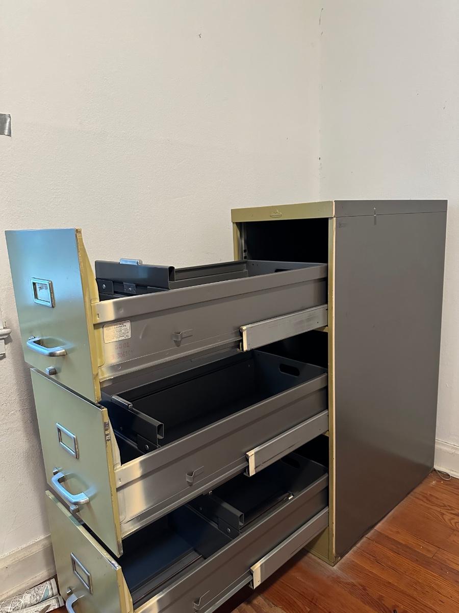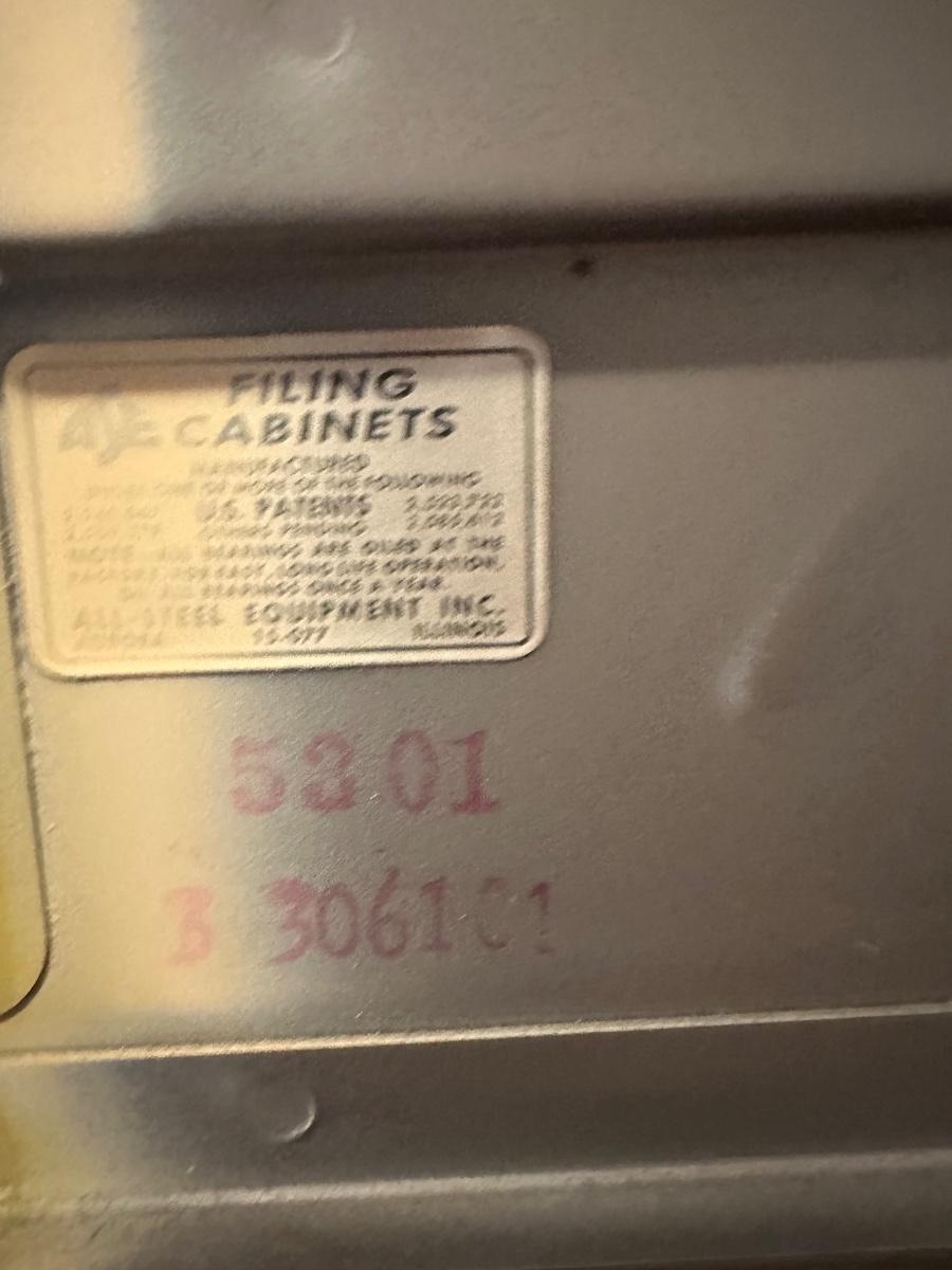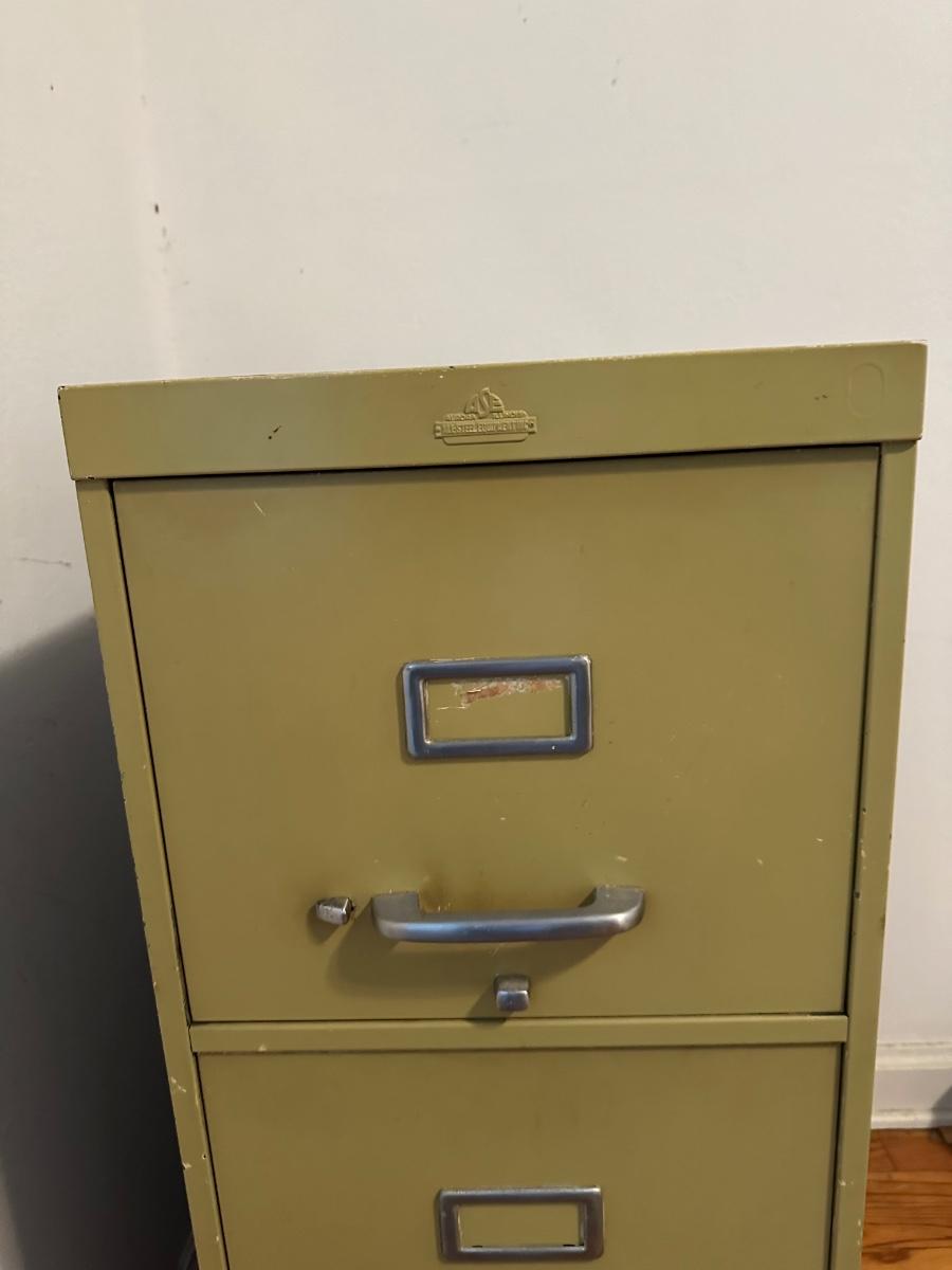 All steel equipment three drawer file cabinet