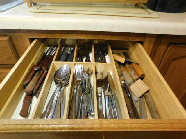 Three Drawers of Kitchen Utensils and Flatware (See all Pics)