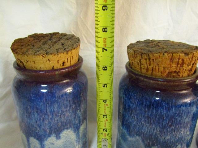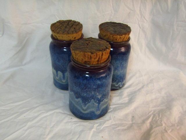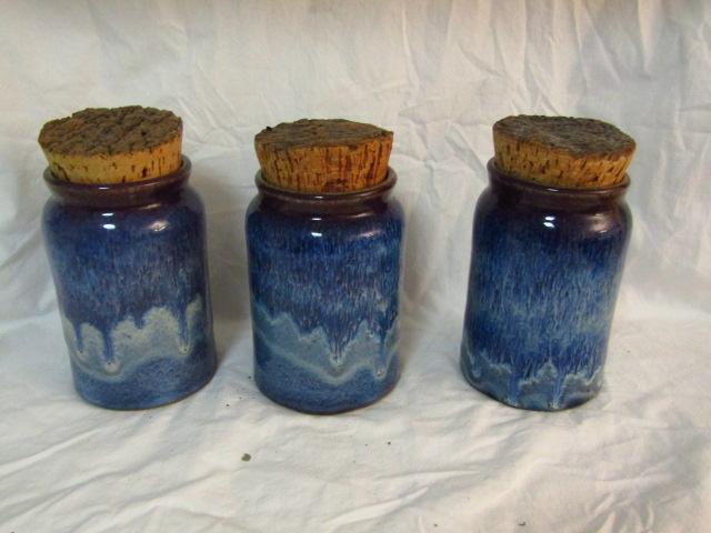 Three Drip Glaze Pottery Canisters (With Corks) by Ralph Pardington