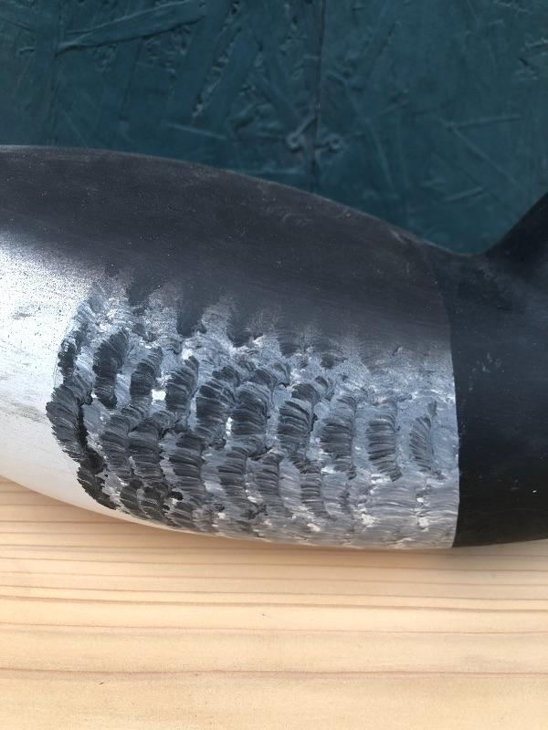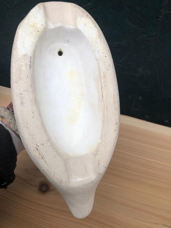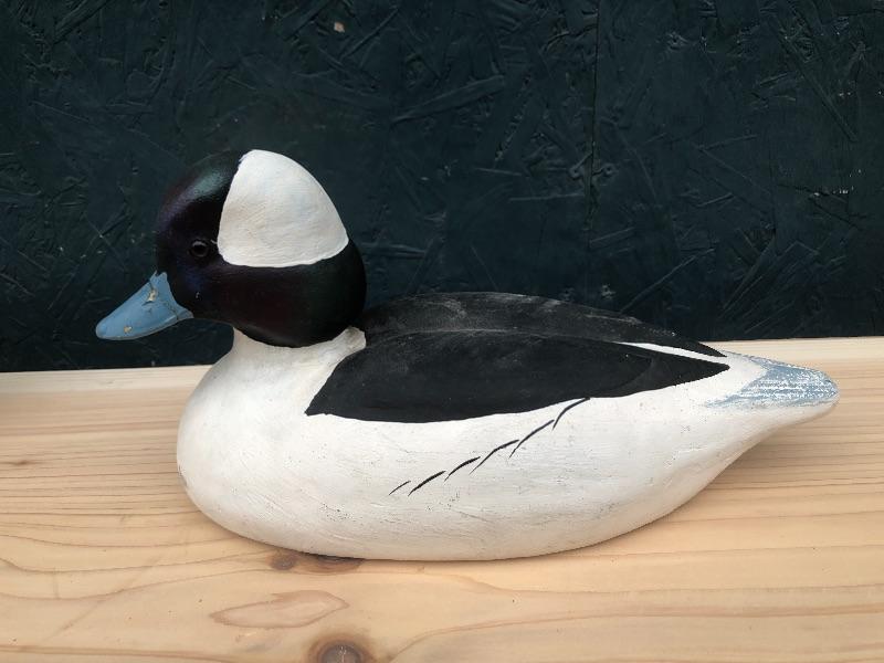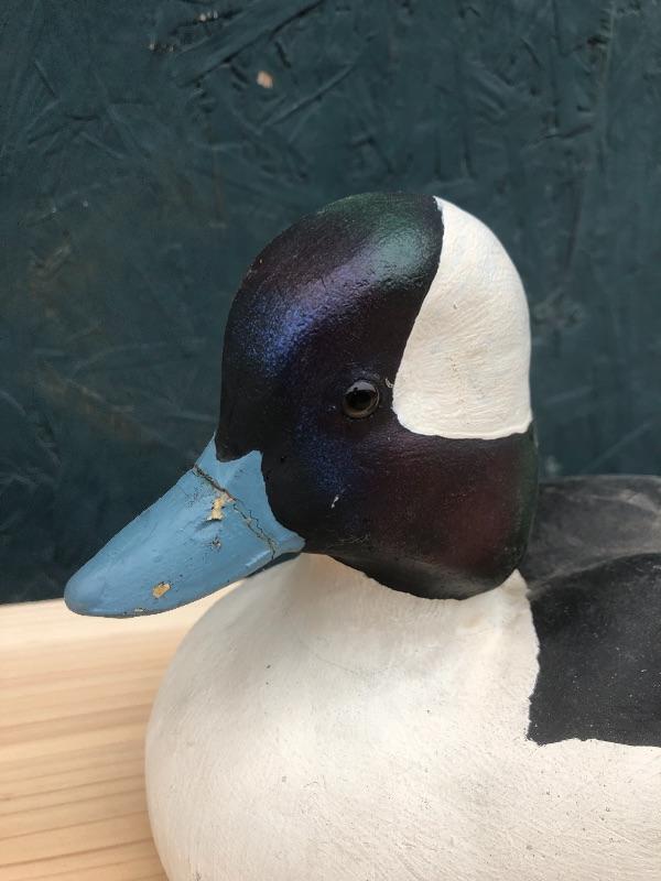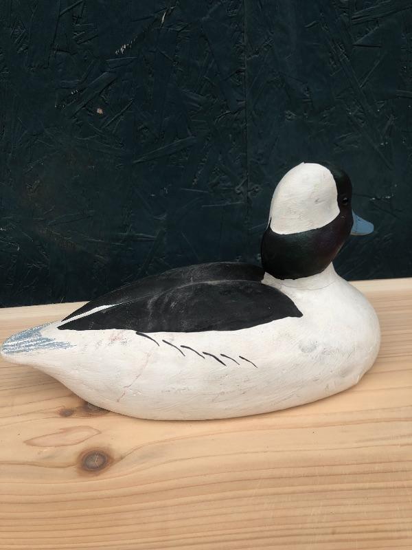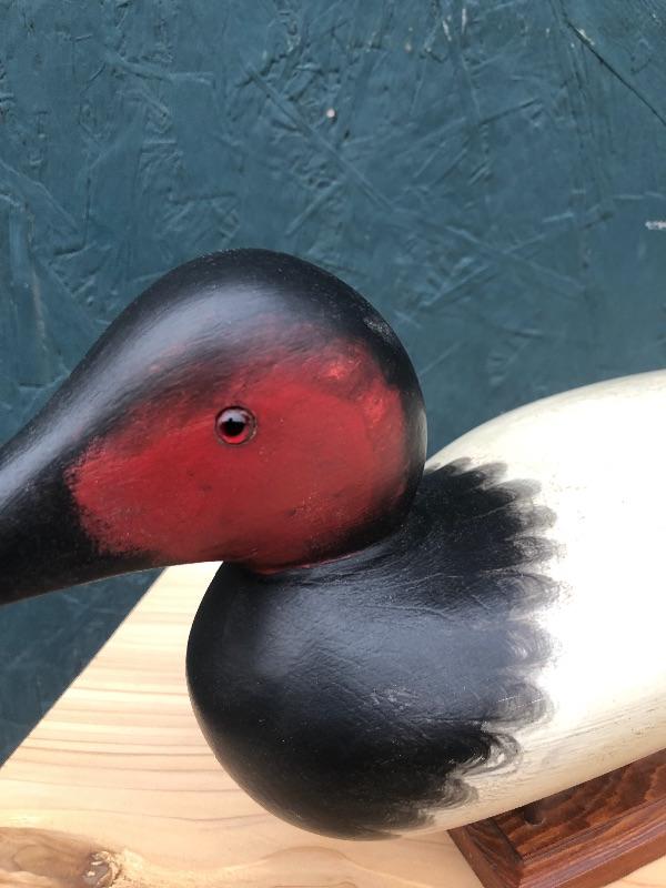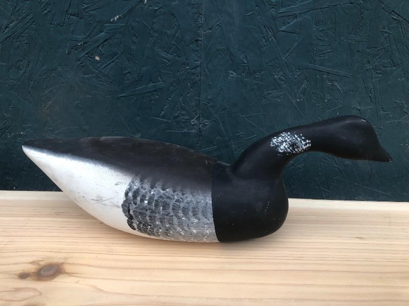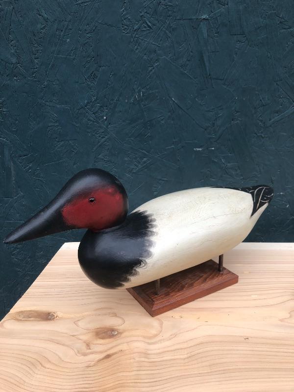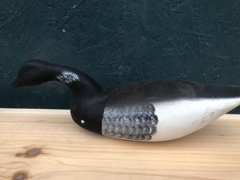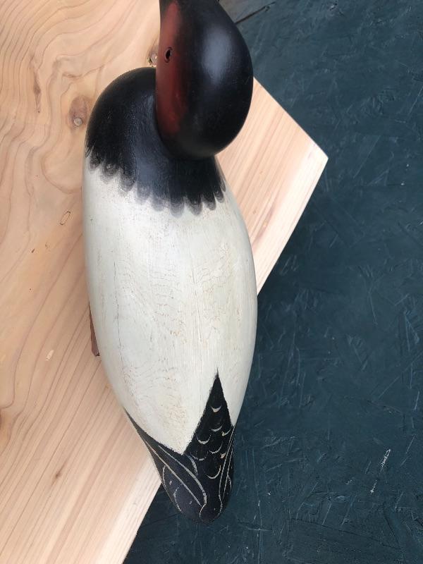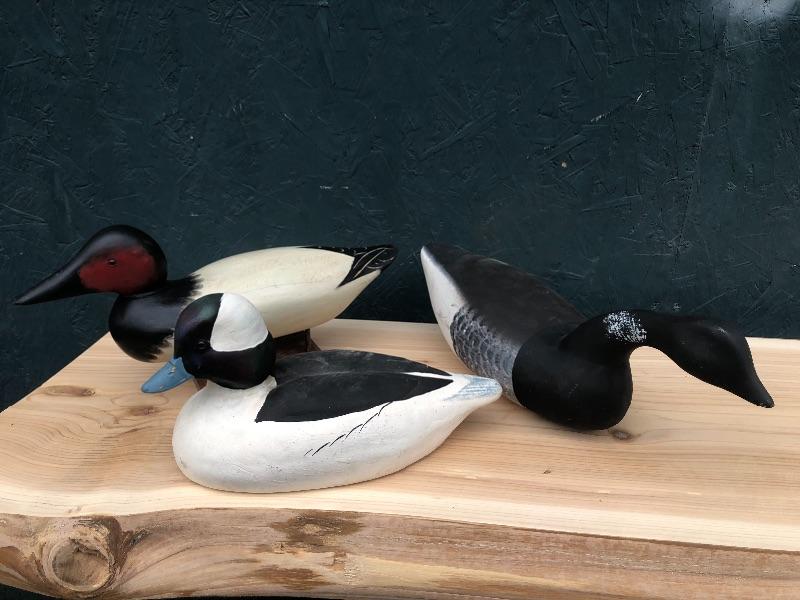 The duck decoy with stand is 17"L (made of wood), the largest decoy is 20"L (made of wood) and the smallest is 14"L (made of foam).