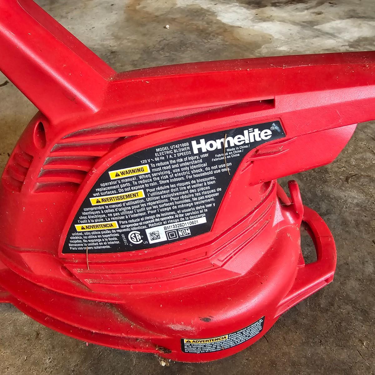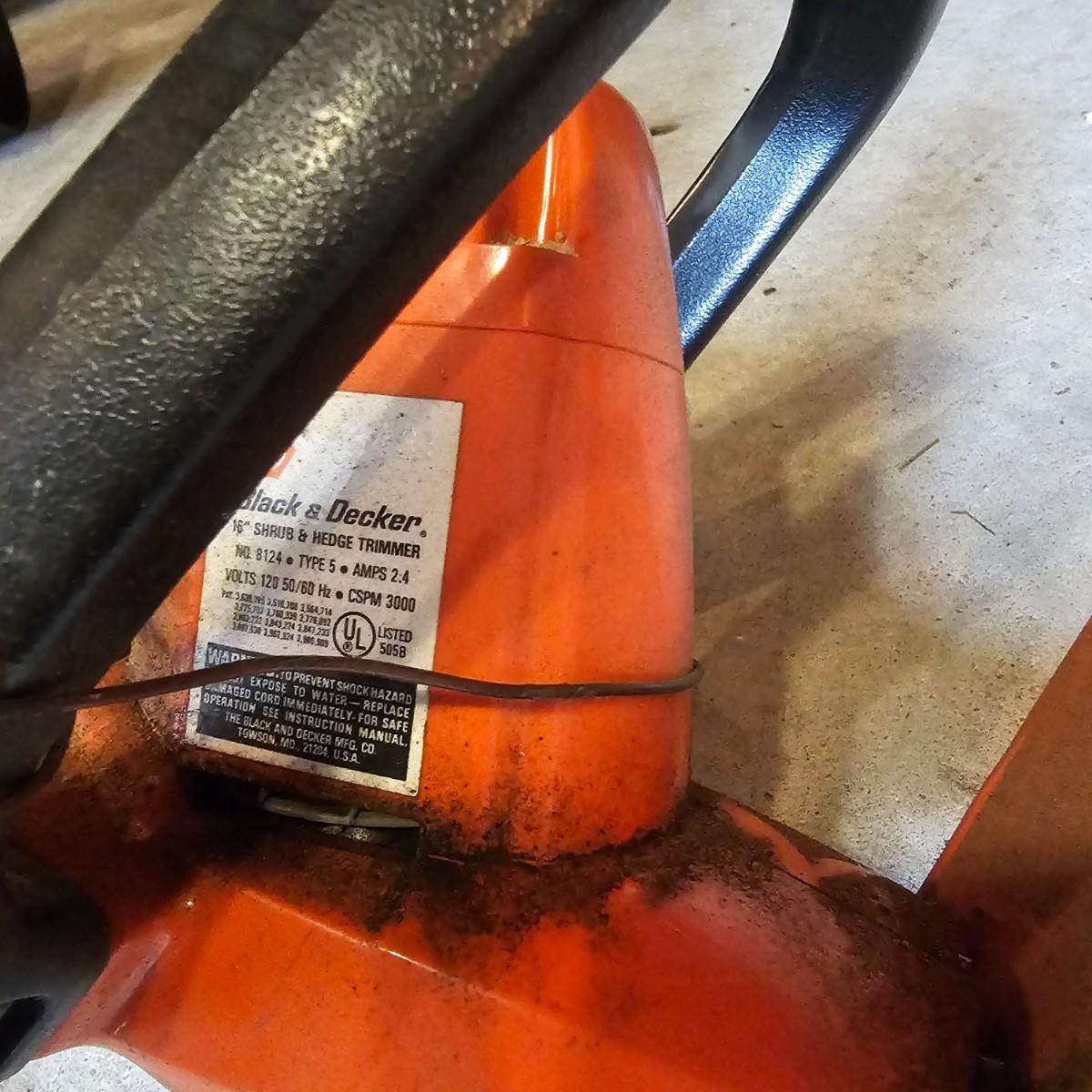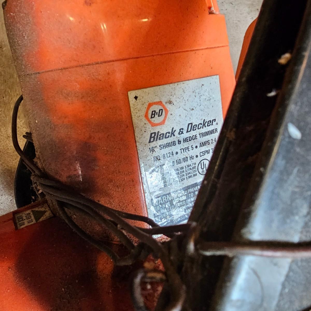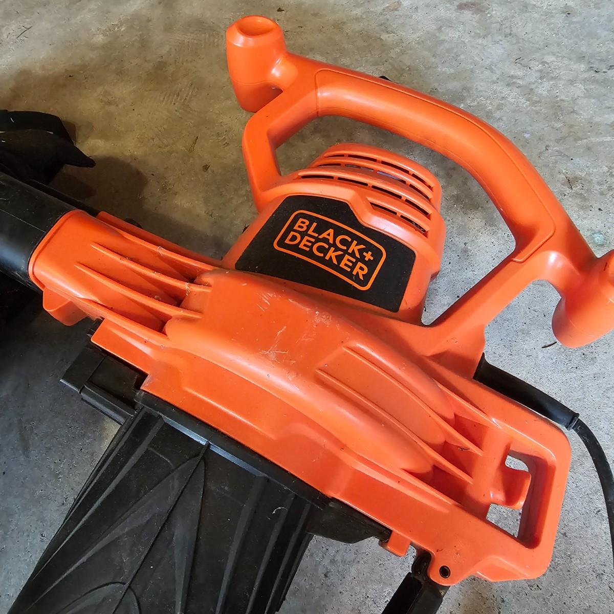 Two blowers and a hedge trimmer make up this lot. Small red Homelite blower is two speed, measures 6" x 29" long. Black & Decker hedge trimmer has 16" blade, measures 7" x 35" long. Handle has had some repair. Large unit is also Black & Decker and is a combo blower/vacuum, interchanging pieces and a mulching bag. 18" x 43" long. All units powered on when plugged in. See photos for details. Local pickup only.