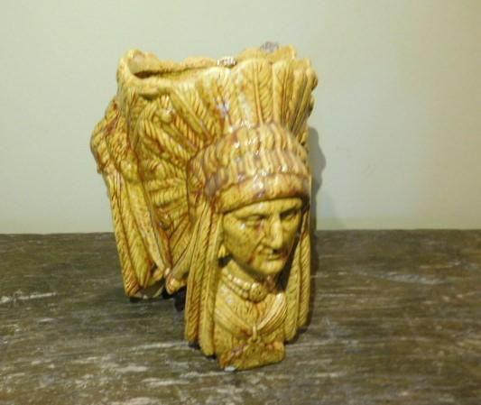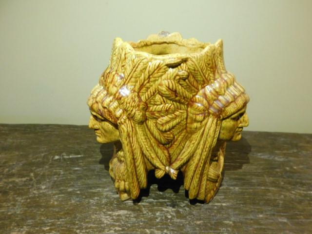 Three Face Native American Chief Ceramic Planter 8"x6" in good condition replica of the chalk ware tobacco jars
