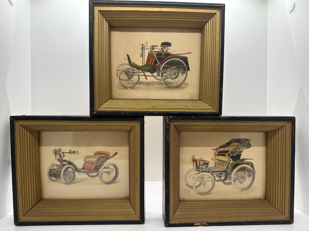 Three Framed Vintage Automobiles (3)