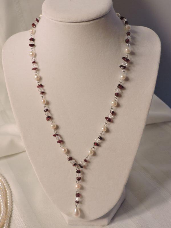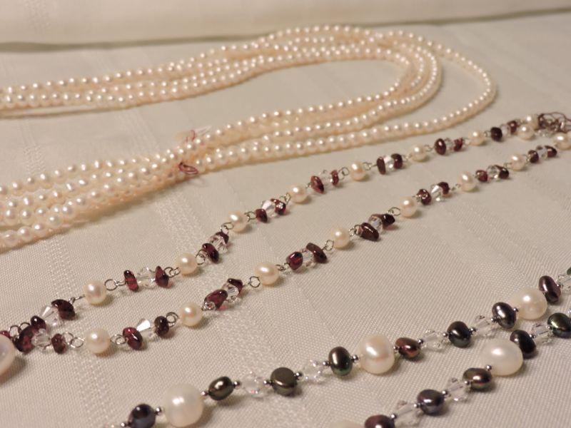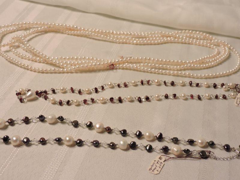 Sterling Silver, freshwater pearl and garnet; sterling silver, crystal, and freshwater pearls; and long rope of freshwater pearls. **Please read Terms and Conditions before placing a bid. Pick up is Sunday, September 15, 2019 from 11am to 4pm and Tuesday, September 17 from 4pm-7pm in Sicklerville. All sales are final. All sales are as is, where is. Please review all photos. Any props included in photos are not included in listing. All measurements are approximate.