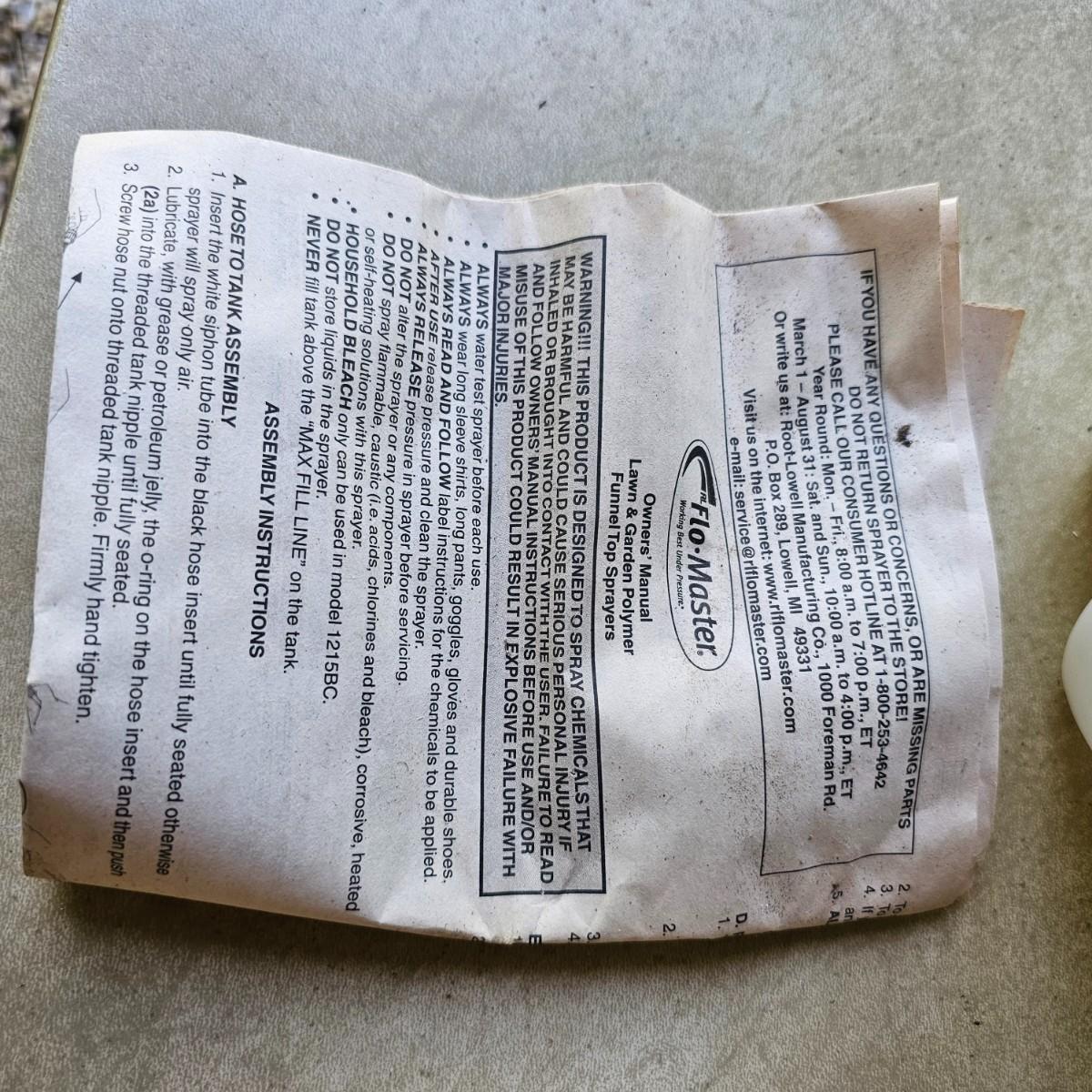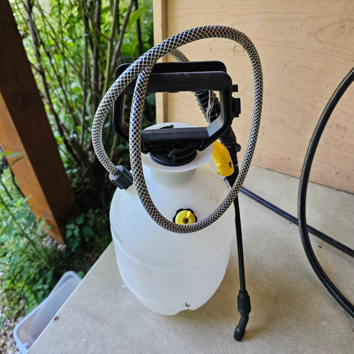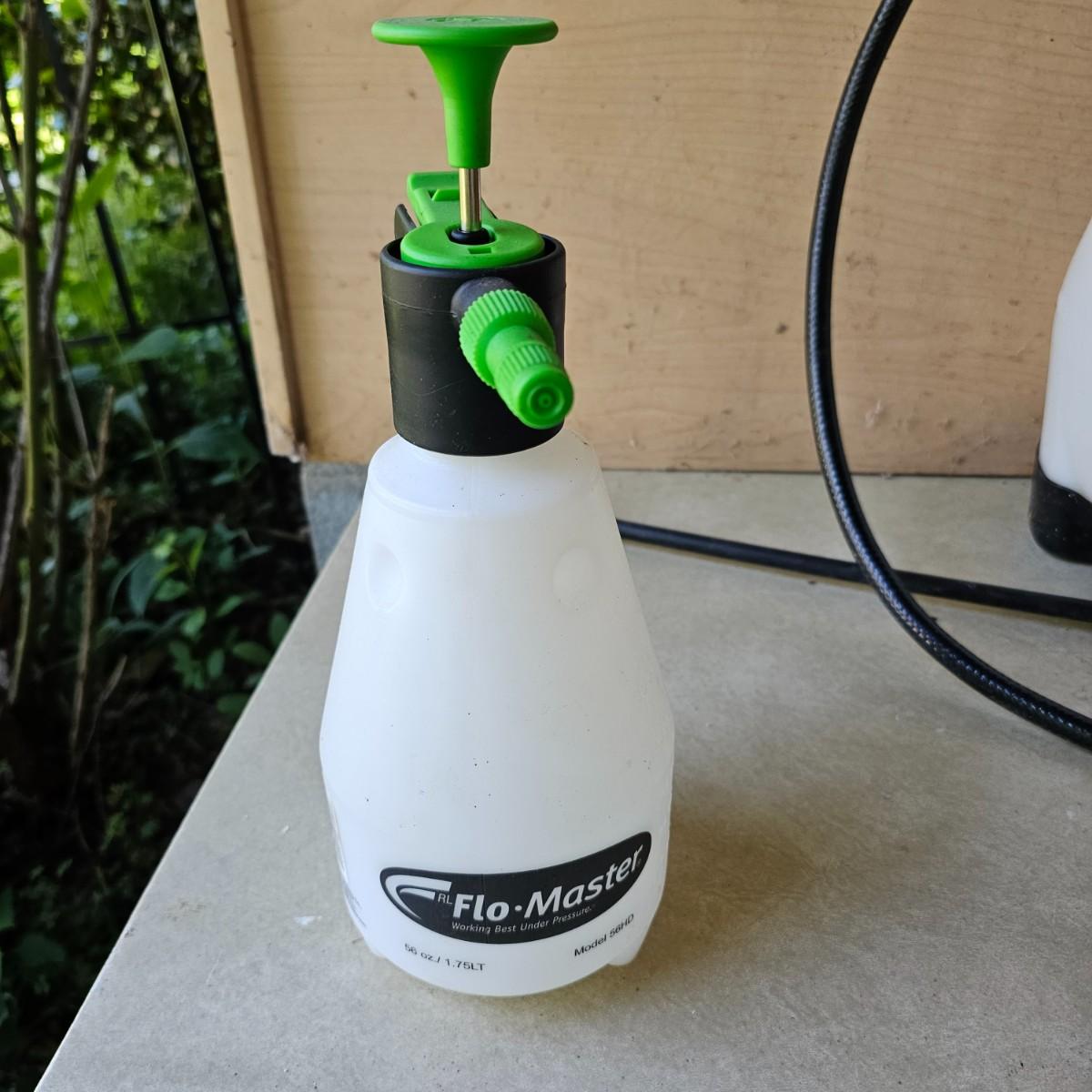 Three pump sprayers for garden use. Flo-Master & Husqvarna brands. Capacity from 1.75 liter to approximately three gallon. Husky sprayer measures 9" x 22"H. See photos for details. Local pickup only.