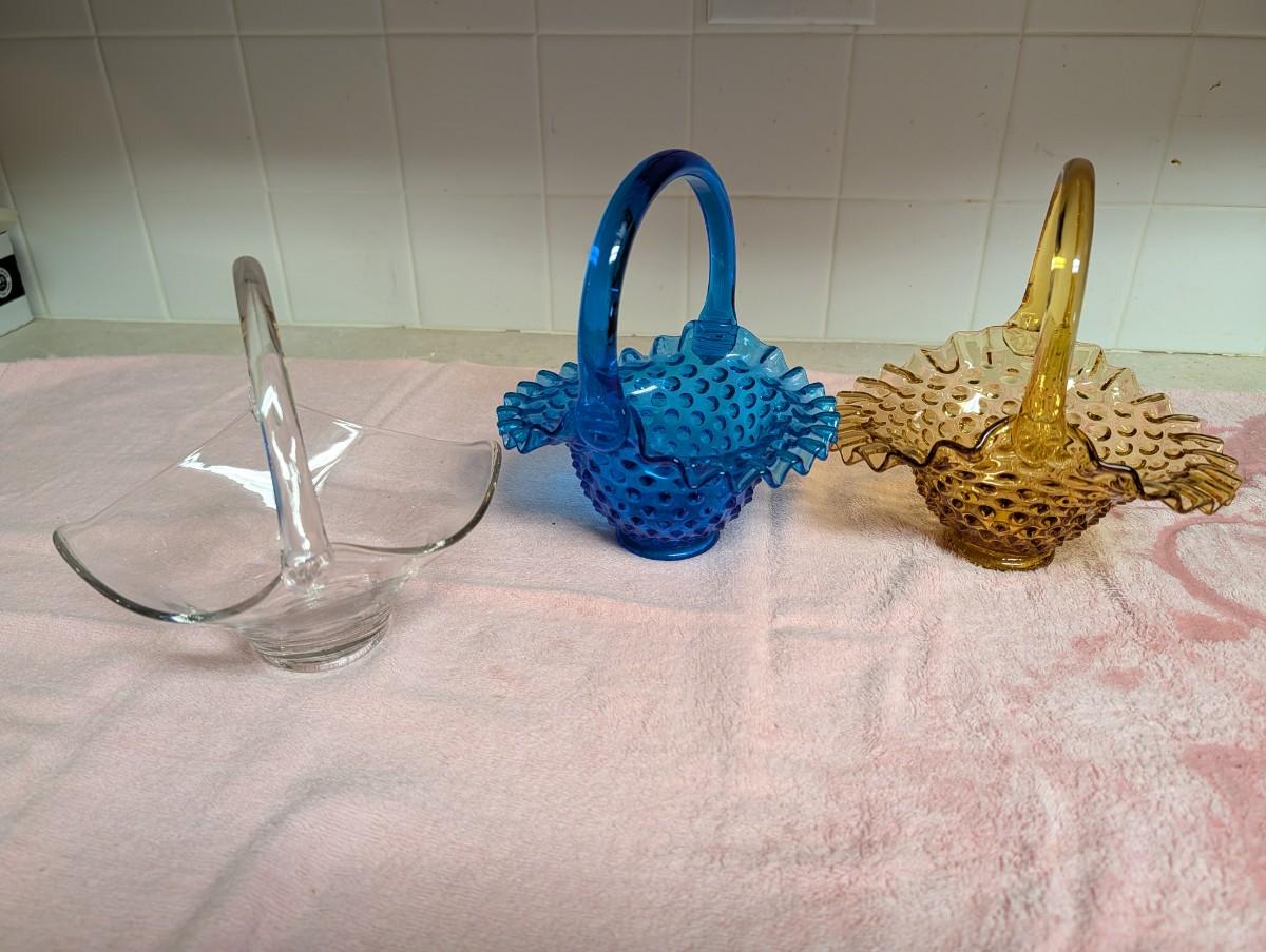 Three Glass Art Baskets