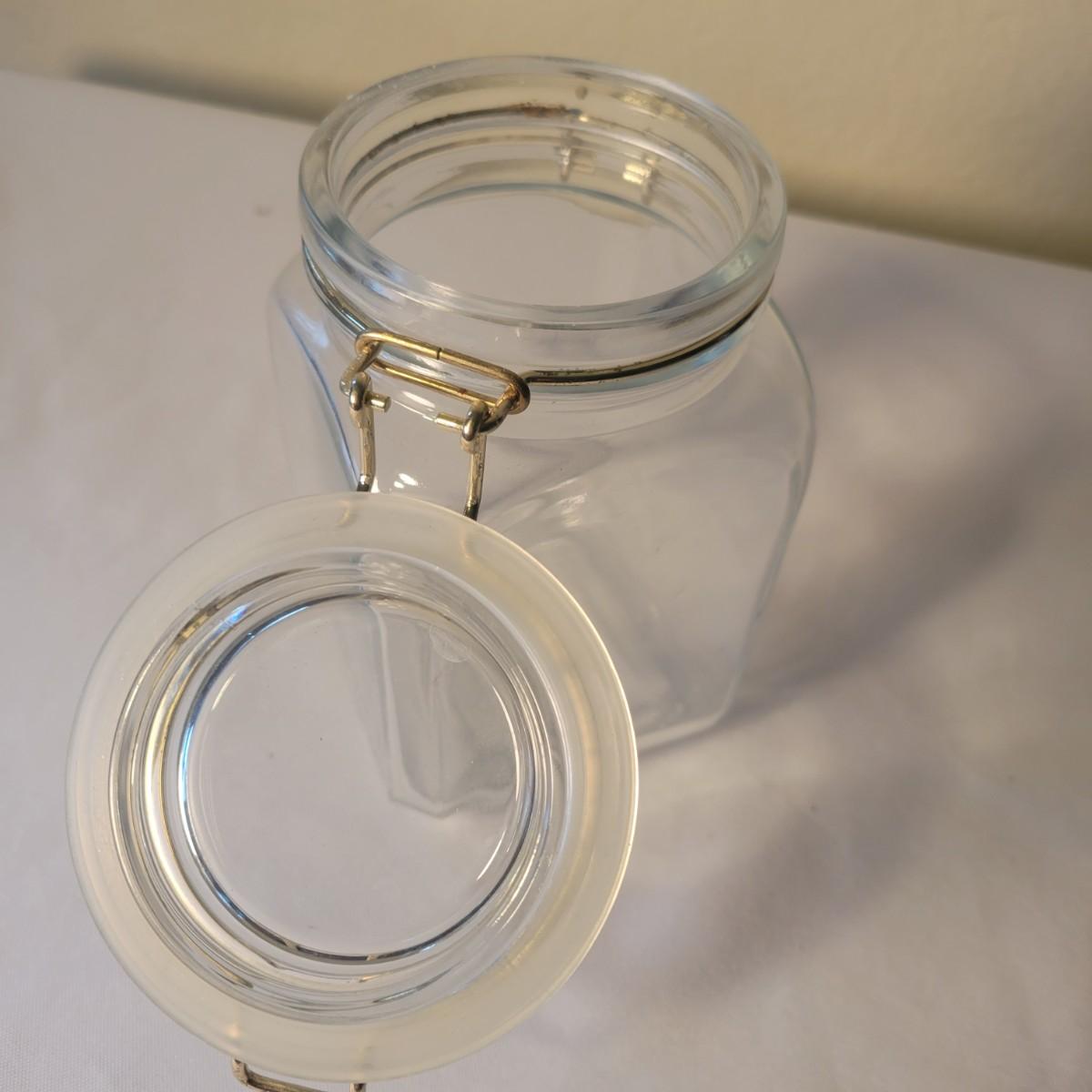 Three Glass Clasp Lidded Jars (K-DW)
