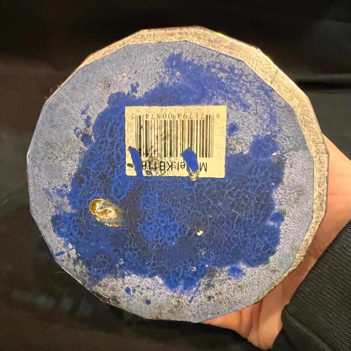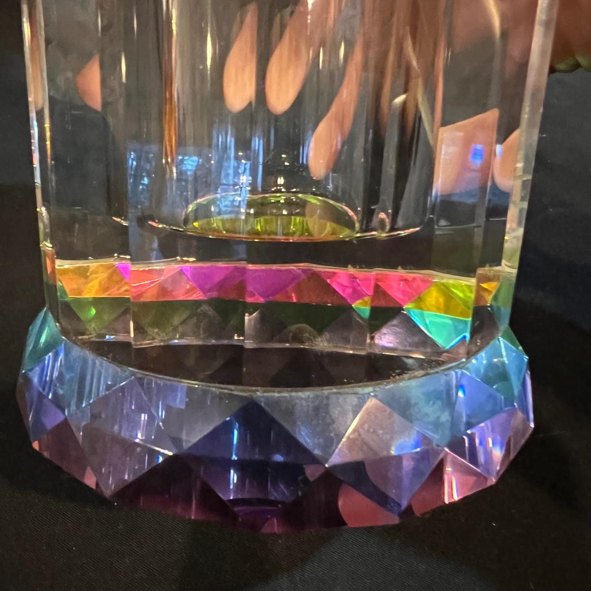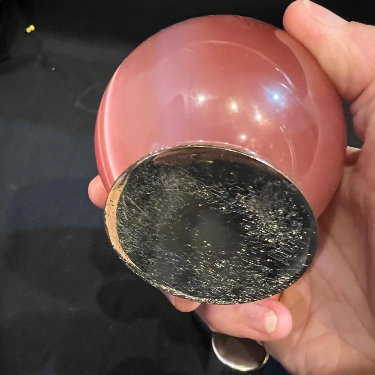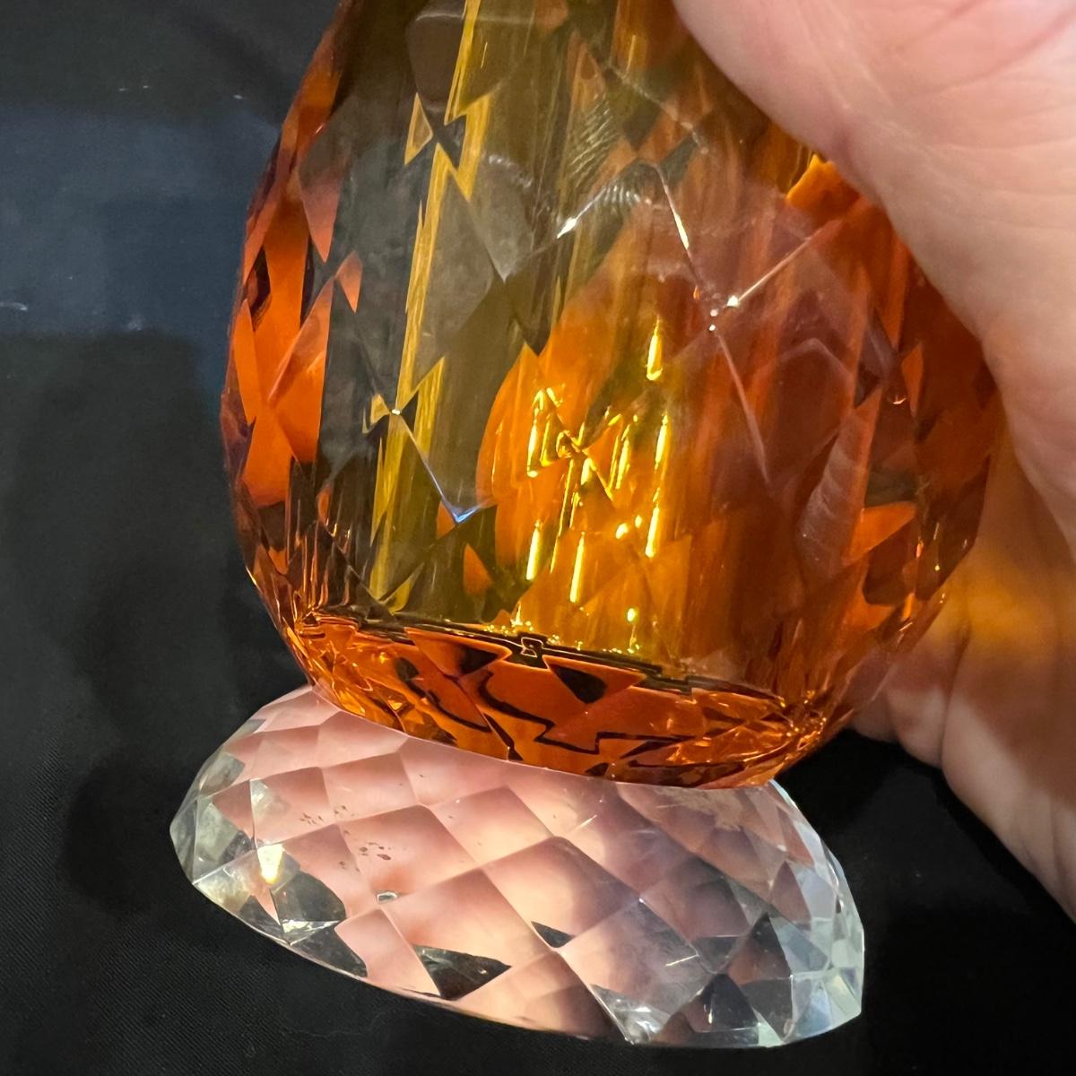 Three very pretty glass fragrance lamps. The largest has a rainbow of colors and is bell shaped. The mid sized lamp is amber and the smallest is an attractive rose colored glass with a pearlescent sheen. None have wicks.