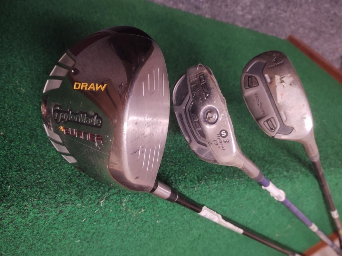 All have light wear. Left to right: 4 hybrid, 3 hybrid, and a 9.5º driver.