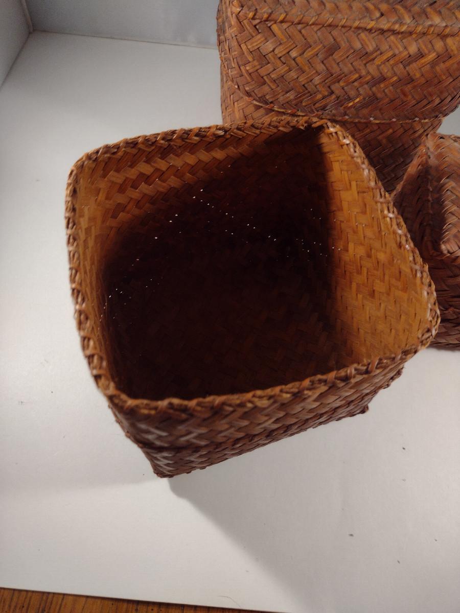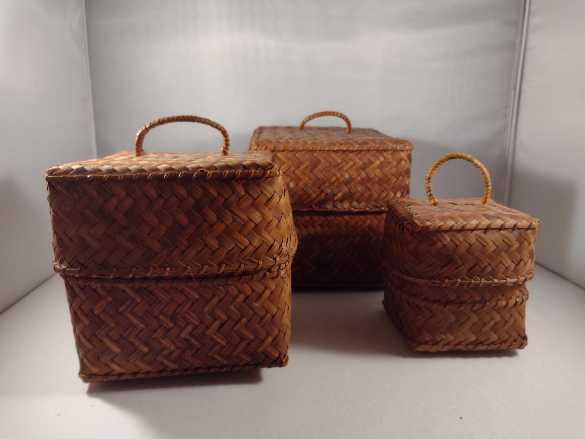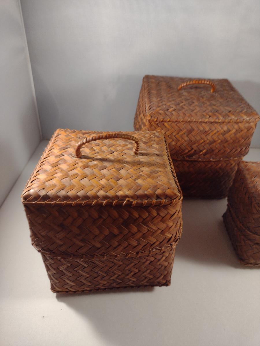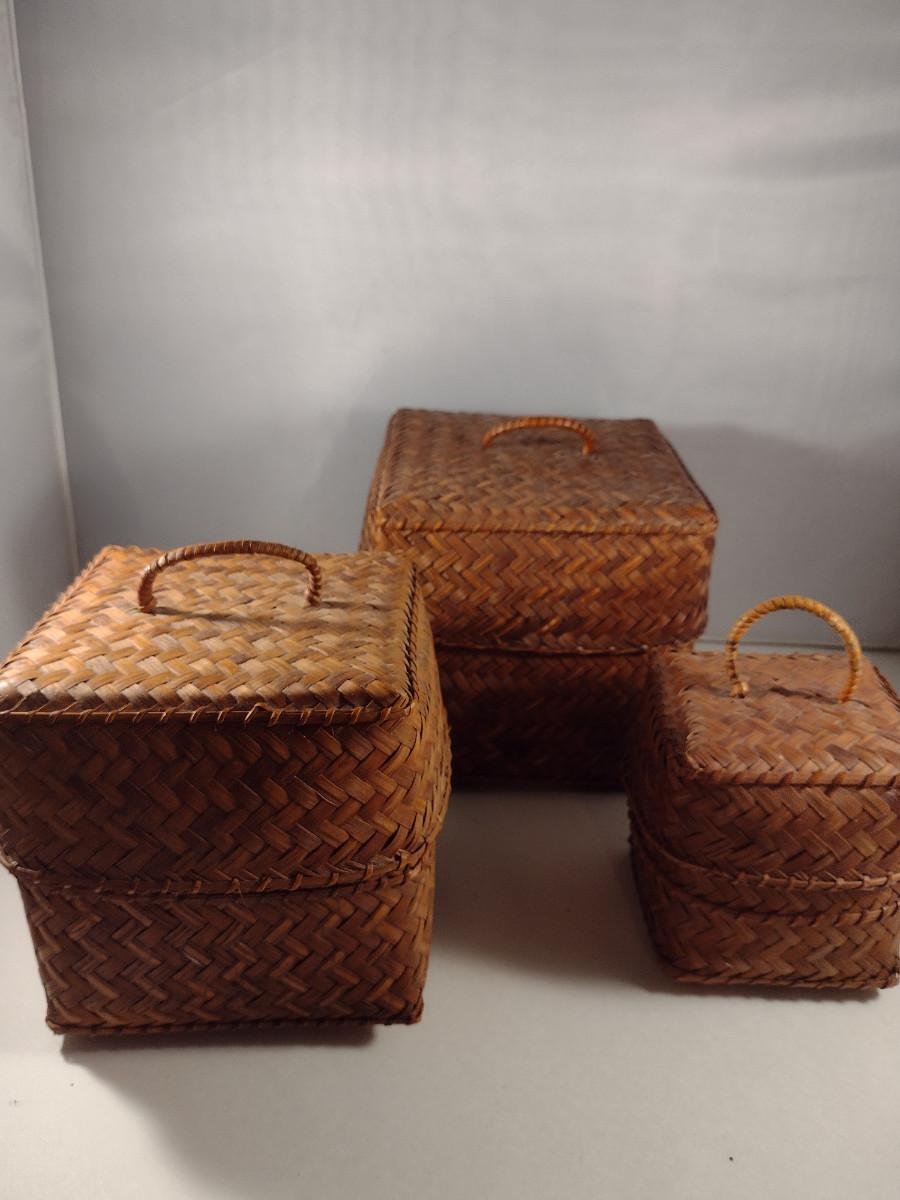Three Graduated Woven Baskets with Lids