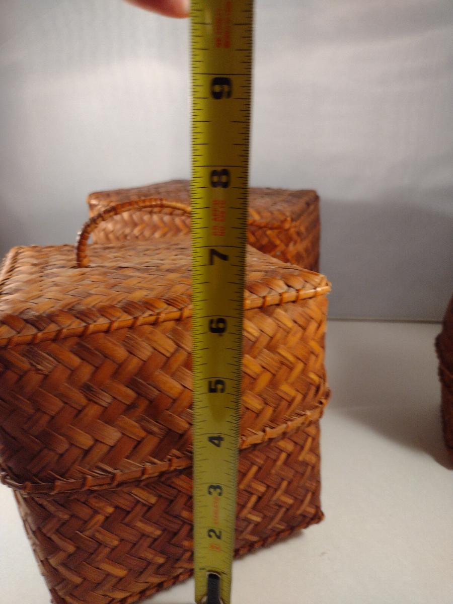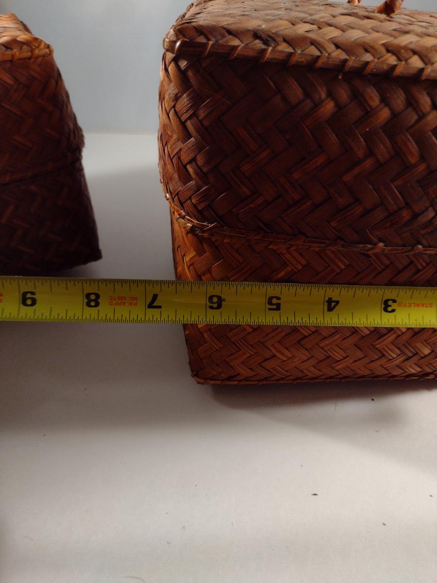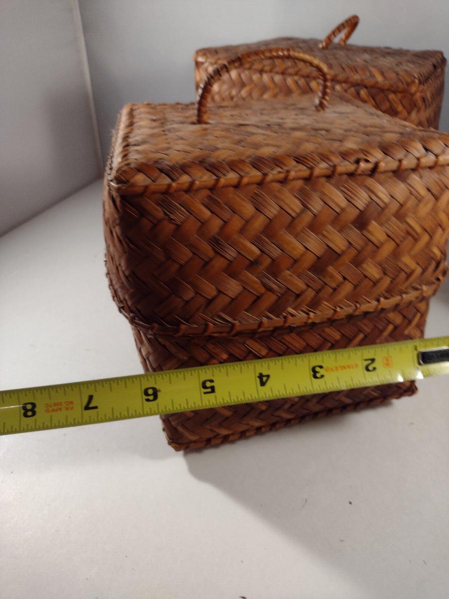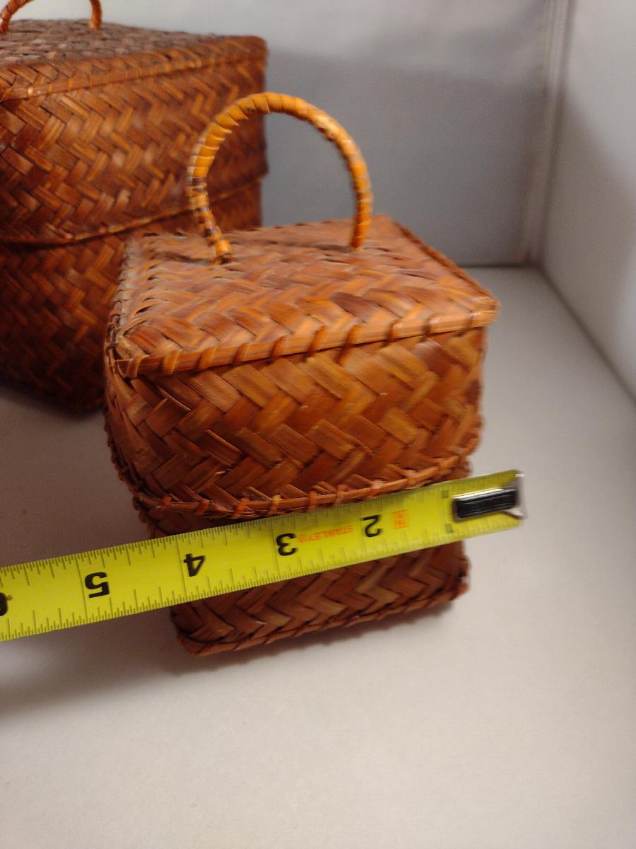 Three Graduated Woven Baskets with Lids