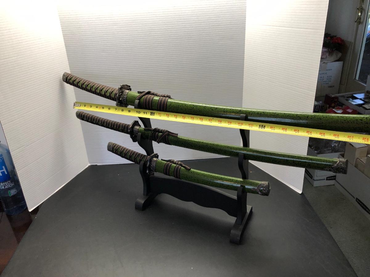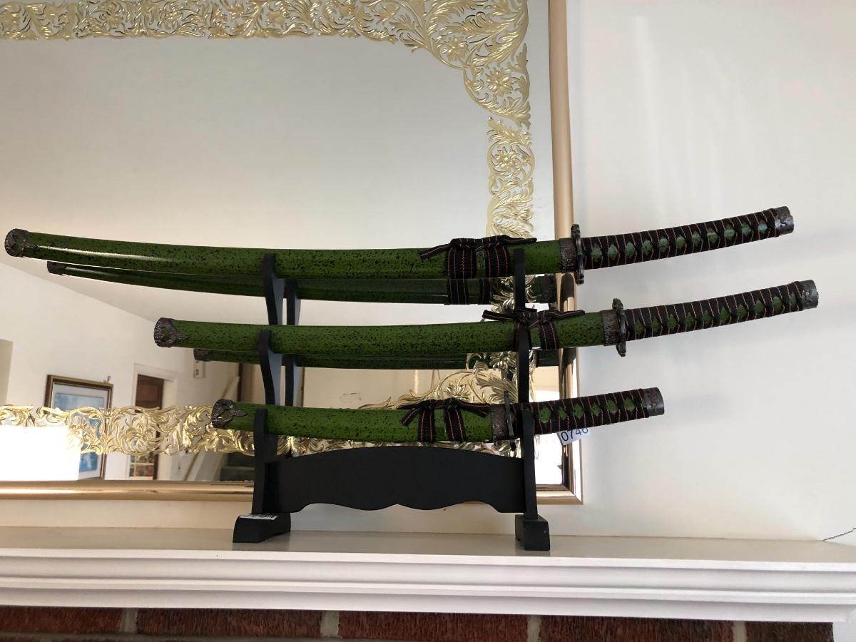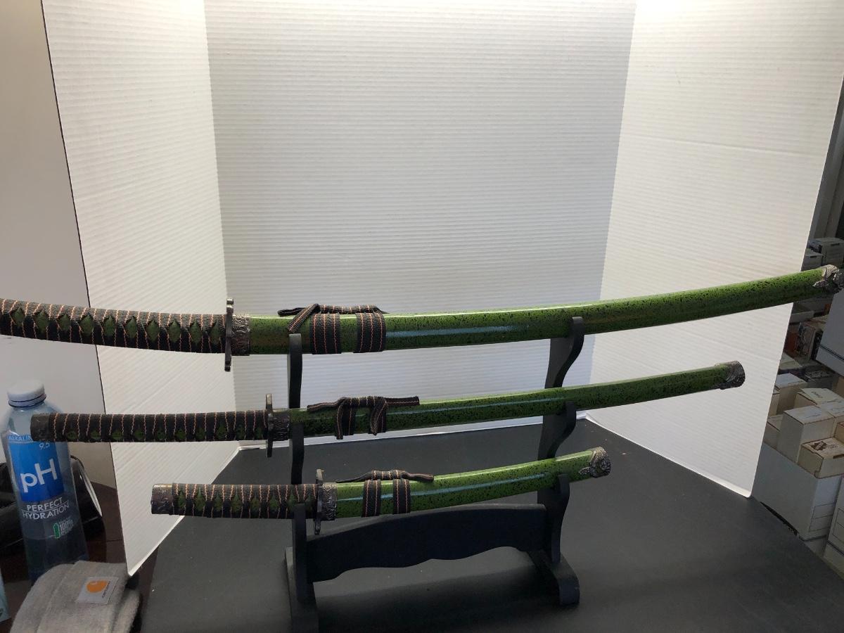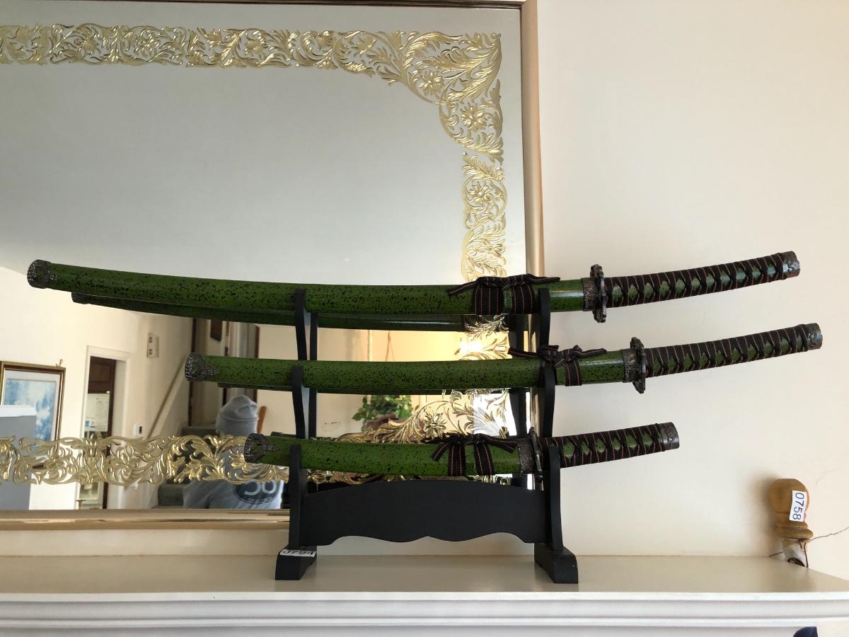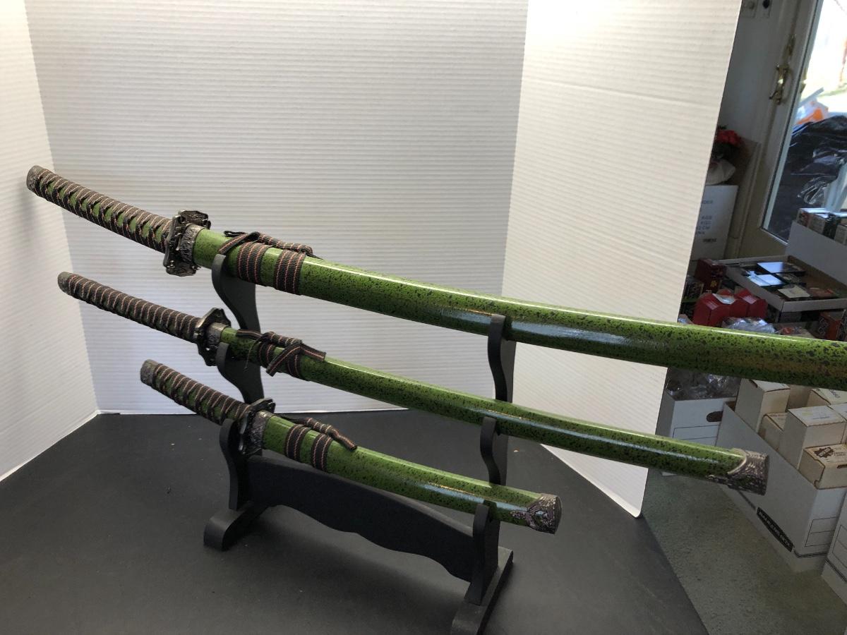 Three Samurai Swords w/Stand (Green) Lot #0794