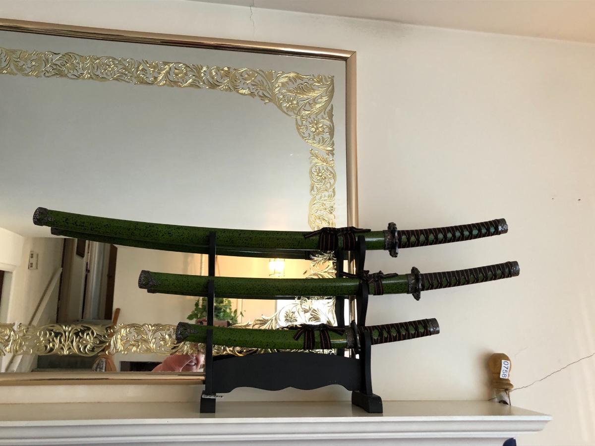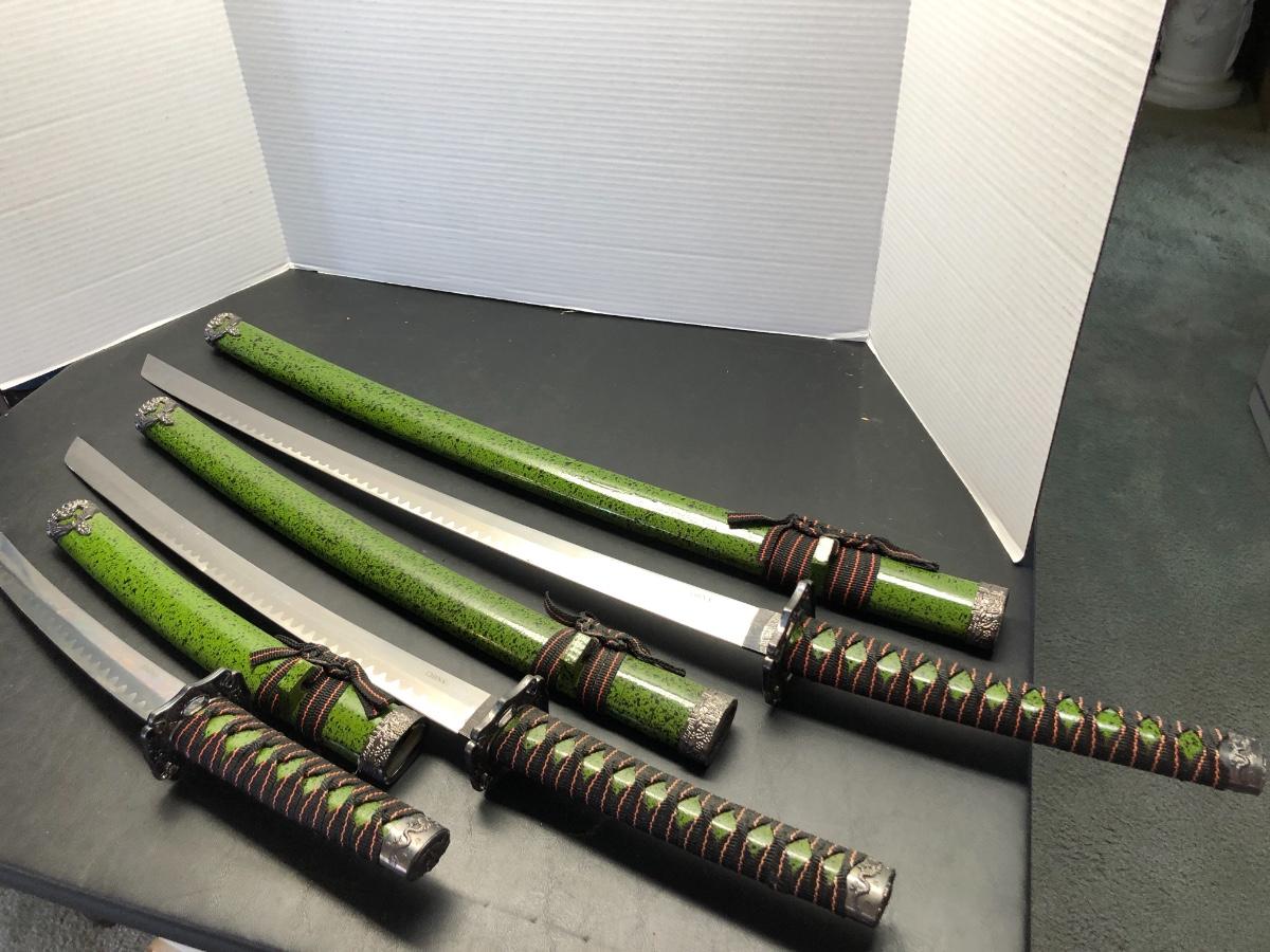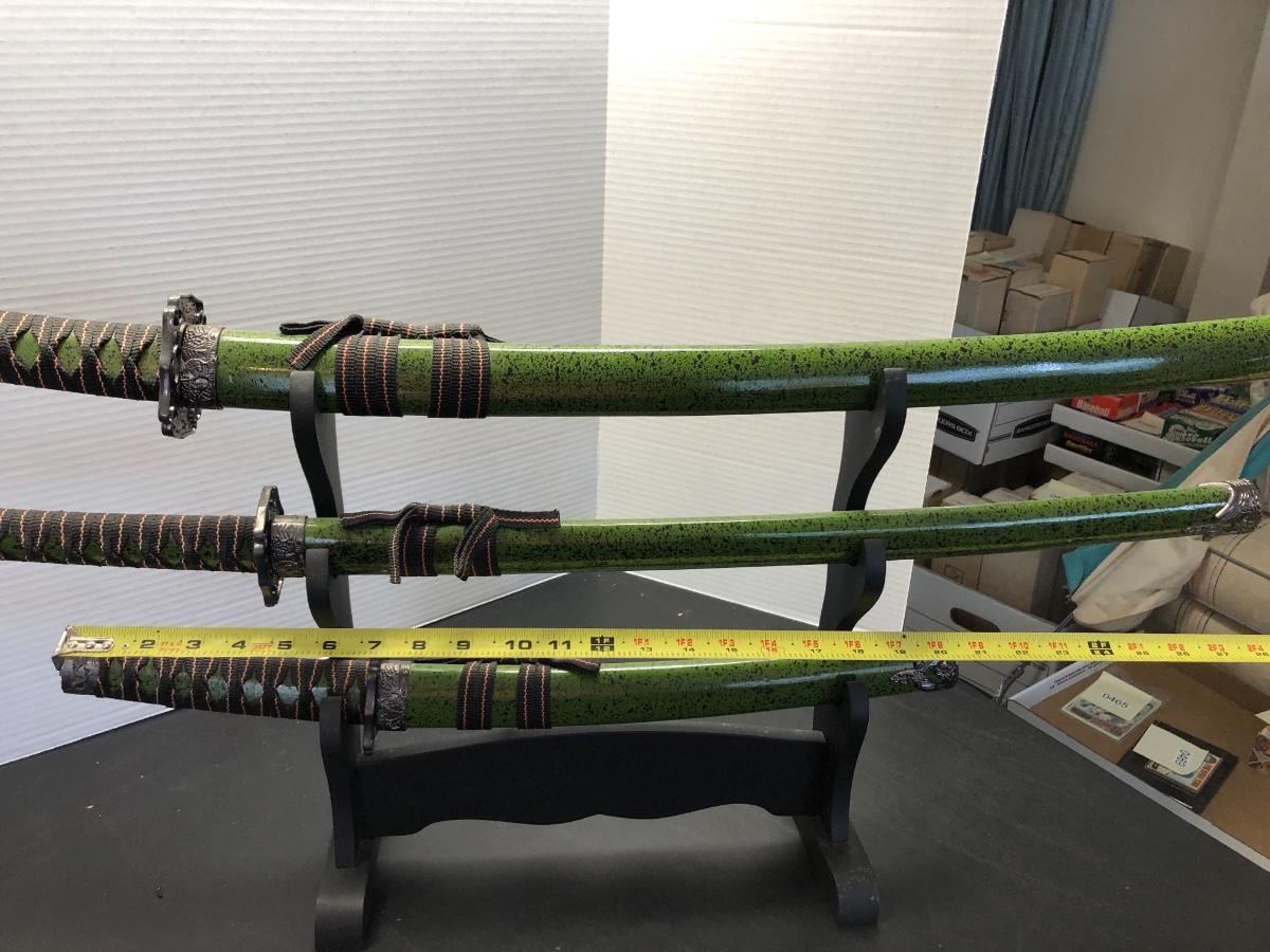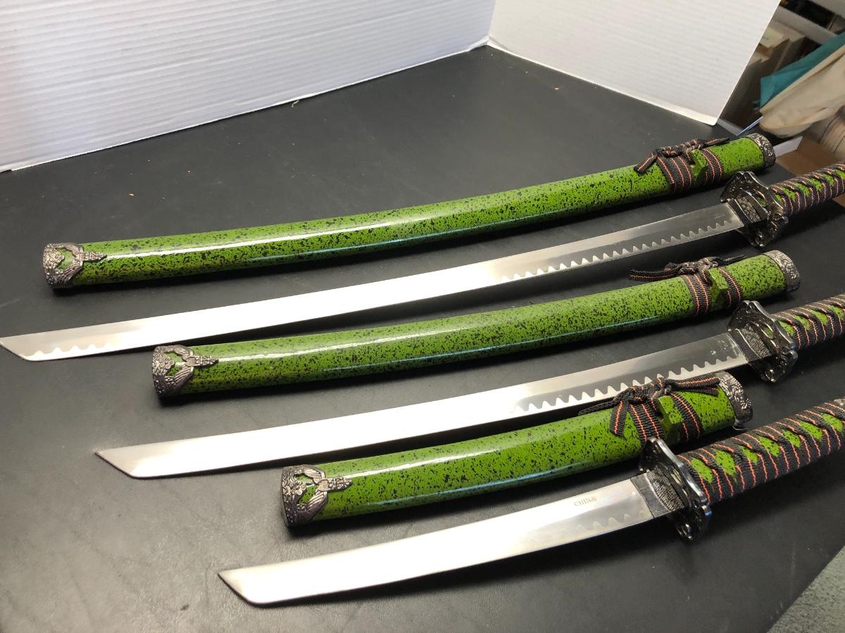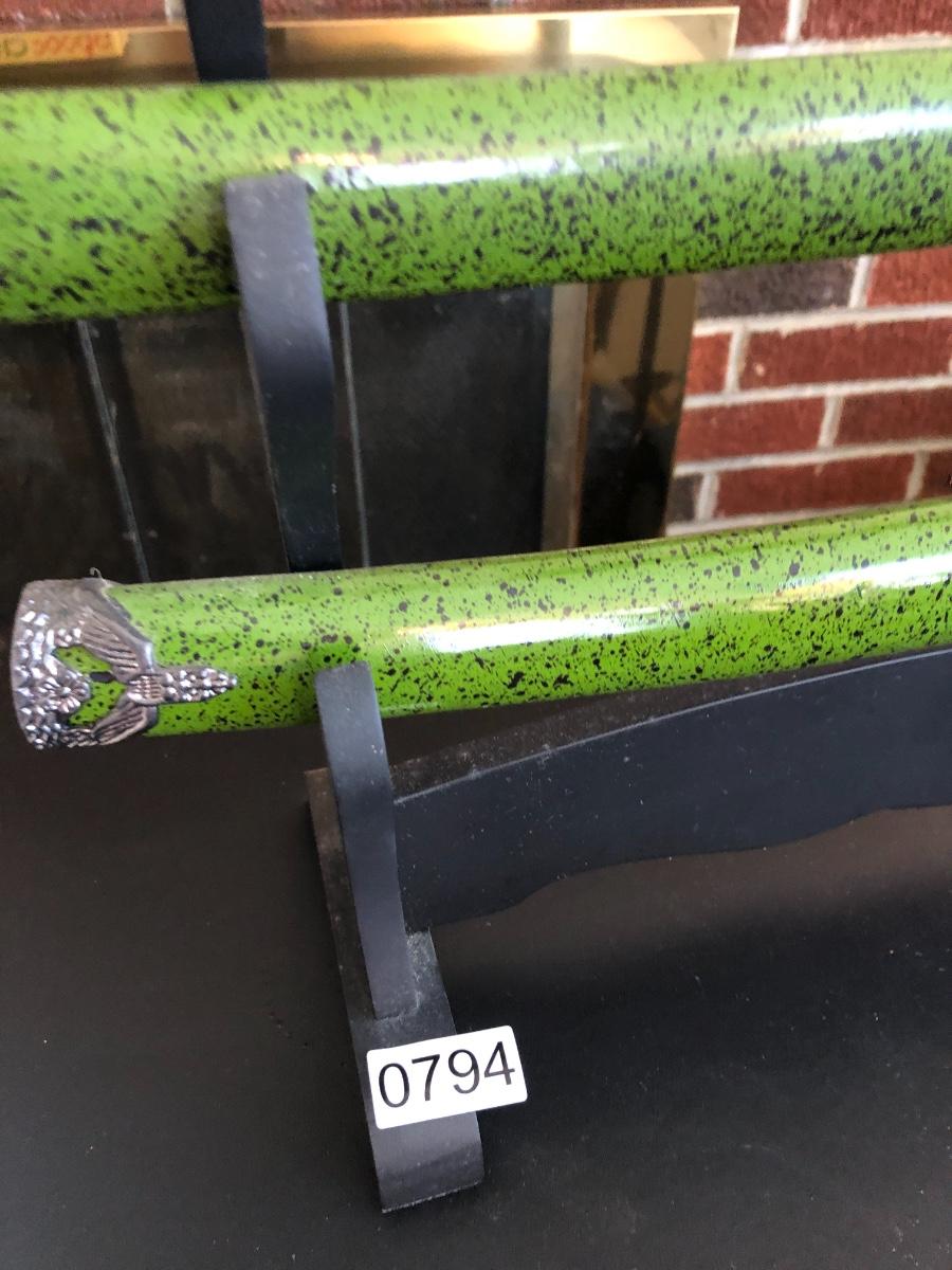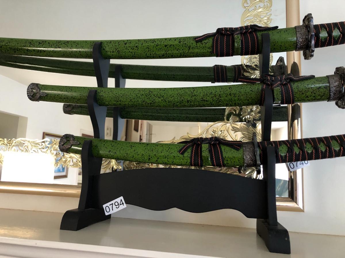 Three Samurai Swords w/Stand (Green) Lot #0794